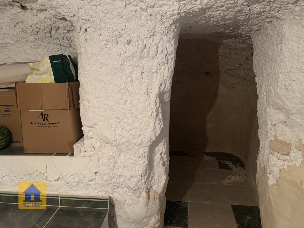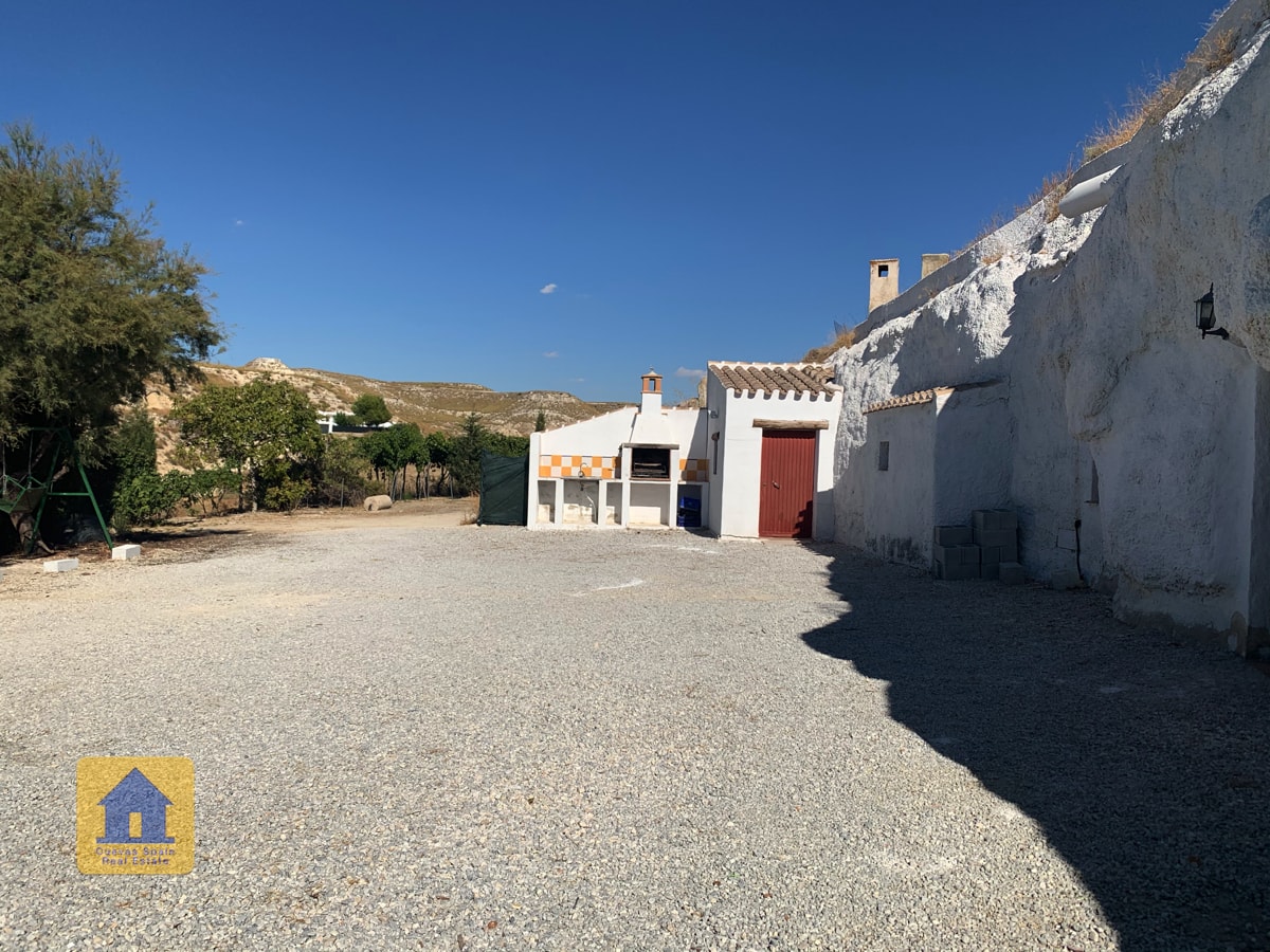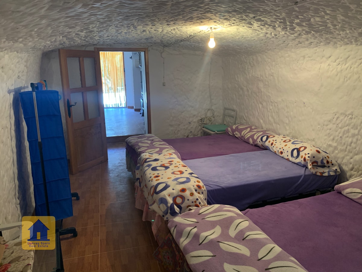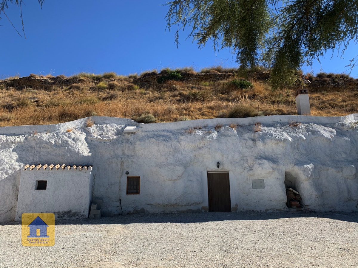 Esta es una casa cueva tradicional española situada en el hermoso campo alrededor de Galera. La cueva es grande, está bien construida pero necesita modernización. Dentro de la cueva hay un salón con chimenea, cocina, 5 dormitorios, 1 baño y 3 habitaciones parcialmente reformadas para trastero o despensa. Esta es principalmente una cueva pura con una gran sala familiar de verano / dependencia de cocina que también podría ser un taller o garaje. La dependencia está aislada para que se mantenga fresca en verano, con una chimenea y un quemador de leña para el clima más frío. El amplio patio ofrece excelentes vistas de las montañas circundantes. El patio tiene una barbacoa incorporada y un amplio espacio para estacionamiento y / o piscina. Fuera del patio hay un cobertizo con un recipiente de almacenamiento de reserva de agua y una bomba con manómetro para regular la presión del agua de la casa. Al otro lado del camino de tierra frente al patio hay una sala de estar con sombra con espacio para estacionamiento o un jardín. La propiedad se ha utilizado como casa de vacaciones durante muchos años, por lo que podría beneficiarse de ajustes de diseño y un segundo baño para vivir todo el año. La propiedad también se puede dividir en dos, con una parte como alquiler vacacional para obtener ingresos. El camino de acceso para acceder a la propiedad se manifestará según el plan del ayuntamiento. El pueblo de Galera está a unos 5 minutos en coche con servicios, restaurantes, vino y tapas. La localidad de Huéscar se encuentra a 15 min en coche, con centro de salud 24 hrs. Si está buscando una zona tranquila de belleza natural, definitivamente vale la pena visitar Riego Nuevo.