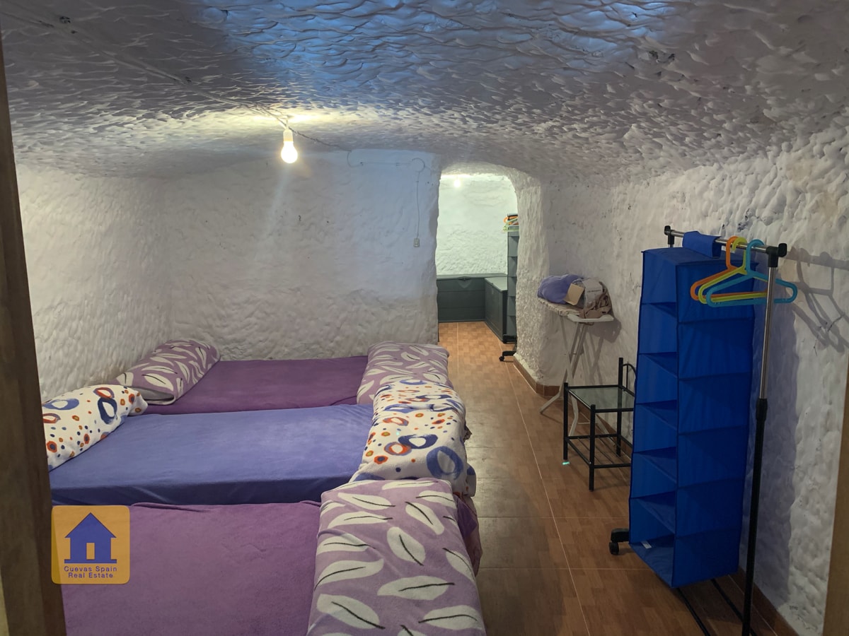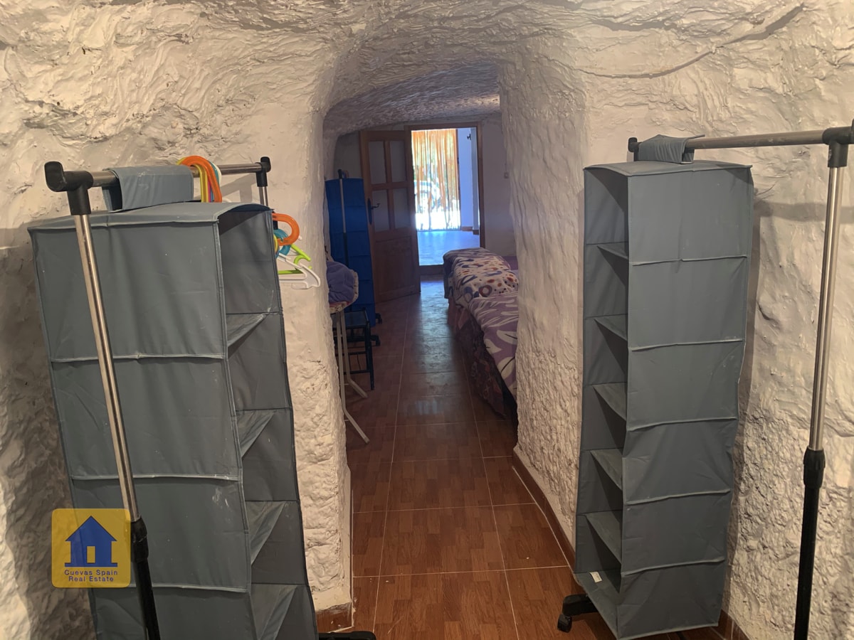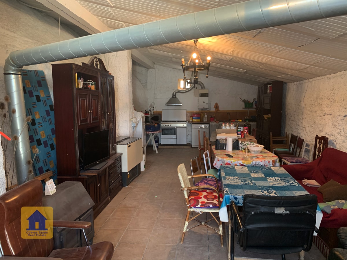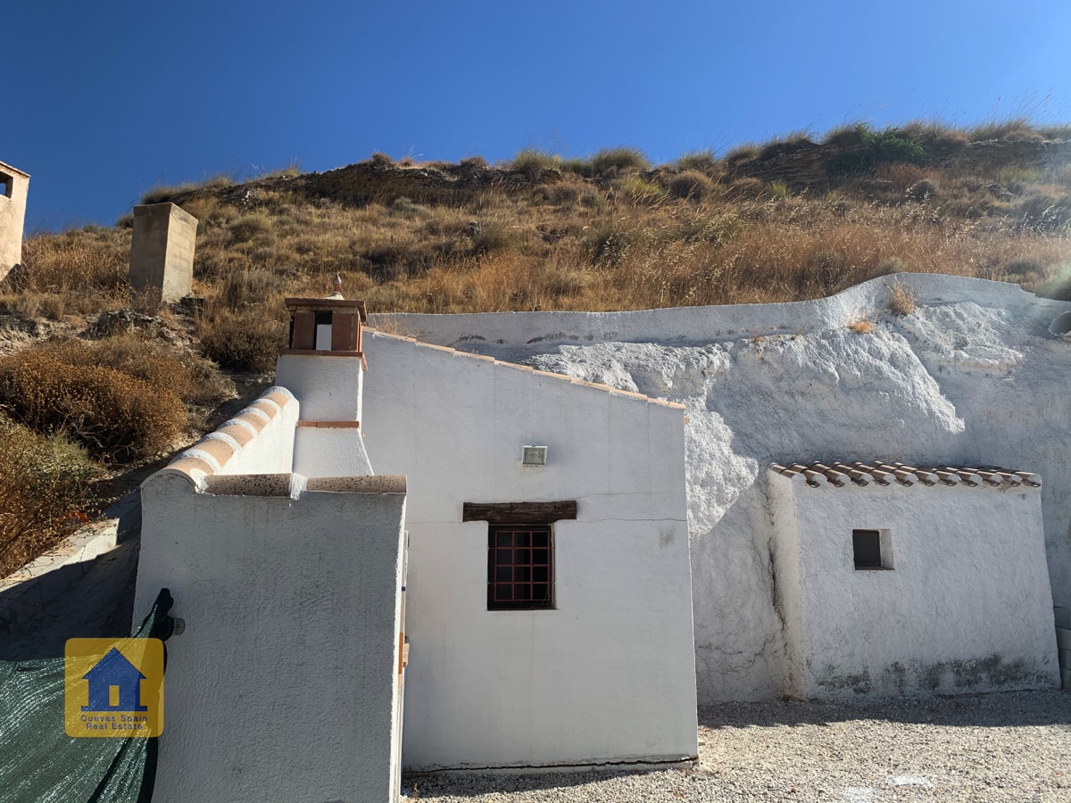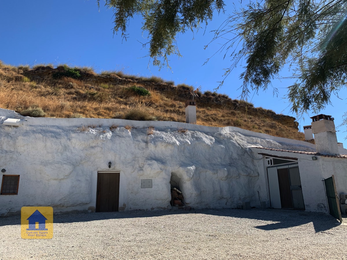 Esta es una casa cueva tradicional española situada en el hermoso campo alrededor de Galera. La cueva es grande, está bien construida pero necesita modernización. Dentro de la cueva hay un salón con chimenea, cocina, 5 dormitorios, 1 baño y 3 habitaciones parcialmente reformadas para trastero o despensa. Esta es principalmente una cueva pura con una gran sala familiar de verano / dependencia de cocina que también podría ser un taller o garaje. La dependencia está aislada para que se mantenga fresca en verano, con una chimenea y un quemador de leña para el clima más frío. El amplio patio ofrece excelentes vistas de las montañas circundantes. El patio tiene una barbacoa incorporada y un amplio espacio para estacionamiento y / o piscina. Fuera del patio hay un cobertizo con un recipiente de almacenamiento de reserva de agua y una bomba con manómetro para regular la presión del agua de la casa. Al otro lado del camino de tierra frente al patio hay una sala de estar con sombra con espacio para estacionamiento o un jardín. La propiedad se ha utilizado como casa de vacaciones durante muchos años, por lo que podría beneficiarse de ajustes de diseño y un segundo baño para vivir todo el año. La propiedad también se puede dividir en dos, con una parte como alquiler vacacional para obtener ingresos. El camino de acceso para acceder a la propiedad se manifestará según el plan del ayuntamiento. El pueblo de Galera está a unos 5 minutos en coche con servicios, restaurantes, vino y tapas. La localidad de Huéscar se encuentra a 15 min en coche, con centro de salud 24 hrs. Si está buscando una zona tranquila de belleza natural, definitivamente vale la pena visitar Riego Nuevo.