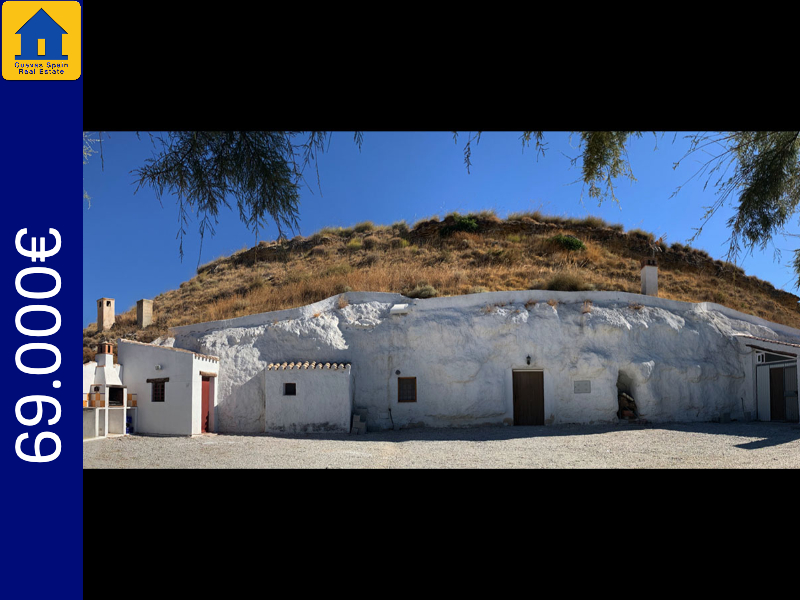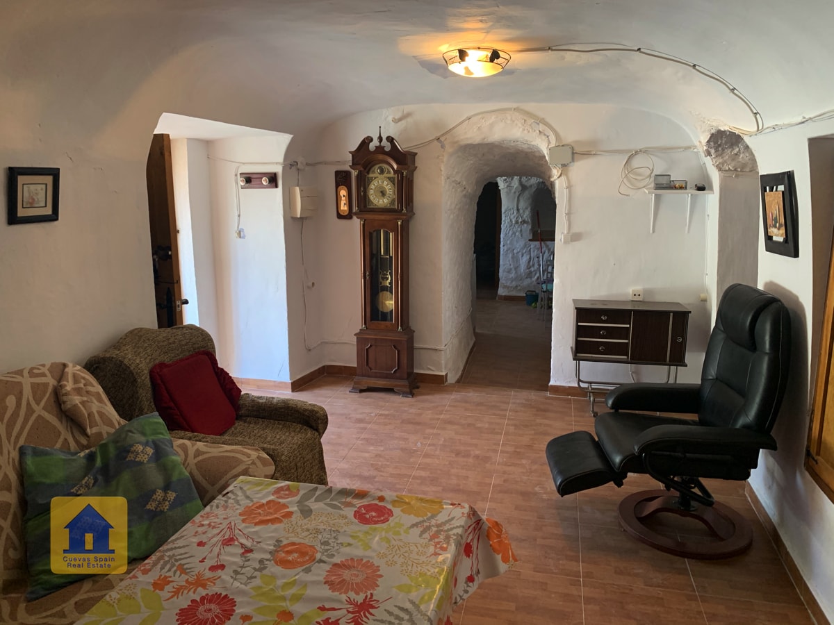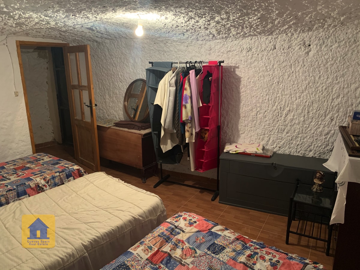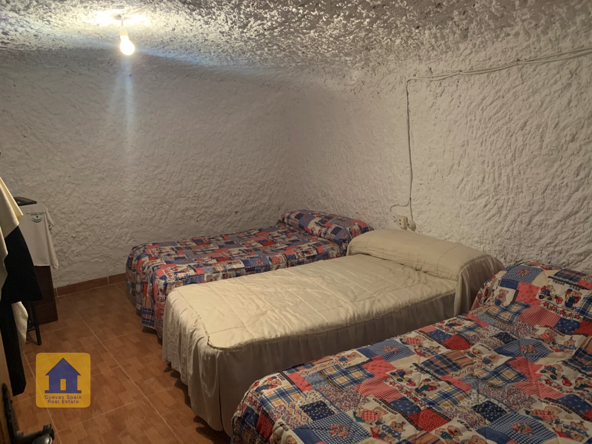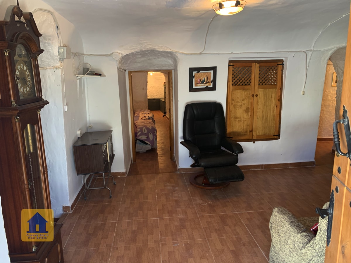 Esta es una casa cueva tradicional española situada en el hermoso campo alrededor de Galera. La cueva es grande, está bien construida pero necesita modernización. Dentro de la cueva hay un salón con chimenea, cocina, 5 dormitorios, 1 baño y 3 habitaciones parcialmente reformadas para trastero o despensa. Esta es principalmente una cueva pura con una gran sala familiar de verano / dependencia de cocina que también podría ser un taller o garaje. La dependencia está aislada para que se mantenga fresca en verano, con una chimenea y un quemador de leña para el clima más frío. El amplio patio ofrece excelentes vistas de las montañas circundantes. El patio tiene una barbacoa incorporada y un amplio espacio para estacionamiento y / o piscina. Fuera del patio hay un cobertizo con un recipiente de almacenamiento de reserva de agua y una bomba con manómetro para regular la presión del agua de la casa. Al otro lado del camino de tierra frente al patio hay una sala de estar con sombra con espacio para estacionamiento o un jardín. La propiedad se ha utilizado como casa de vacaciones durante muchos años, por lo que podría beneficiarse de ajustes de diseño y un segundo baño para vivir todo el año. La propiedad también se puede dividir en dos, con una parte como alquiler vacacional para obtener ingresos. El camino de acceso para acceder a la propiedad se manifestará según el plan del ayuntamiento. El pueblo de Galera está a unos 5 minutos en coche con servicios, restaurantes, vino y tapas. La localidad de Huéscar se encuentra a 15 min en coche, con centro de salud 24 hrs. Si está buscando una zona tranquila de belleza natural, definitivamente vale la pena visitar Riego Nuevo.