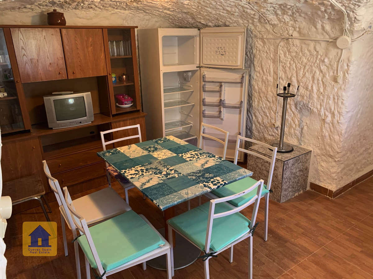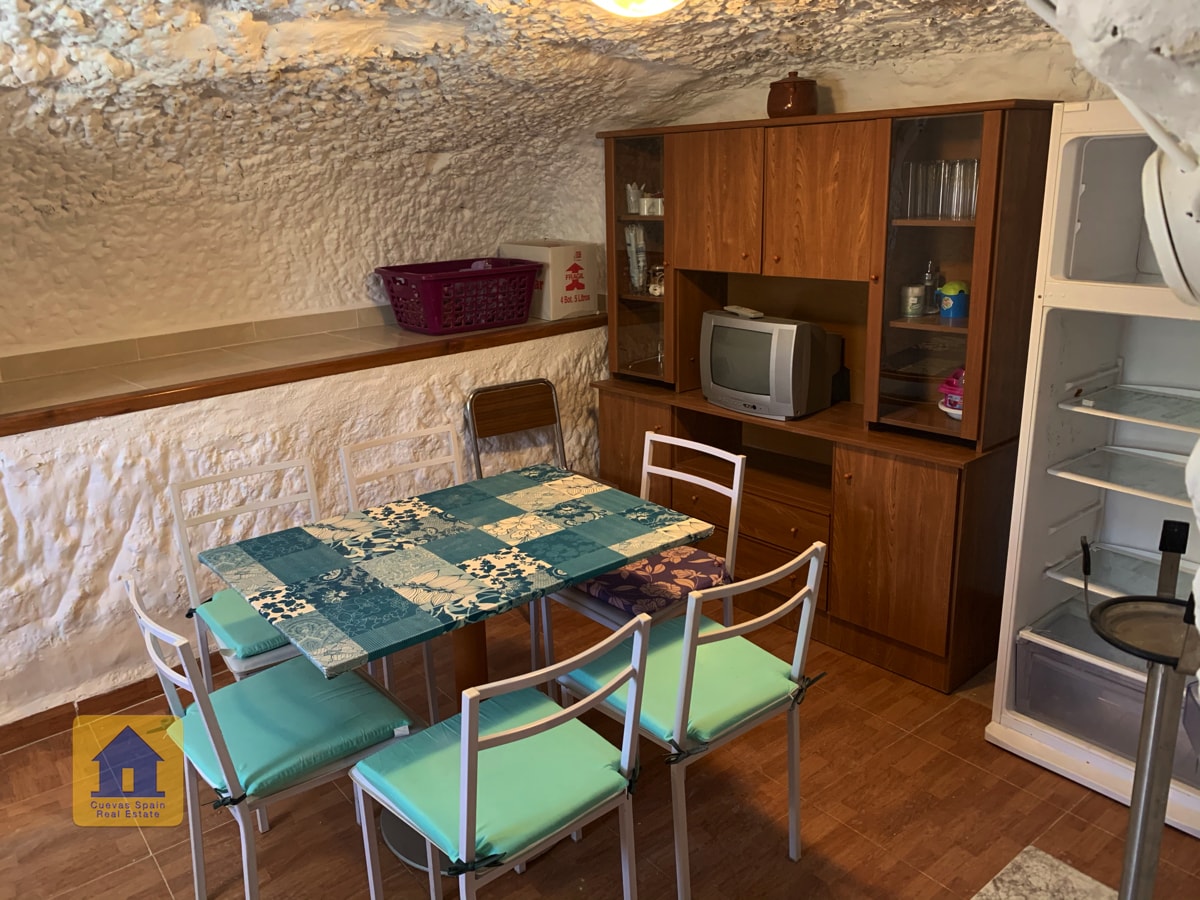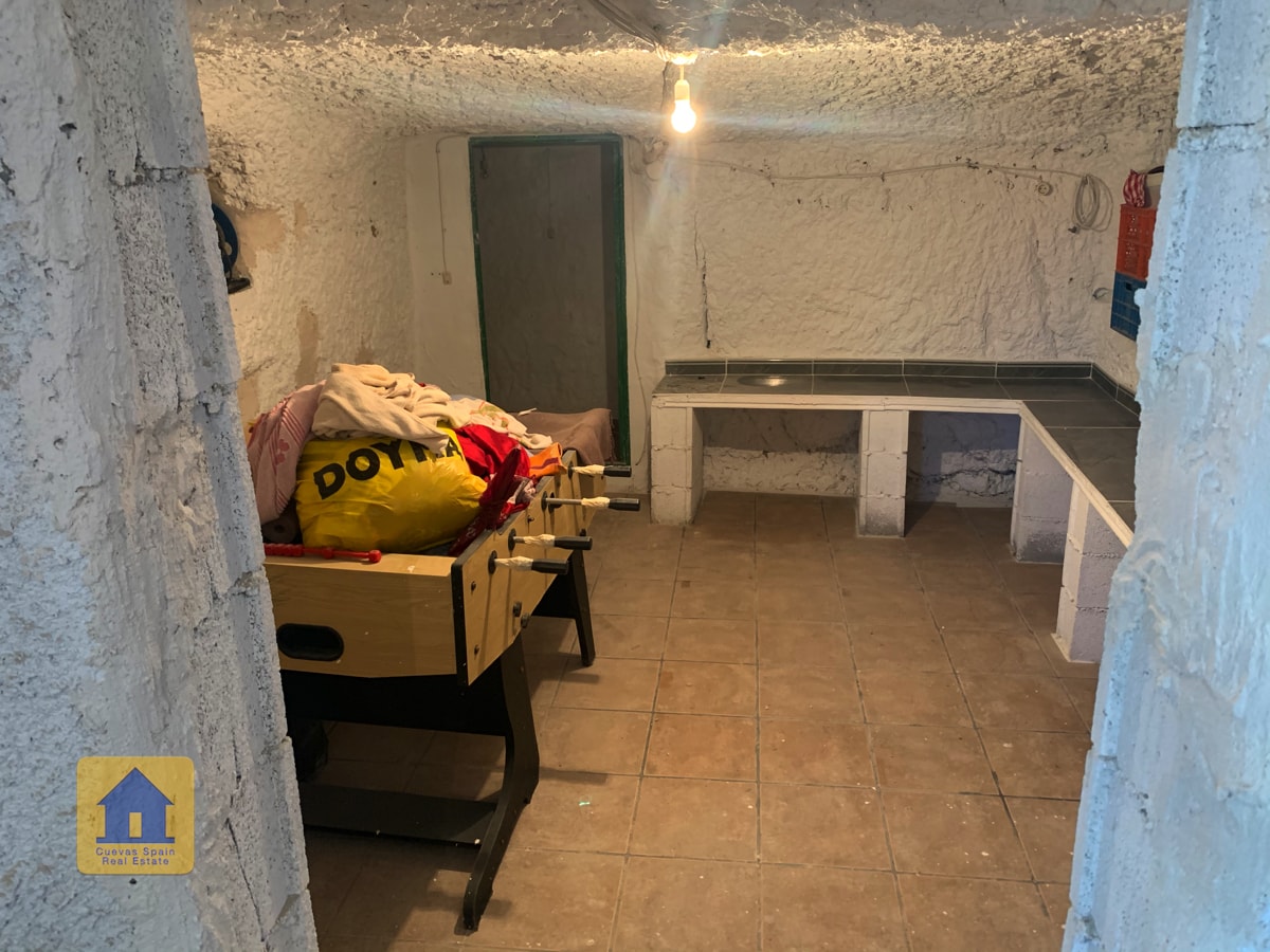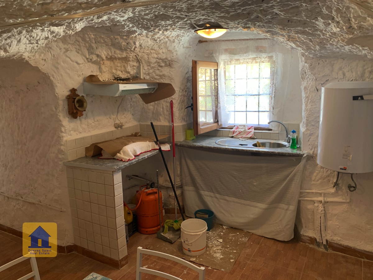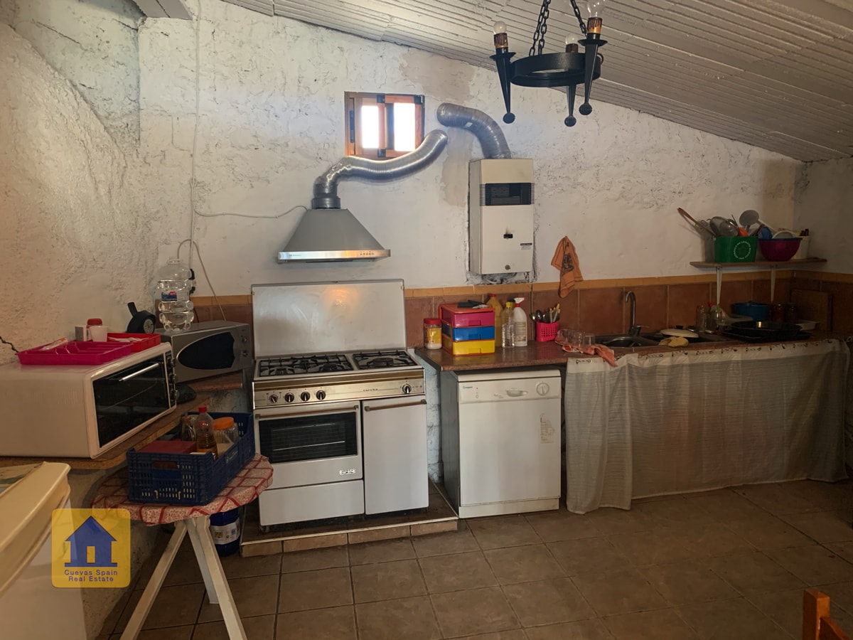 Il s'agit d'une maison troglodyte traditionnelle espagnole située dans la belle campagne autour de Galera. La grotte est grande, bien construite mais doit être modernisée. À l'intérieur de la grotte se trouve un salon avec une cheminée, une cuisine, 5 chambres, 1 salle de bain et 3 pièces partiellement réformées pour le stockage ou le garde-manger. Il s'agit principalement d'une pure cave avec une grande salle familiale d'été / dépendance de cuisine qui pourrait aussi être un atelier ou un garage. La dépendance est isolée pour rester fraîche en été, avec une cheminée et un poêle à bois pour les temps plus froids. Le vaste patio offre une vue imprenable sur les montagnes environnantes. Le patio a un barbecue intégré et un grand espace pour le stationnement et / ou une piscine. Sur le patio se trouve un hangar avec un réservoir de stockage d'eau et une pompe avec un manomètre pour réguler la pression de l'eau domestique. De l'autre côté du chemin de terre devant le patio se trouve un coin salon ombragé avec une place pour le stationnement ou un jardin. La propriété a été utilisée comme maison de vacances pendant de nombreuses années, elle pourrait donc bénéficier d'ajustements d'aménagement et d'une deuxième salle de bain pour vivre toute l'année. La propriété pourrait également être divisée en deux, avec une partie comme location de vacances pour un revenu. Un chemin d'accès à la propriété doit être aménagé conformément au plan de la mairie. Le village de Galera est à environ 5 min en voiture avec des commodités, des restaurants, du vin et des tapas. La ville de Huéscar est à 15 minutes en voiture, avec un centre de santé ouvert 24h / 24. Si vous êtes à la recherche d'un quartier calme et naturel, Riego Nuevo vaut vraiment le détour.