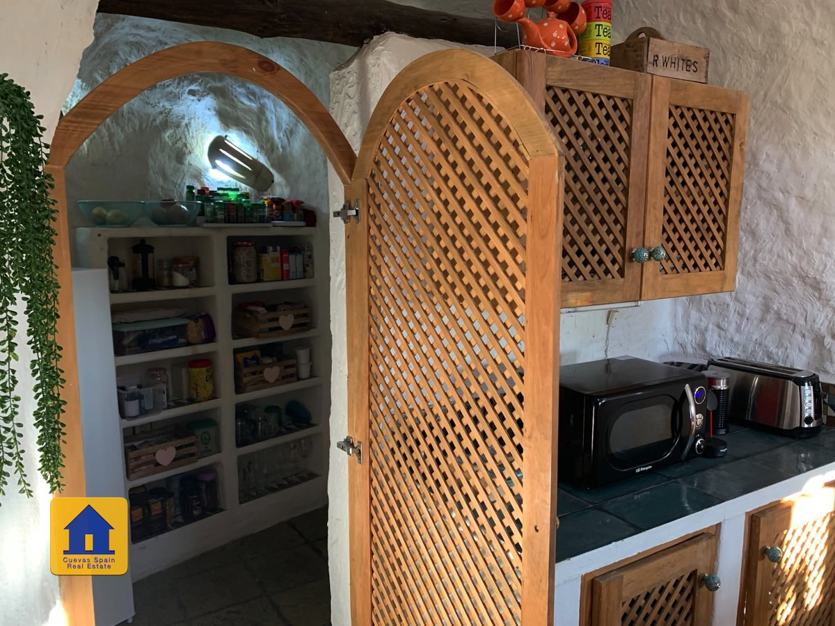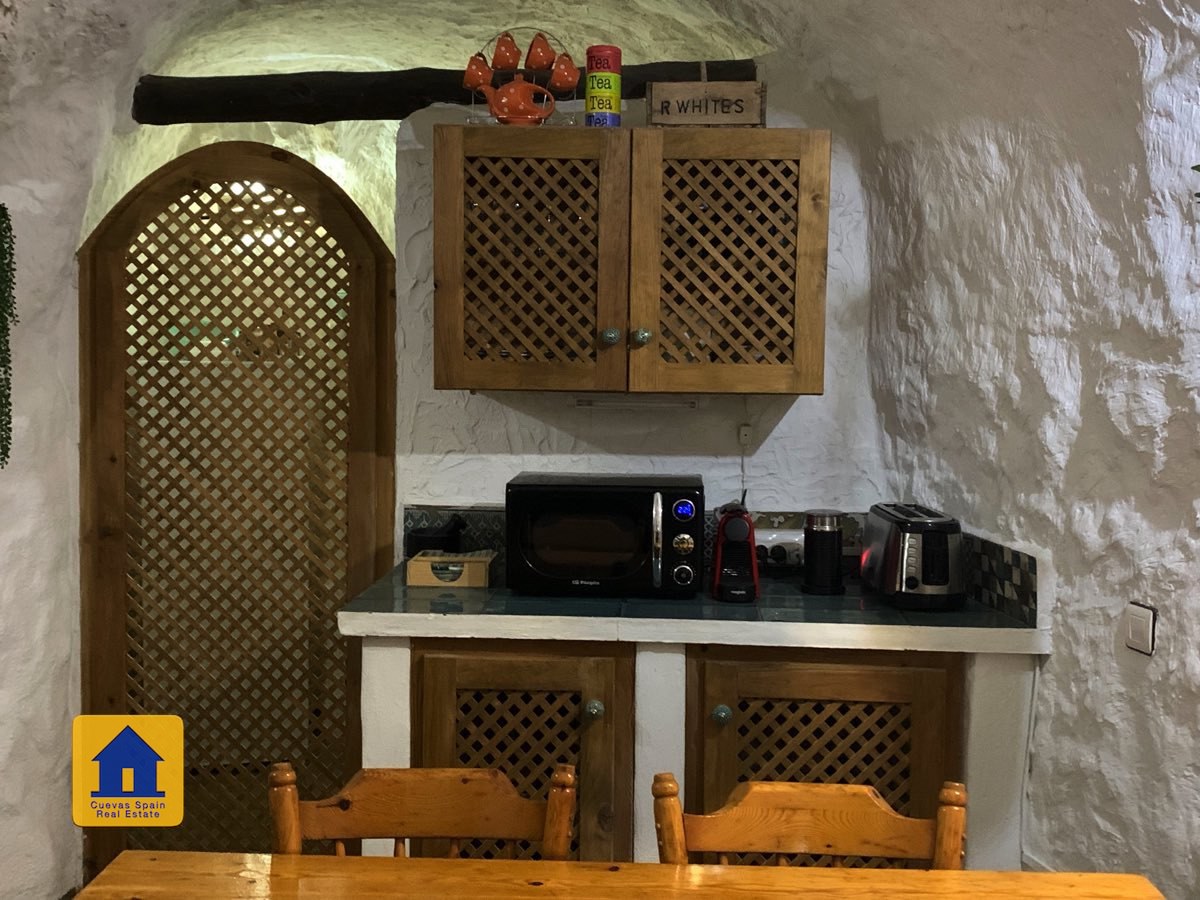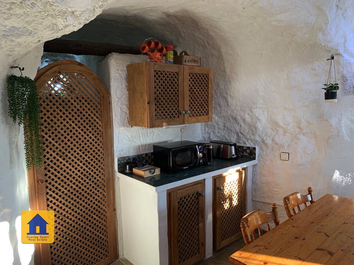 Esta casa cueva tiene techos altos y recibe sol directo desde el mediodía hasta el atardecer. La cocina y el salón tienen claraboyas. Las paredes exteriores están aisladas y las ventanas tienen doble acristalamiento. La propiedad está muy bien acabado en todos los detalles y está listo para entrar a vivir. Los muebles son negociables. ¡Definitivamente una visita obligada!