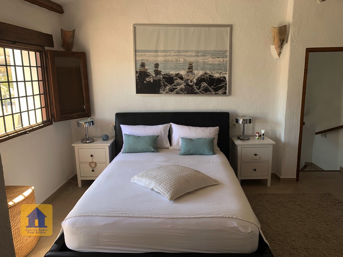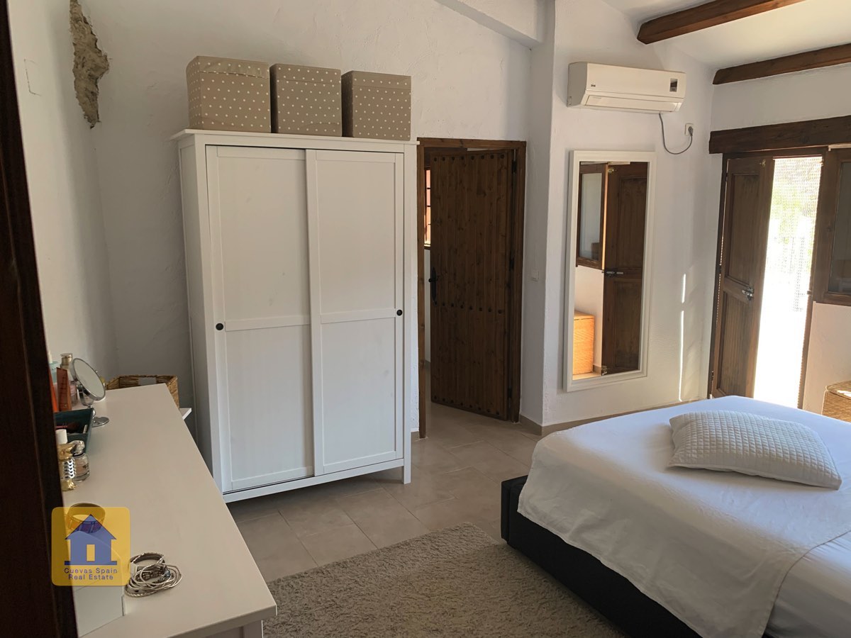 Un escalier mène à une grande chambre double avec salle de bains attenante. Cette chambre s'ouvre sur la terrasse qui offre une vue sur les grottes à flanc de colline et les montagnes de la Sierra de Cazorla.