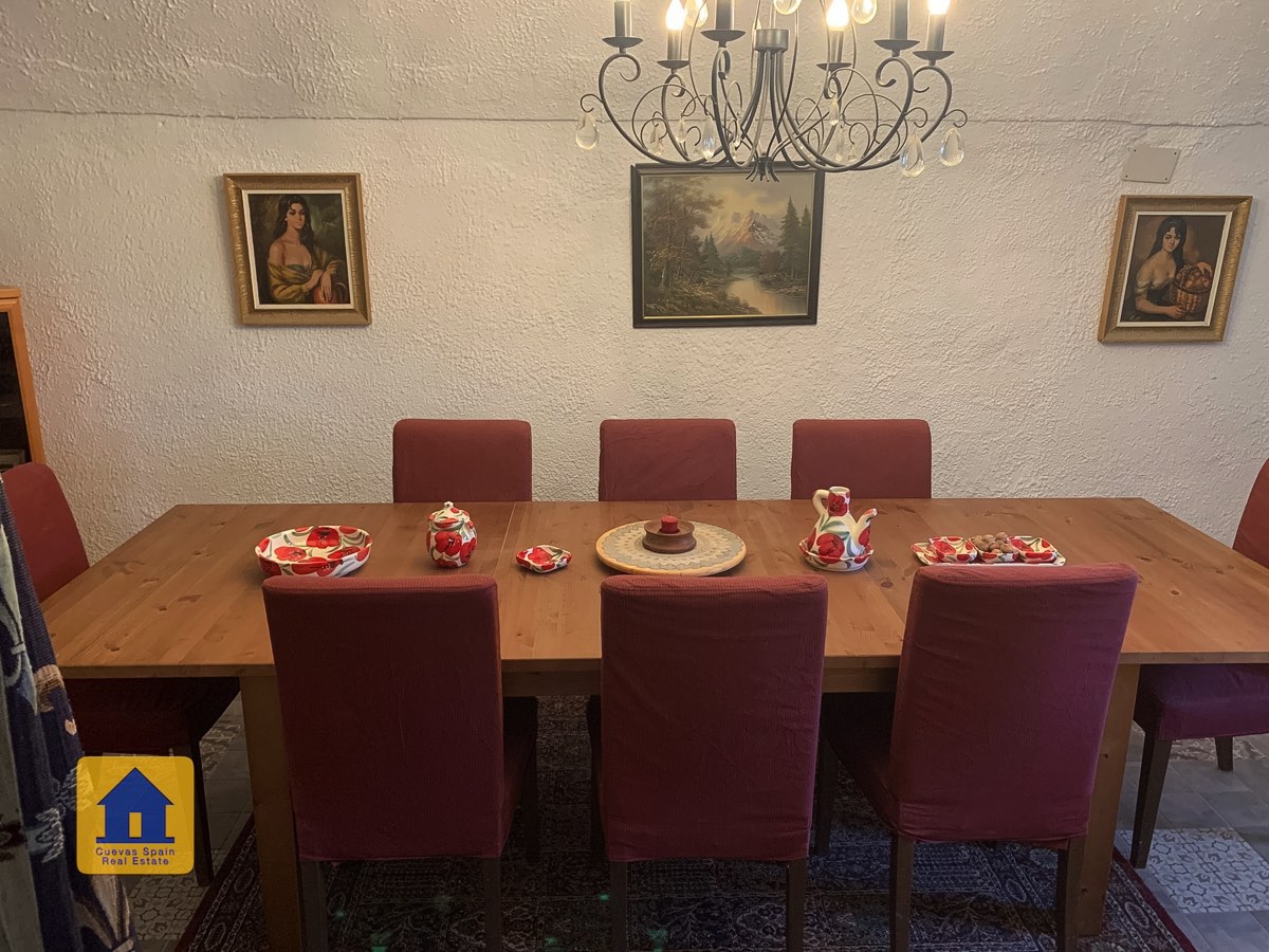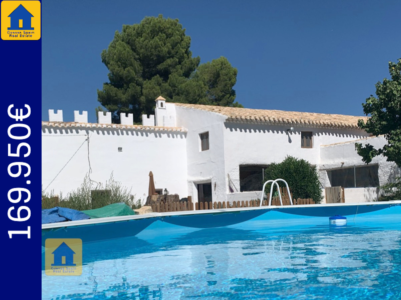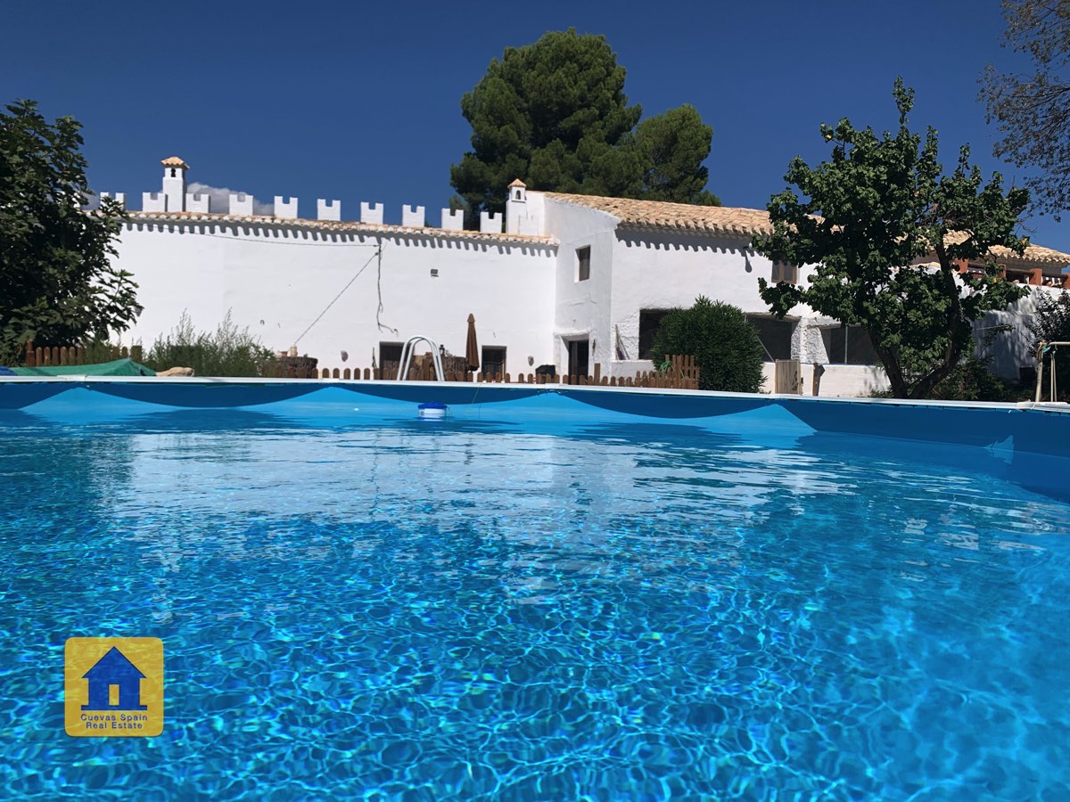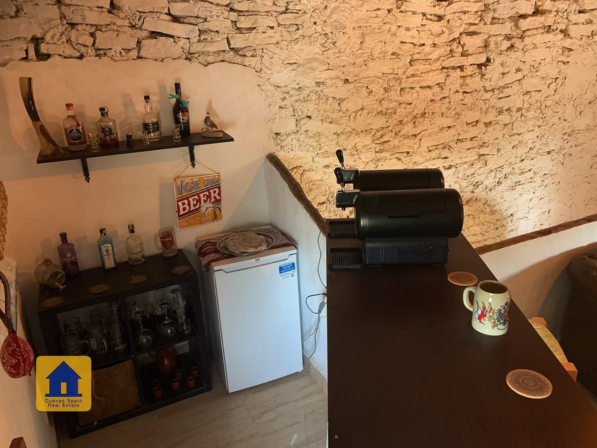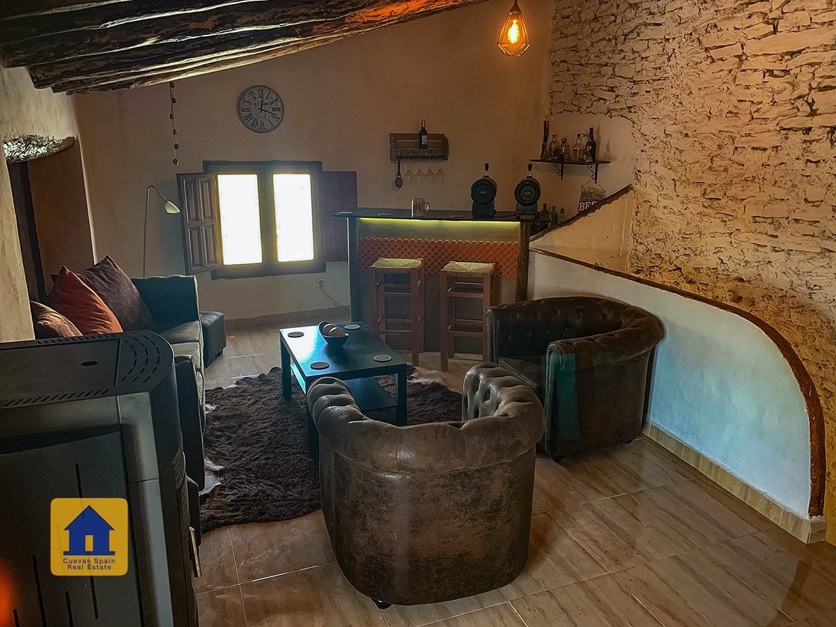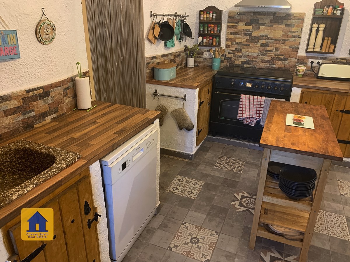 La maison principale : En entrant par la porte d'entrée, on accède à un grand couloir qui mène à gauche à un petit salon avec un poêle à granulés et le four à pain d'origine, puis à travers une grande arche à une cuisine rustique équipée avec coin repas. La plomberie est installée pour un lave-vaisselle. Une porte de la cuisine mène à une grande buanderie et à un petit vestiaire avec toilettes et lavabo. Une porte arrière mène à la véranda avec une cuisine d'été et un barbecue en briques, à l'arrière de la grotte. Cet endroit offre une vue magnifique sur la campagne et les montagnes de la Sierra de Cazorla, Segura et Las Villas.