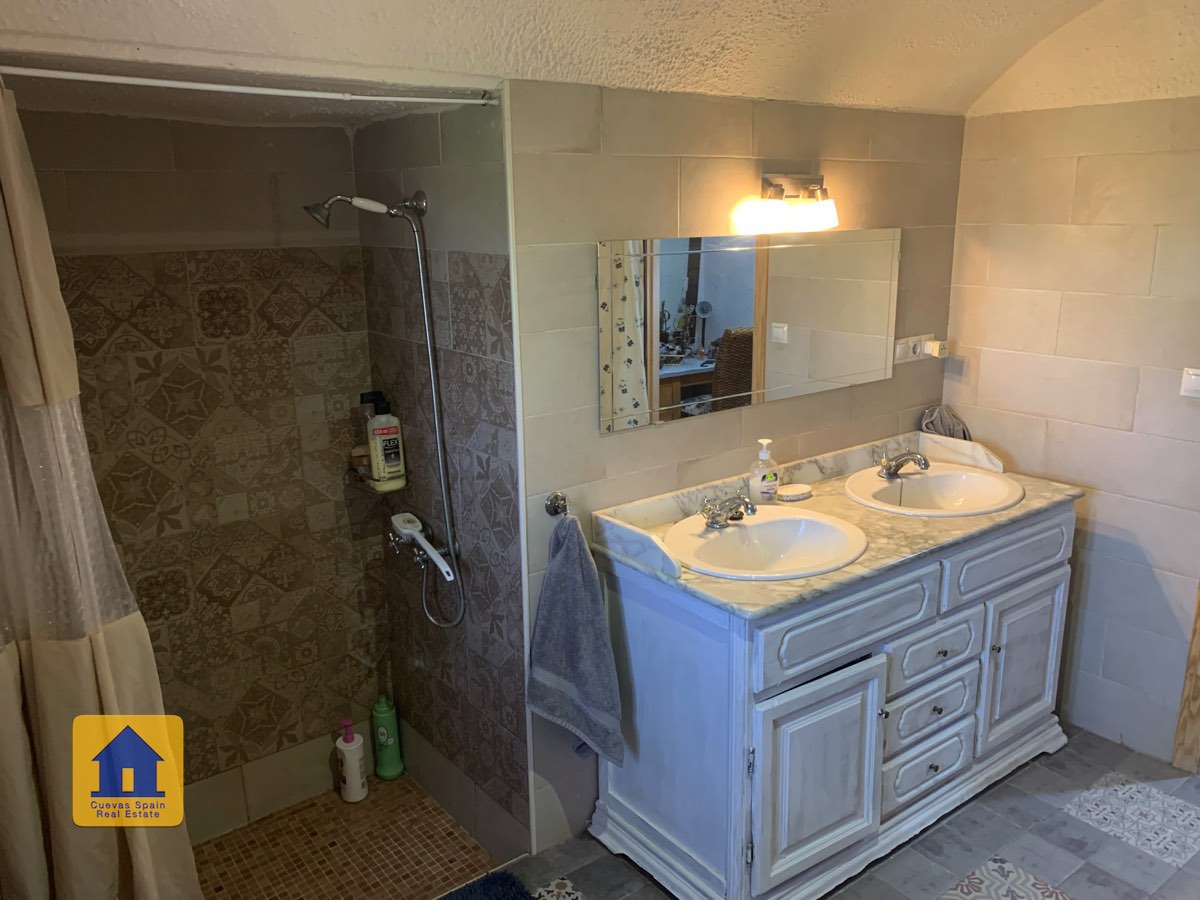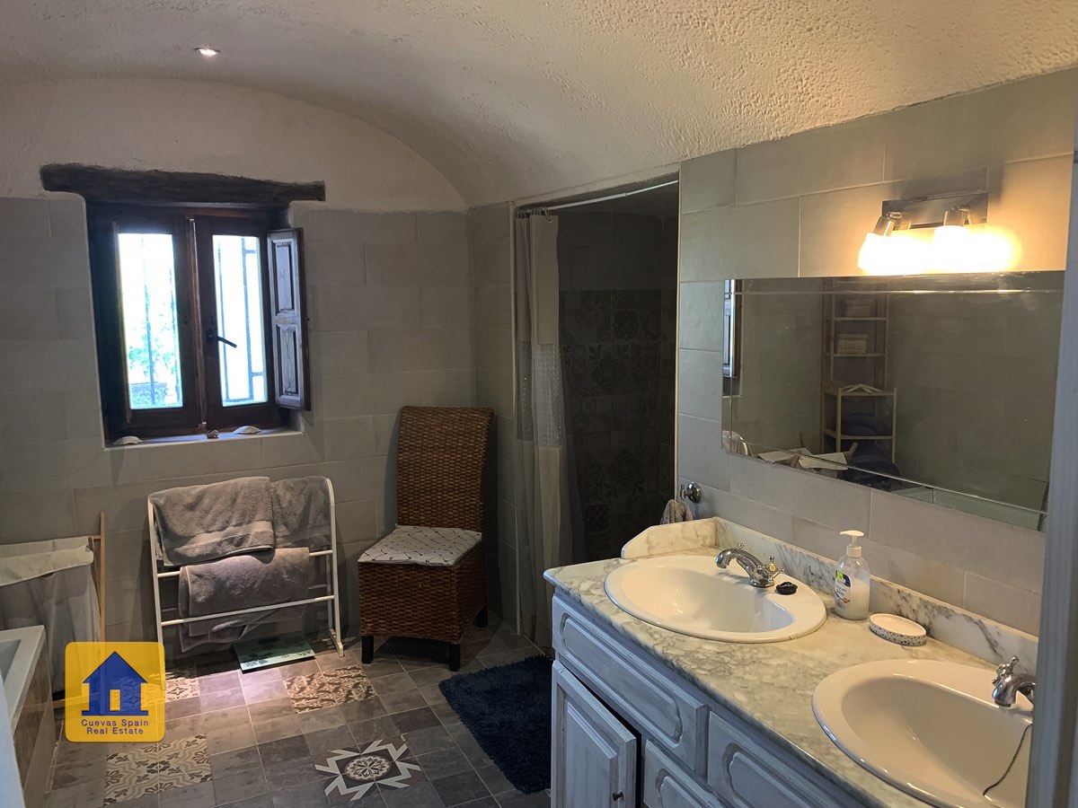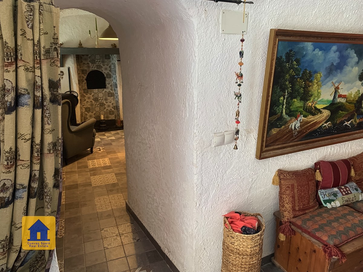 La propriété est grande, avec beaucoup de caractère, et toutes les pièces sont de bonne taille. La maison principale est une grotte qui traverse la montagne et toutes les pièces ont des fenêtres et de la lumière. Tous les sols ont été joliment carrelés. Le toit de la maison est neuf. Elle est raccordée à l'électricité et à l'eau, et dispose d'une fosse septique. Internet est connecté.