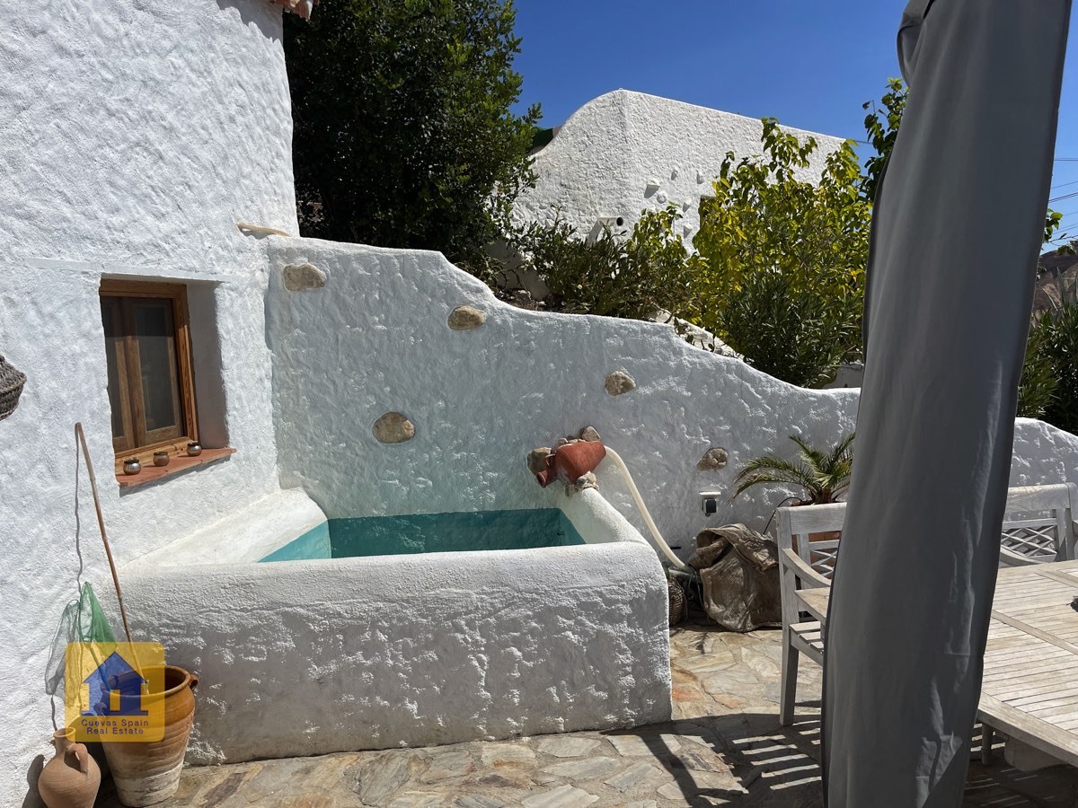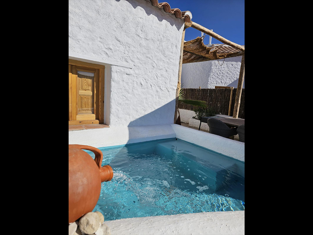 Chacune dispose d'un patio avant et d'une terrasse arrière privée avec vue. La Cueva La Cuadra dispose également d'une pergola. Les patios sont dotés de sols en pierre, d'un petit bassin privé, de bancs et de jardinières intégrés, ainsi que d'un barbecue. Il y a des poêles à bois portables pour chauffer les bassins, offrant une expérience extérieure chaleureuse et agréable. Un parking privé se trouve devant les grottes.