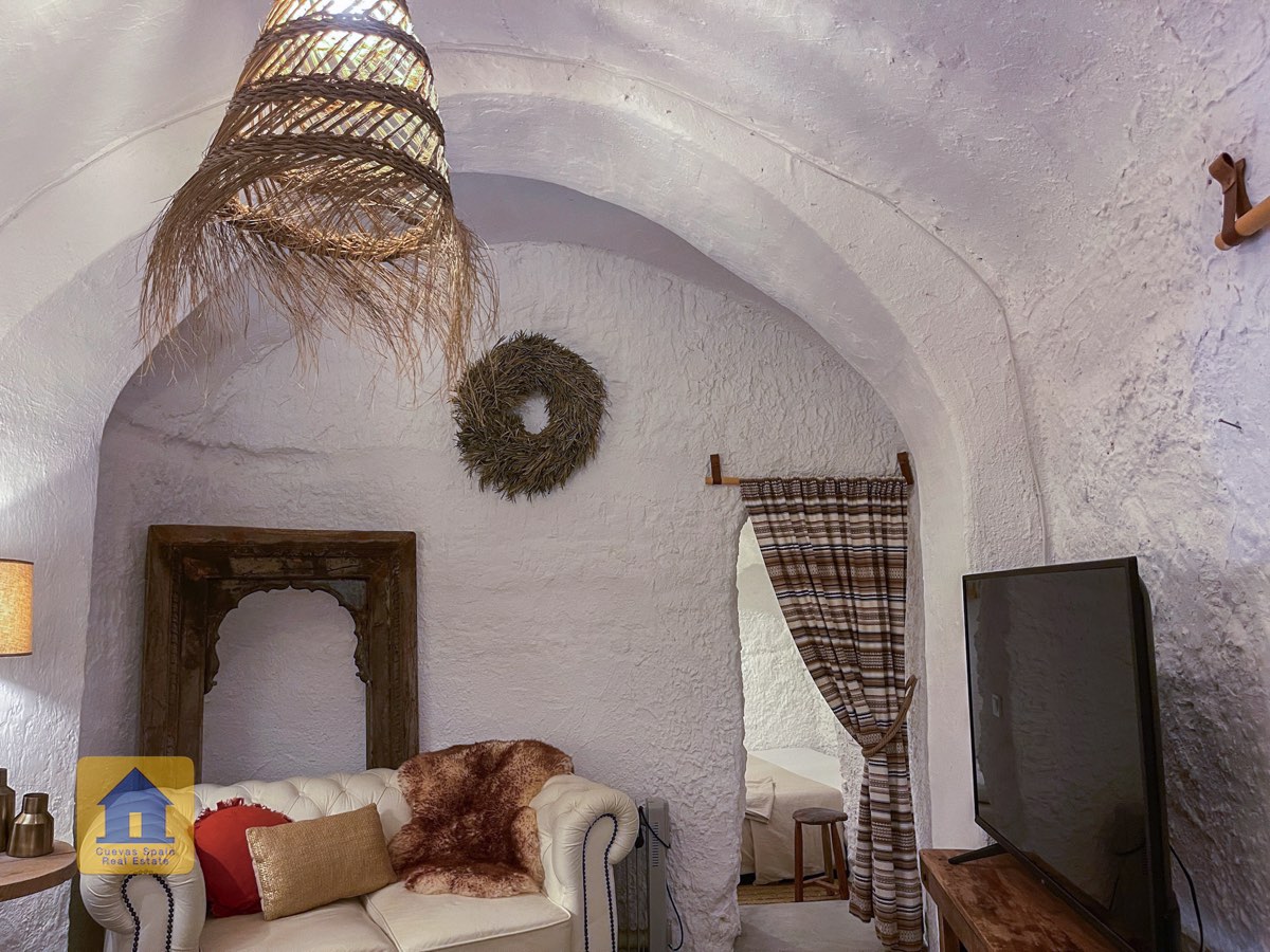 La Cueva La Cuadra comprend un hall d'entrée, une cuisine américaine, une salle de bain, une salle à manger, deux chambres doubles, deux chambres simples et un beau salon propice à la détente qui s'ouvre sur la terrace arrière avec vue sur le village. Cette grotte peut accueillir 6 personnes.