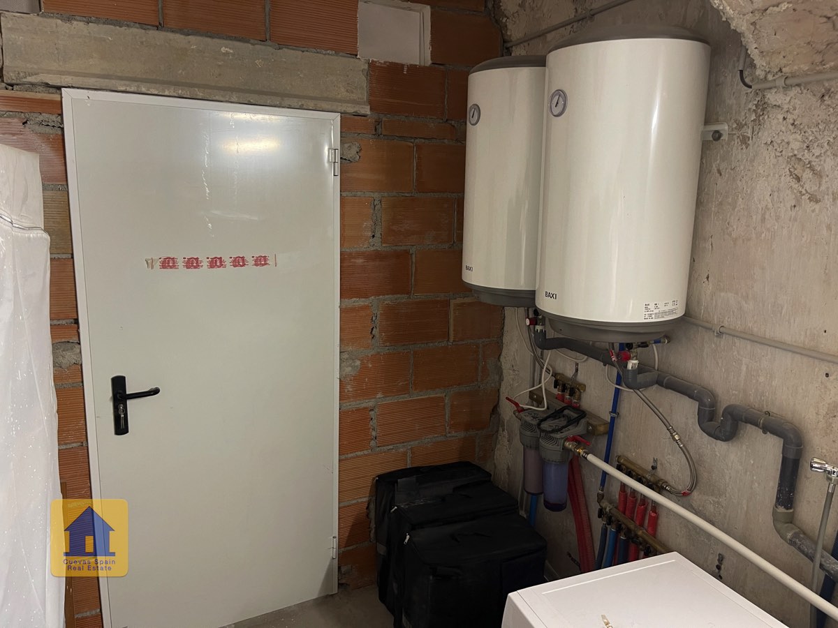 La buanderie abrite le chauffe-eau avec commandes individuelles reliées à la cuisine et à chacune des salles de bains. Dans la buanderie on trouve aussi trois filtres à eau: charbon actif, sable et adoucisseur.