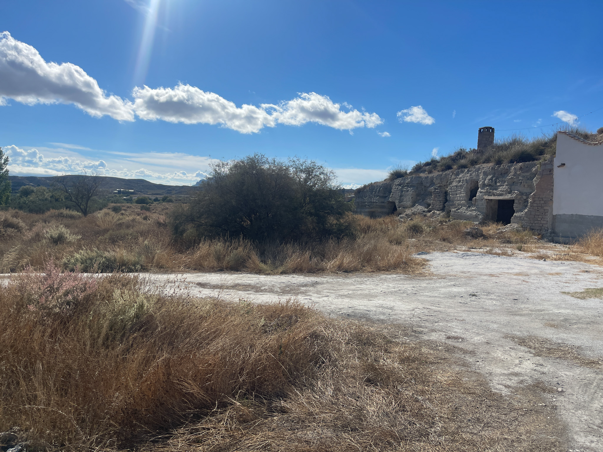Superbe propriété rurale avec 2 grandes maisons troglodytes mitoyennes à rénover, de grands patios et plus de 2 hectares de terrain, entourée par la nature et les terres agricoles. Elle offre une vue panoramique sur la colline de Jabalcón et les spectaculaires Badlands de Castilléjar.