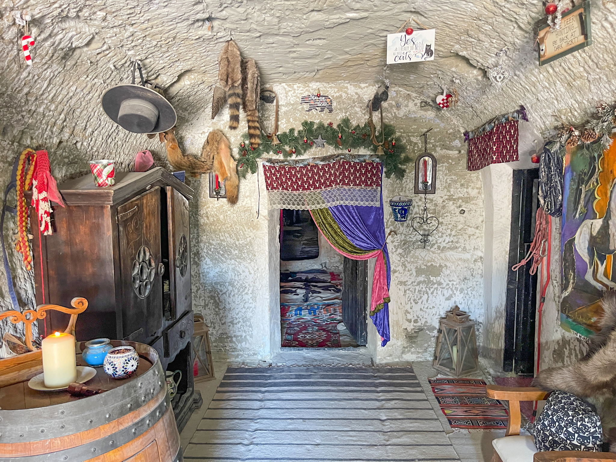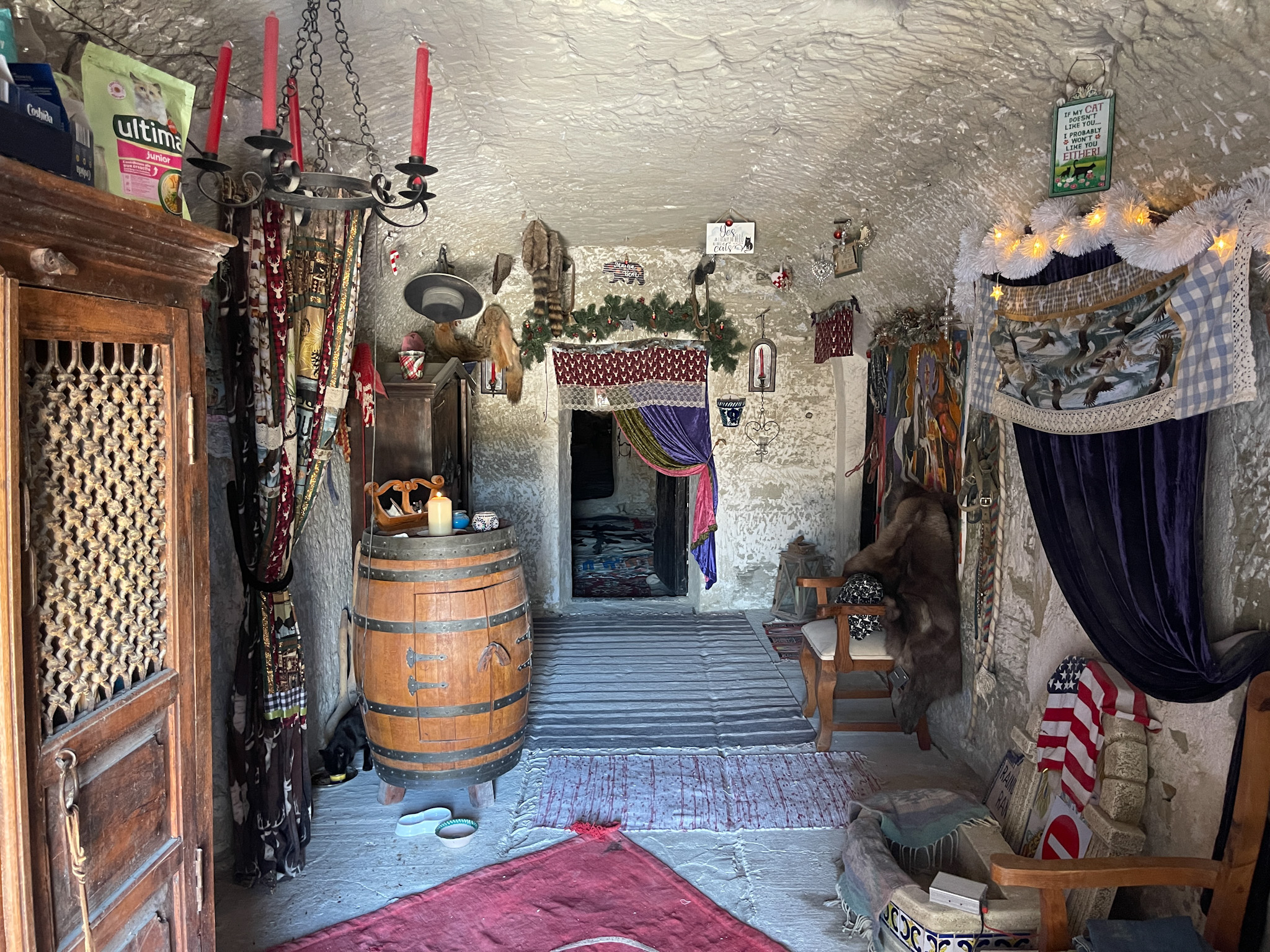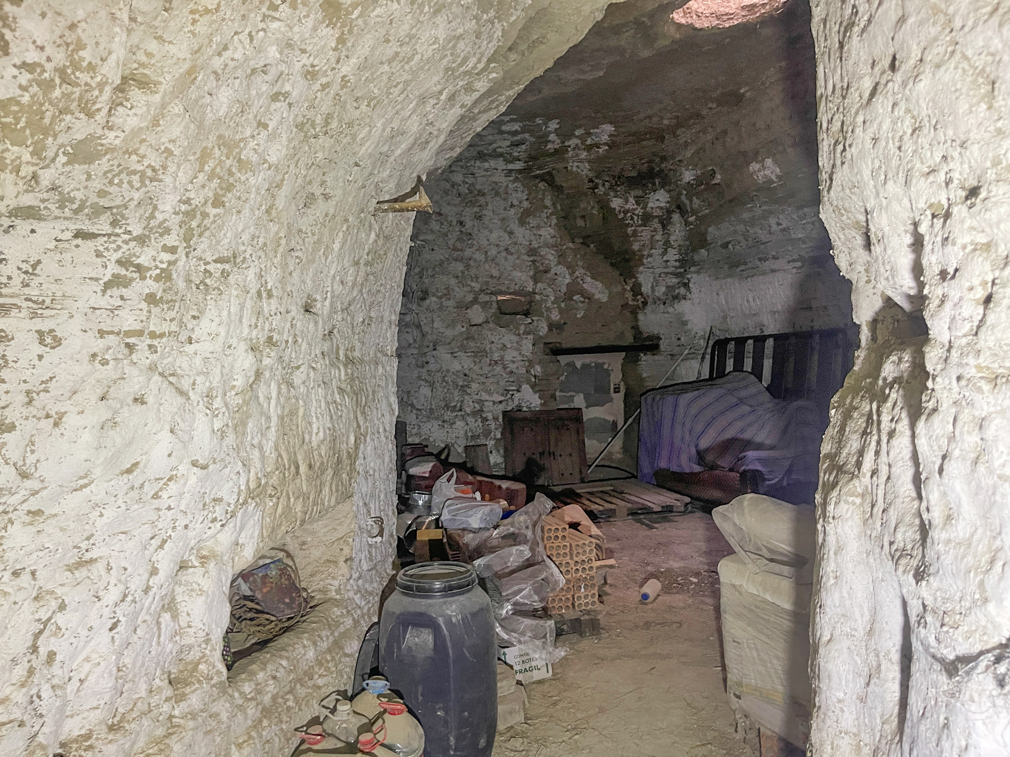 La première maison troglodyte dispose de deux accès indépendants : l'un mène à une pièce unique et l'autre donne accès à la zone principale, qui s'ouvre sur un vaste espace initialement prévu comme cuisine-salle à manger.