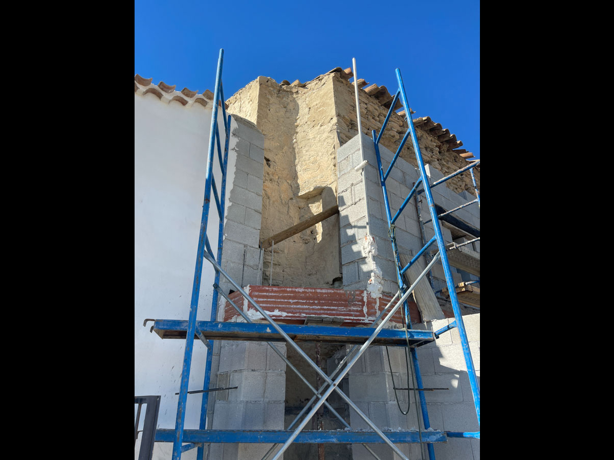 Des travaux de rénovation ont déjà été réalisés sur la façade de l’une des maisons dont la partie supérieure est dotée d'une structure auxiliaire non rénovée, en pierre.