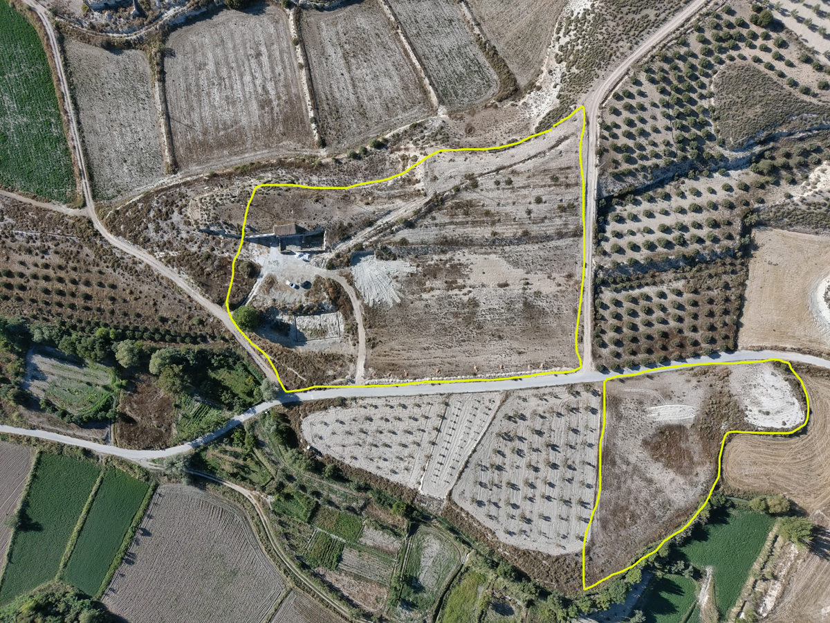 La propriété comprend plusieurs arbres fruitiers (pommier, prunier, pêcher plat) et un terrain avec 80 amandiers. L'accès est asphalté et dispose d'un espace dégagé à l'avant, parfait pour garer plusieurs véhicules.