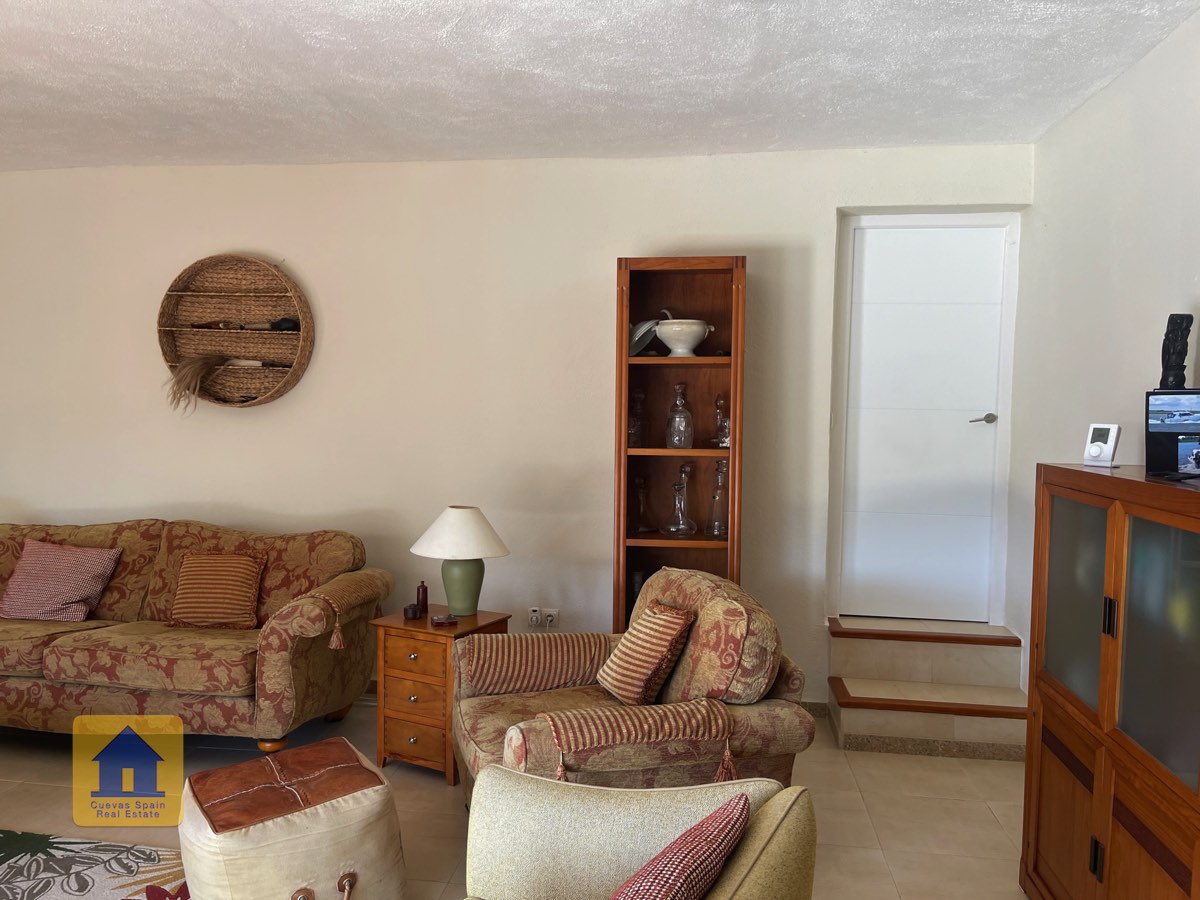 Depuis le salon, une porte mène à la cave à vin. Typiques de la région, les pièces troglodytes offrent un espace agréable, idéal aussi pour un petit salon ou une salle de jeux. Le salon donne sur le hall d'entrée, avec la porte d’entrée qui s'ouvre sur la terrasse.