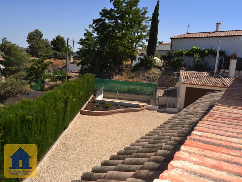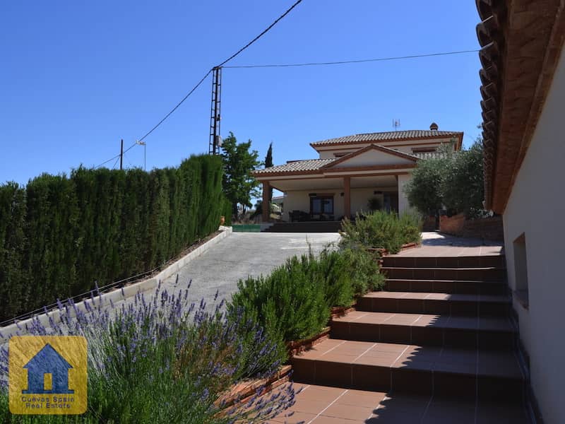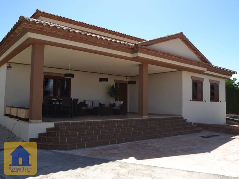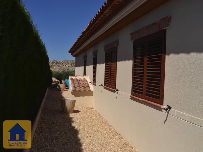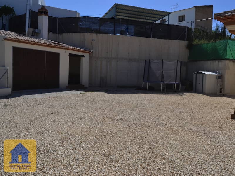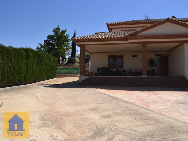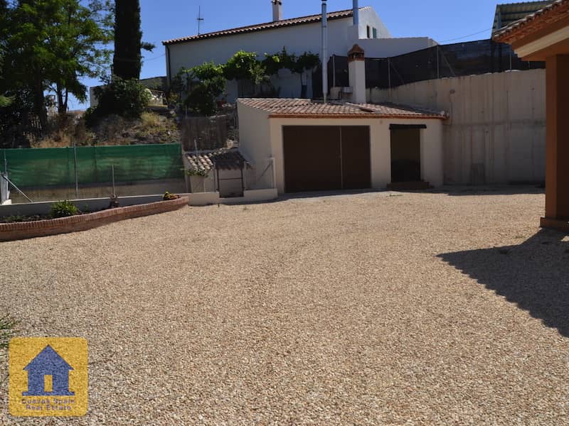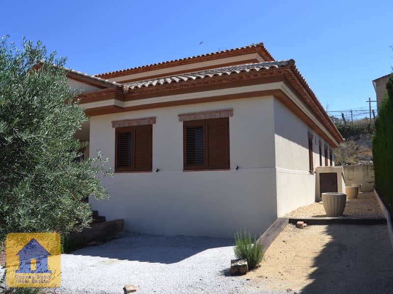 In the center of the pretty little town of Castillejar, this beautiful luxury villa built to a high standard and with all quality materials. This villa has a lot to offer, 3 spacious bedrooms, 3 bathrooms, a large independent kitchen, a cosy salon, a large attic, 2 large garages, central heating with biomassa, various terraces back and front, enough storage room, lots of parking space. It has double glazed windows and fly screens throughout. All is built with good materials and under the supervision of the current owners. All fenced and gated. Furniture is included. The access is very good. Castillejar is a pretty little town with a lot of bars restaurants, a market day, schools and all amenities.