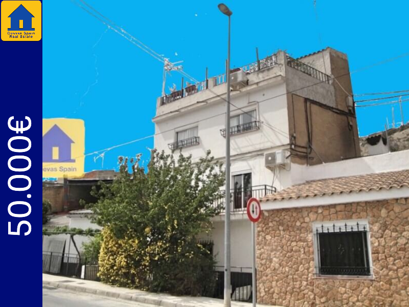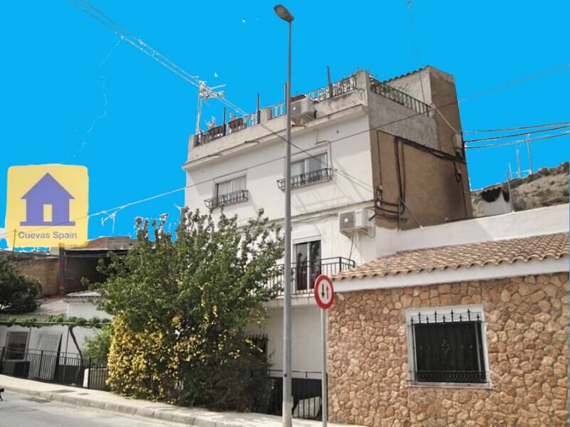 Groot 3 verdiepingen hoog dorpshuis met een aantal grotkamers onder het huis. Gelegen in Zujar en heeft 4-5 slaapkamers. het heeft een mooi terras met uitzicht. Het huis is voorzien van airconditioning. Twee ingangen, één voor en één aan de achterzijde.