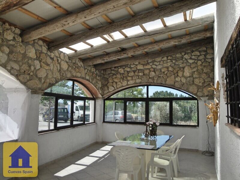 Gran grupo de casas cueva, con un camino privado de largo y cerca 5 hectáreas de tierra. Muy bien agrupados en un valle con vistas maravillosas. Uno de los 3 grandes cuevas es totalmente terminado, bien construido y amueblado completo y tiene seis dormitorios y tres baños, dos cocinas, y un gran salón. Otros dos cuevas tienen que ser terminado y se pueden construir hasta ser también igual de grandes casas o unidades más pequeñas para alquiler como un hotel, resort o airbnb. El agua y la electricidad están conectadas. Situado cerca de Benamaurel. El terreno tiene olivos y árboles frutales, uvas, una huerta y siempre agua para el riego. Las cuevas tienen un muy buen acceso.