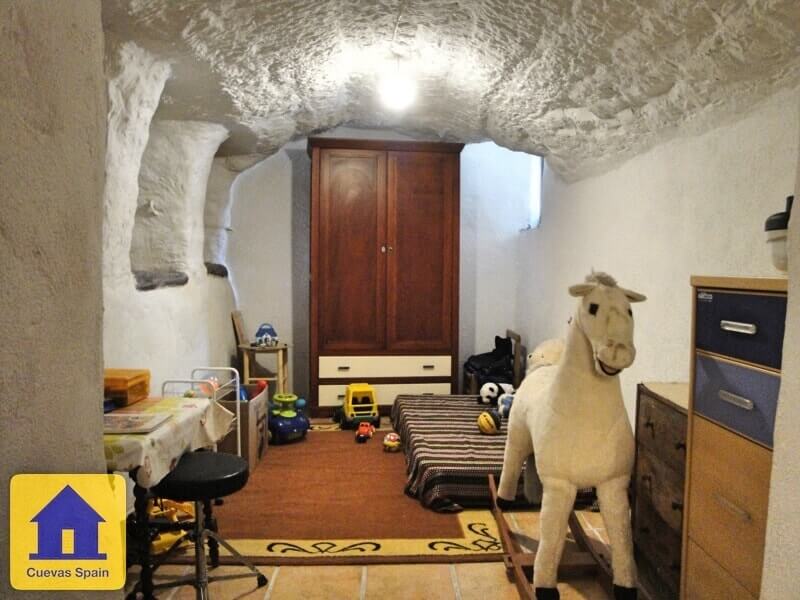 Large group of Cave houses, with a long private driveway and around 5 hectares of land. Beautifully grouped together in a valley with marvellous views. One of the 3 large caves is totally finished, well built and full furnished and has six bedrooms and three bathrooms, two kitchens, and a large salon. Two other caves have to be finished and can be build up to be also equally large homes or smaller units for renting out as a hotel, resort or airbnb. Water and electricity are connected. Located near Benamaurel. The land has olive and fruit trees, grapes, a vegetable garden and always water for the irrigation. The caves have a very good access.