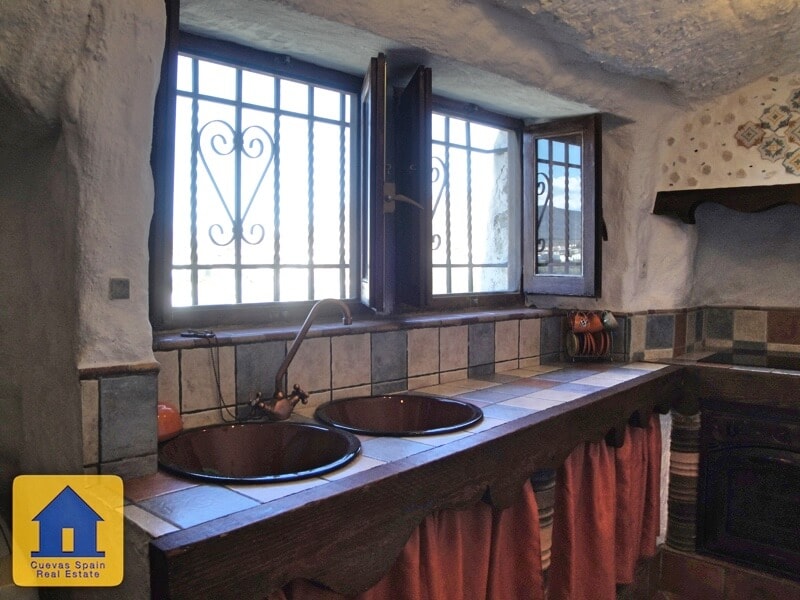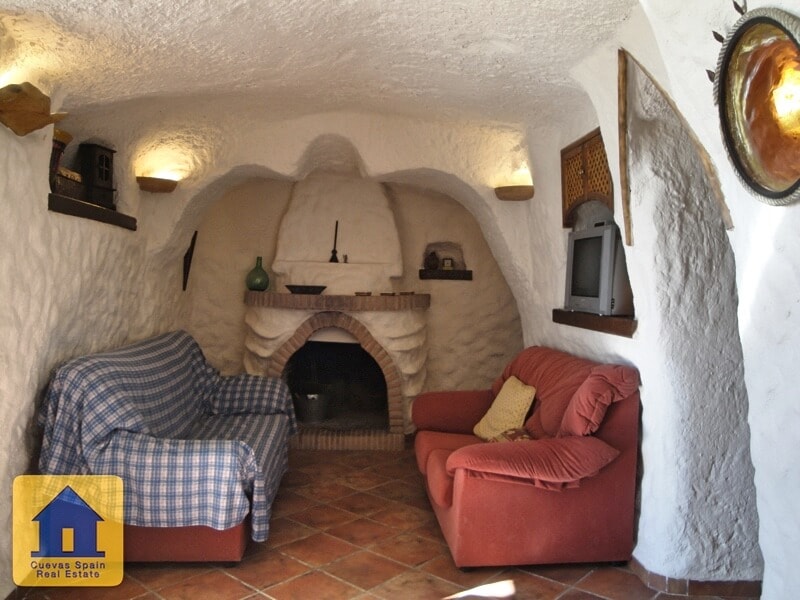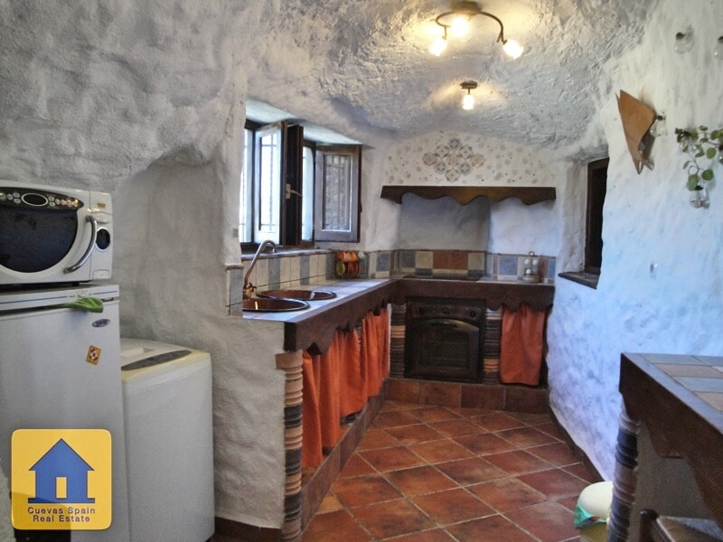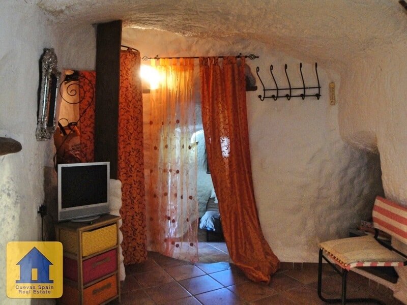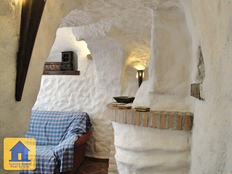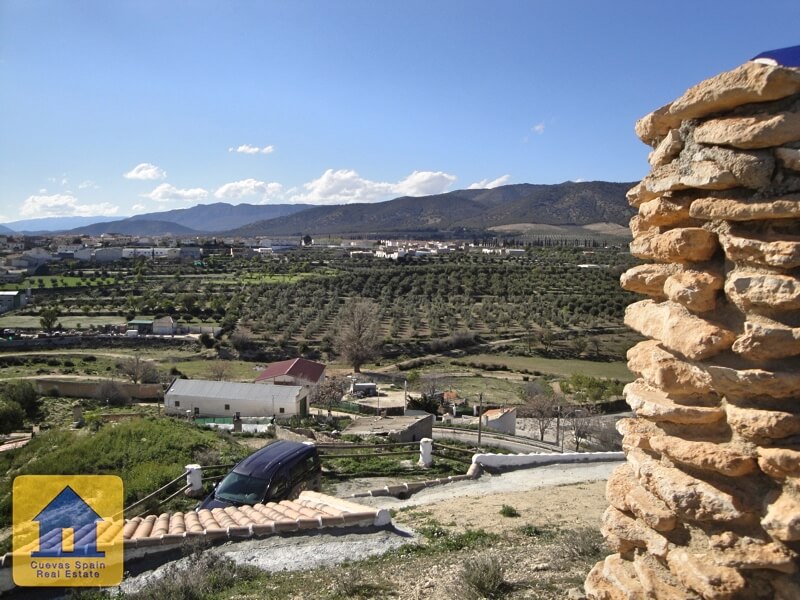 Lovely quirky cave house with tons of character, situated in a quiet elevated spot with fabulous views of Huescar. The sitting room has a fireplace with feature brickwork. The kitchen is sunny with views. The bathroom is spacious and beautifully finished. There are currently 3 bedrooms, 2 of which are walk-through. You have the option to adjoin the middle bedroom to the kitchen, creating a dining room and 2 private bedrooms. Across from the cave is a sunny spot with marvelous views. This is public land used for parking and can also be a great spot to sit and watch the sunset. Alongside the cave is a staircase that leads up to the land above the cave. Along the way up the stairs is a cosy seating nook carved into the rock. Above the cave, you have expansive views of Huéscar and the surrounding mountains. With a little work, this could be a delightful rooftop terrace. Water and electricity are connected. Internet can be connected. This cave is in excellent condition, very well built and well maintained. The cave was recently refurbished and you can live in it immediately.