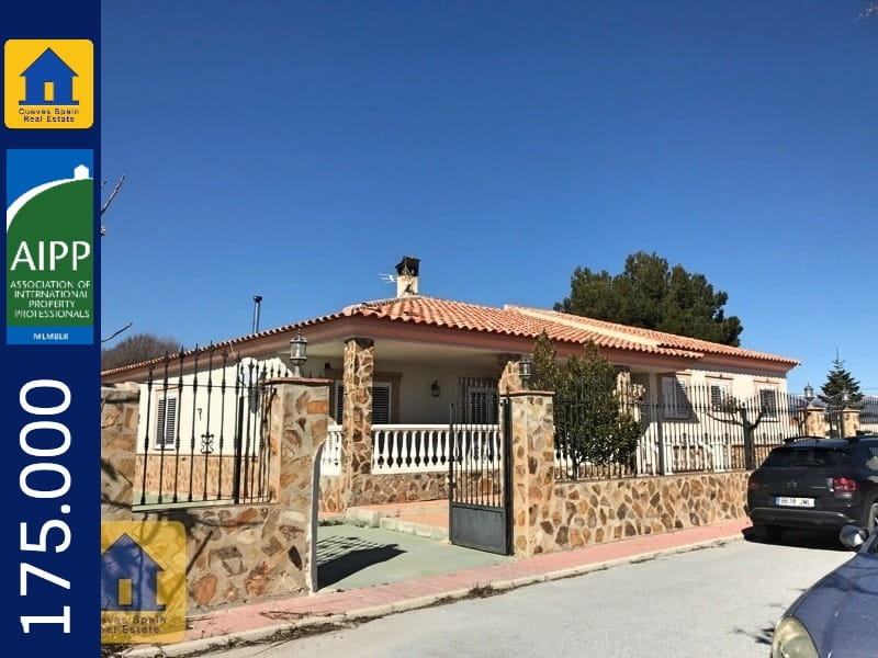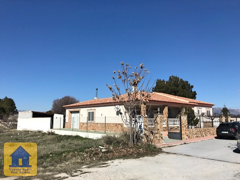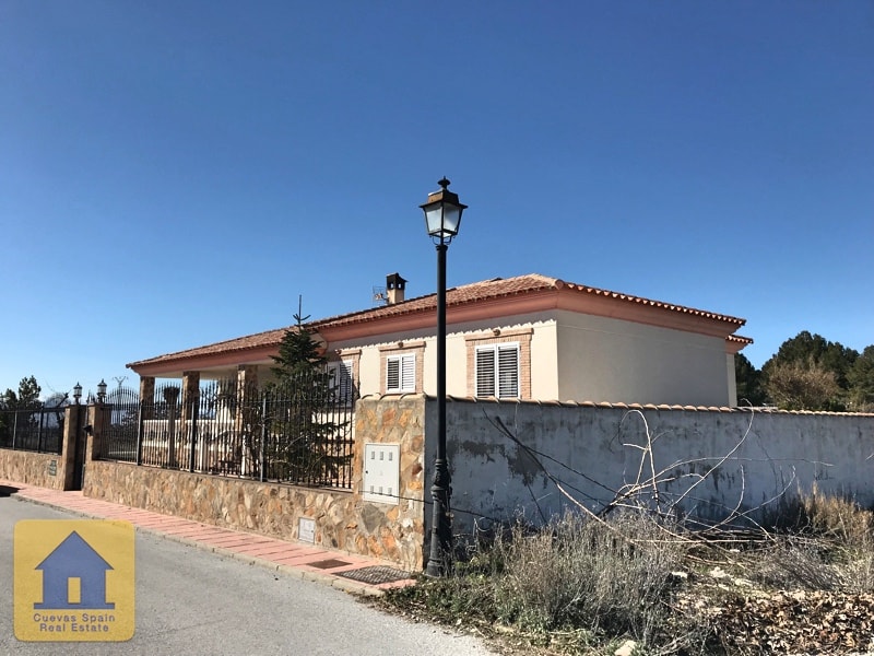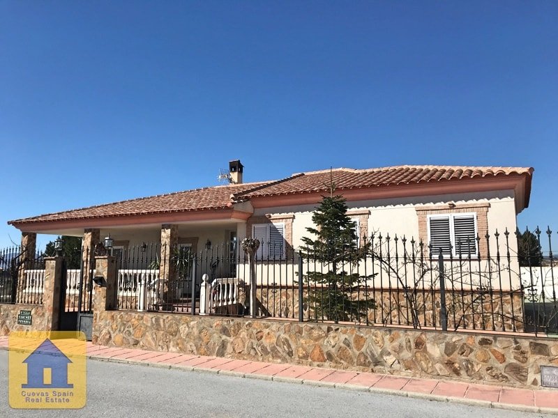A beautiful and well built detached villa on a quiet location in Los Olivos, at short distance from the village Castillejar. The house has 3 large bedrooms and 2 bathrooms, a large kitchen diner, a large sitting room, a utility room, and 2 garages. Central heating on oil or pellet burner. Furniture stays. Outside is a shaded terrace and a large walled garden around the house. A house to be seen if you are looking for quality.
