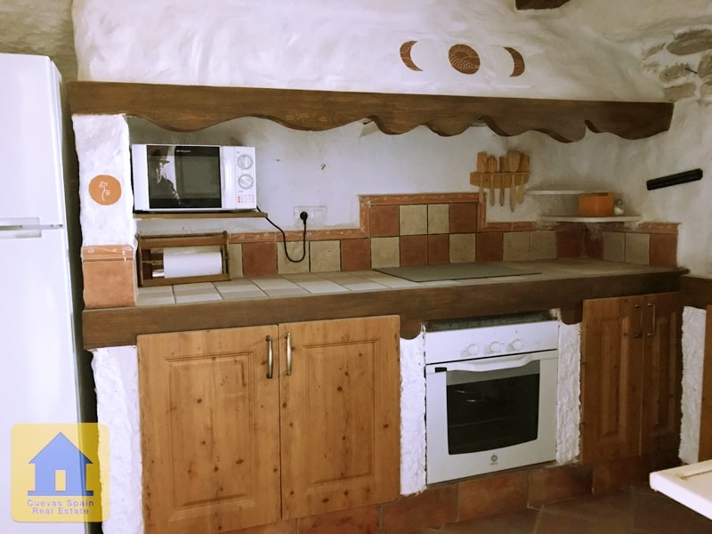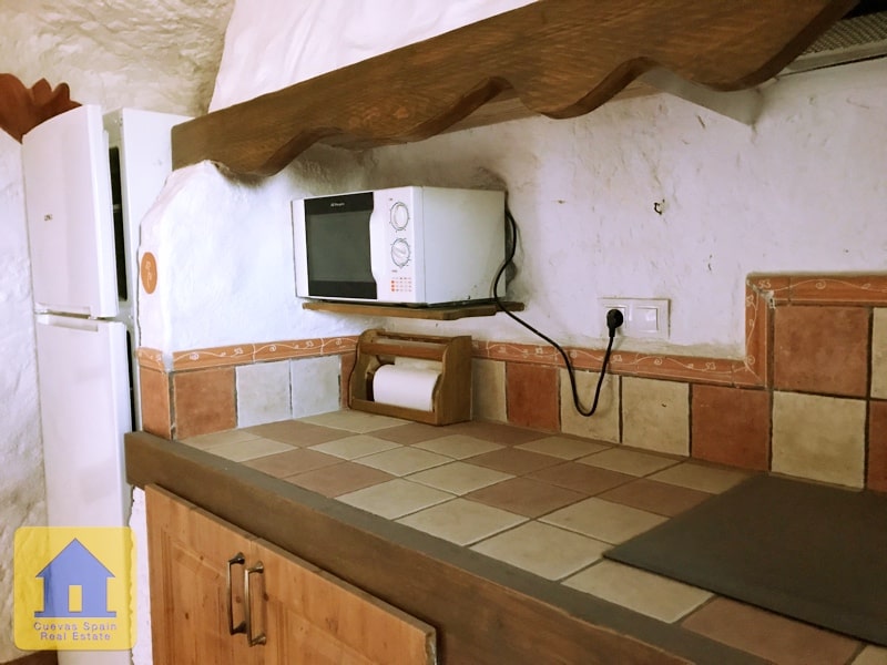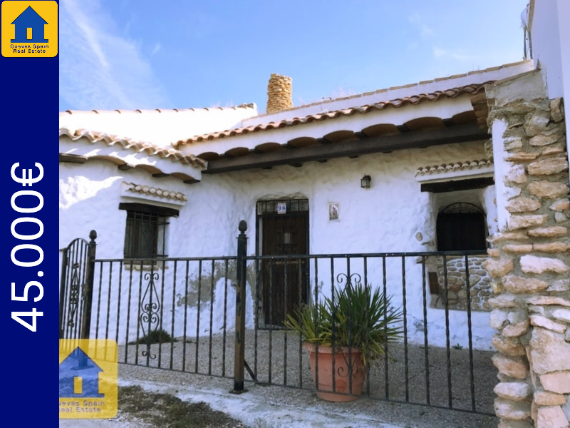 A lovely cosy cave house with a sunny terrace in front and a marvellous view to the village Huescar. Beautifully situated on a quiet spot. With a large kitchen, sittingroom with fireplace, and beautiful bathroom, with toilet, shower and sink and 2 independent bedrooms. Excellent condition. Access is good, parking in front.