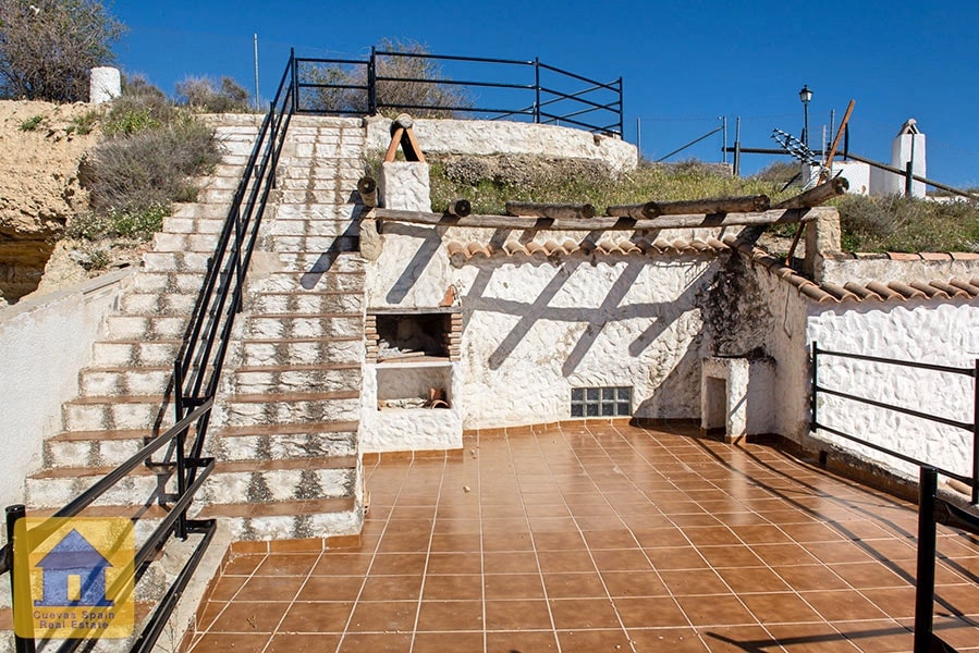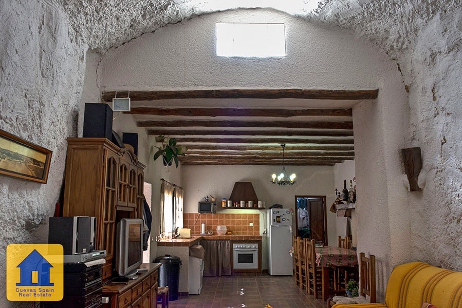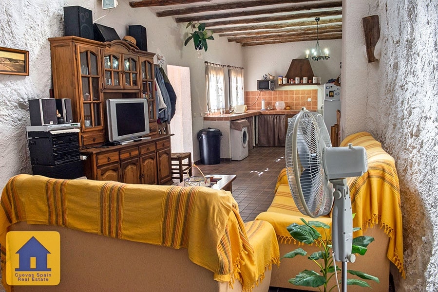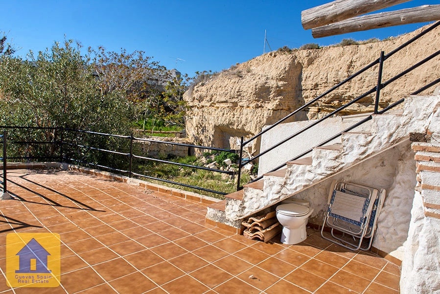 Beautiful authentic cave house in very good condition, fully furnished, ready to move in. There is a nice private patio and an upstairs terrace. Quiet location in a cul de sac. Next door is an open, grassy lot with trees, that can be negotiated into the purchase price, for a garden, garage and/or pool. Shops, restaurants and tapas within walking distance or 5 mins by car.