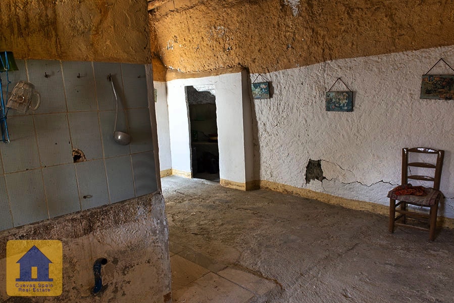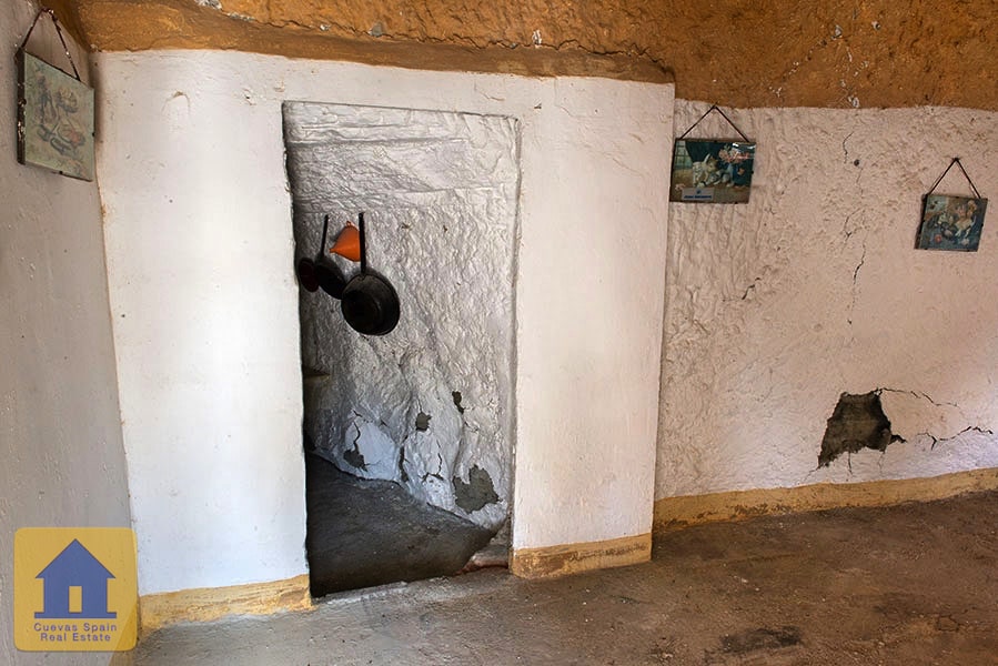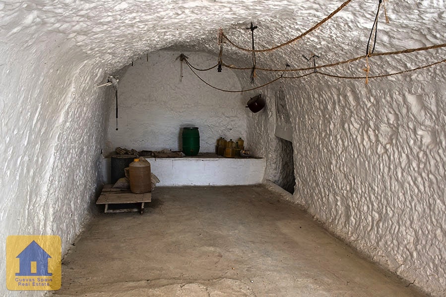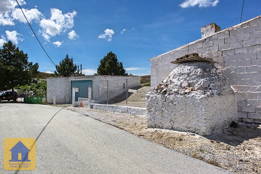 Lovely authentic large cave house in the hamlet of Huerta Real, Benamaurel. Lake Negratin is at 10 minutes drive. The cave is set on a large plot of land with good views and is partially reformed. It has a very large independent garage, large patio/garden and several unreformed little caves in the courtyard. It also has a garden parcel just accross the road. The potential for the layout and additional rooms is huge. At the moment there are 2 living rooms, 3 bread ovens at least 6 bedrooms and a kitchen.