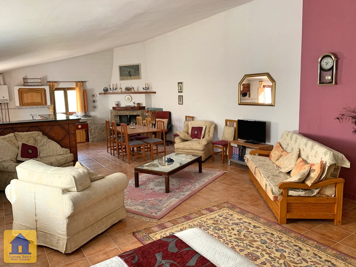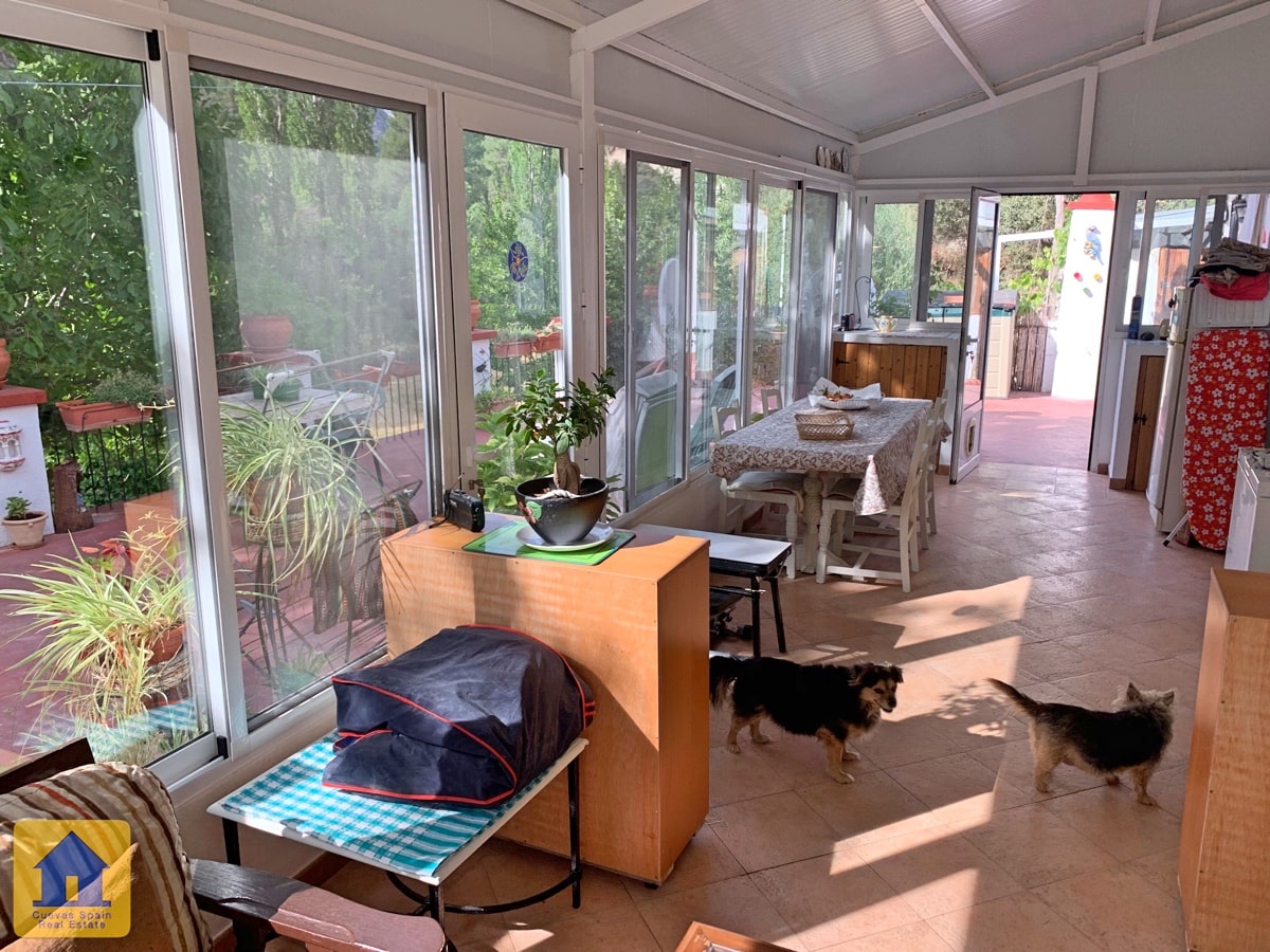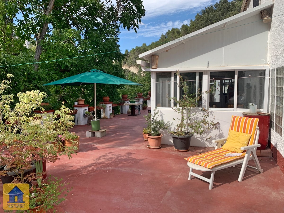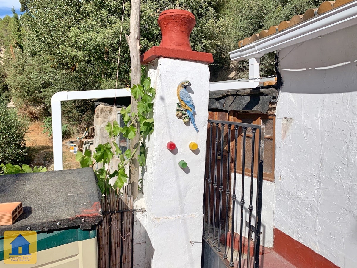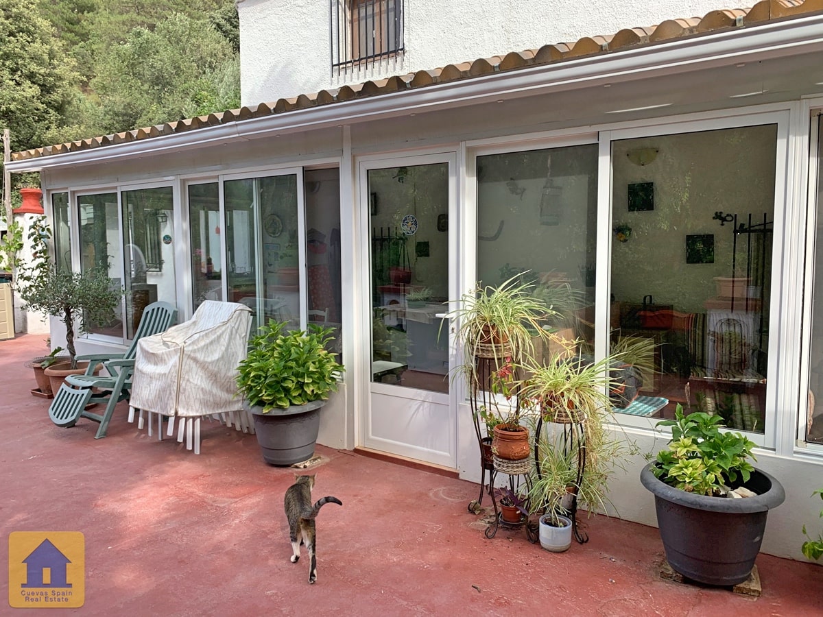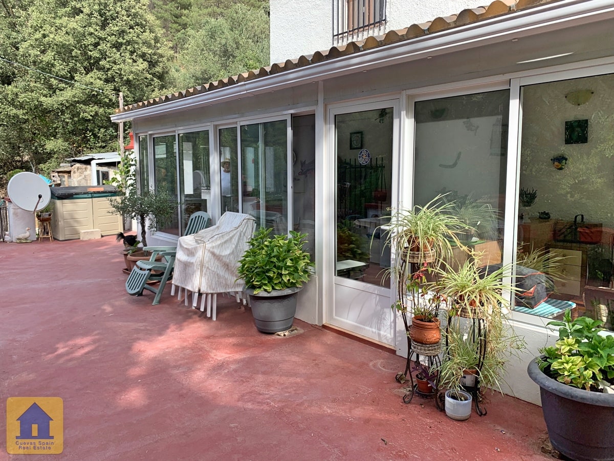 Esta villa es un hallazgo raro, ubicado en las alturas del Parque Natural de Castril. Solo hay un puñado de propiedades residenciales en el parque ya que no se puede construir ninguna nueva allí. La propiedad se encuentra en aproximadamente una media hectárea de tierra montañosa, justo al lado del camino rural, con el río que fluye debajo. Hay espacio de estacionamiento privado para varios coches en la entrada. Entras por una puerta de jardín y entras en un vasto patio-terraza con plantas, flores y hermosos objetos de decoración. Hay un invernadero con vistas a las montañas de los alrededores y mucha luz. Entras a la casa a través de la cocina, o puedes bajar a un vasto jardín con muchas variedades de árboles frutales completamente desarrollados, y escuchas el río que pasa y los pájaros. Hay una sección de jardín vegetariano, cercada para protegerla de los animales. Todo el paisaje es muy verde y puede nevar en invierno.