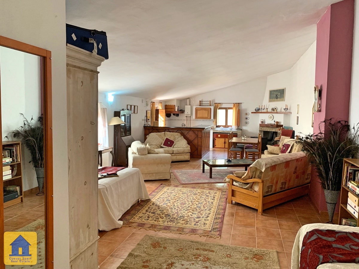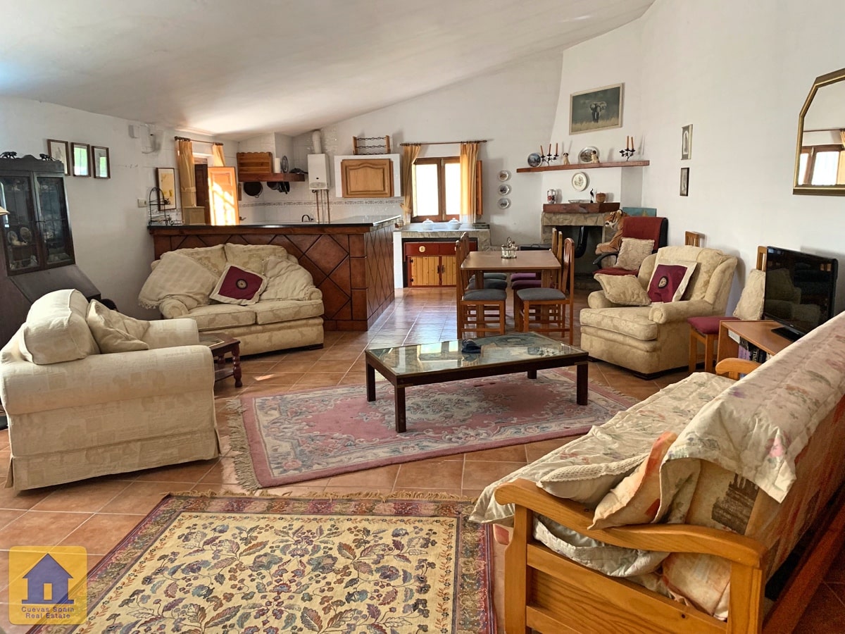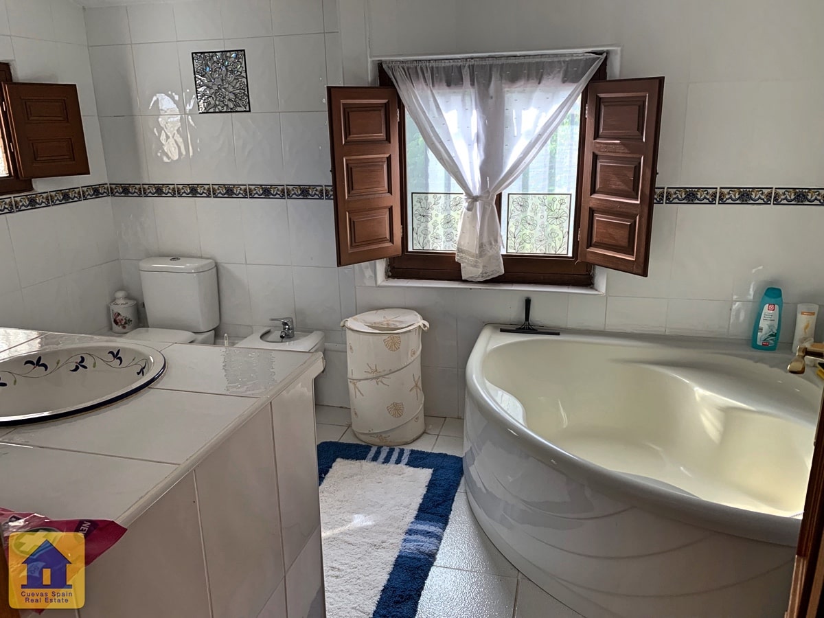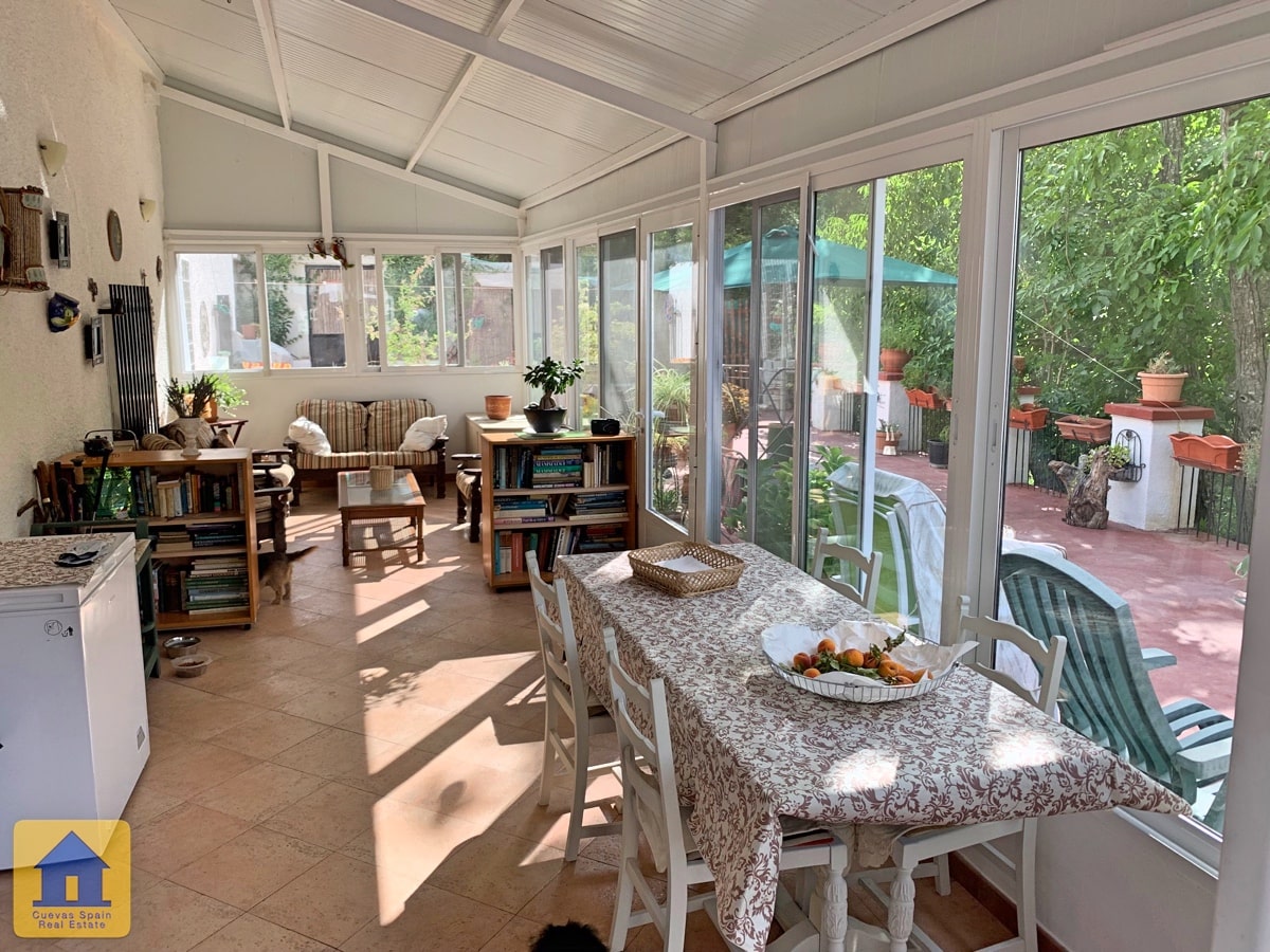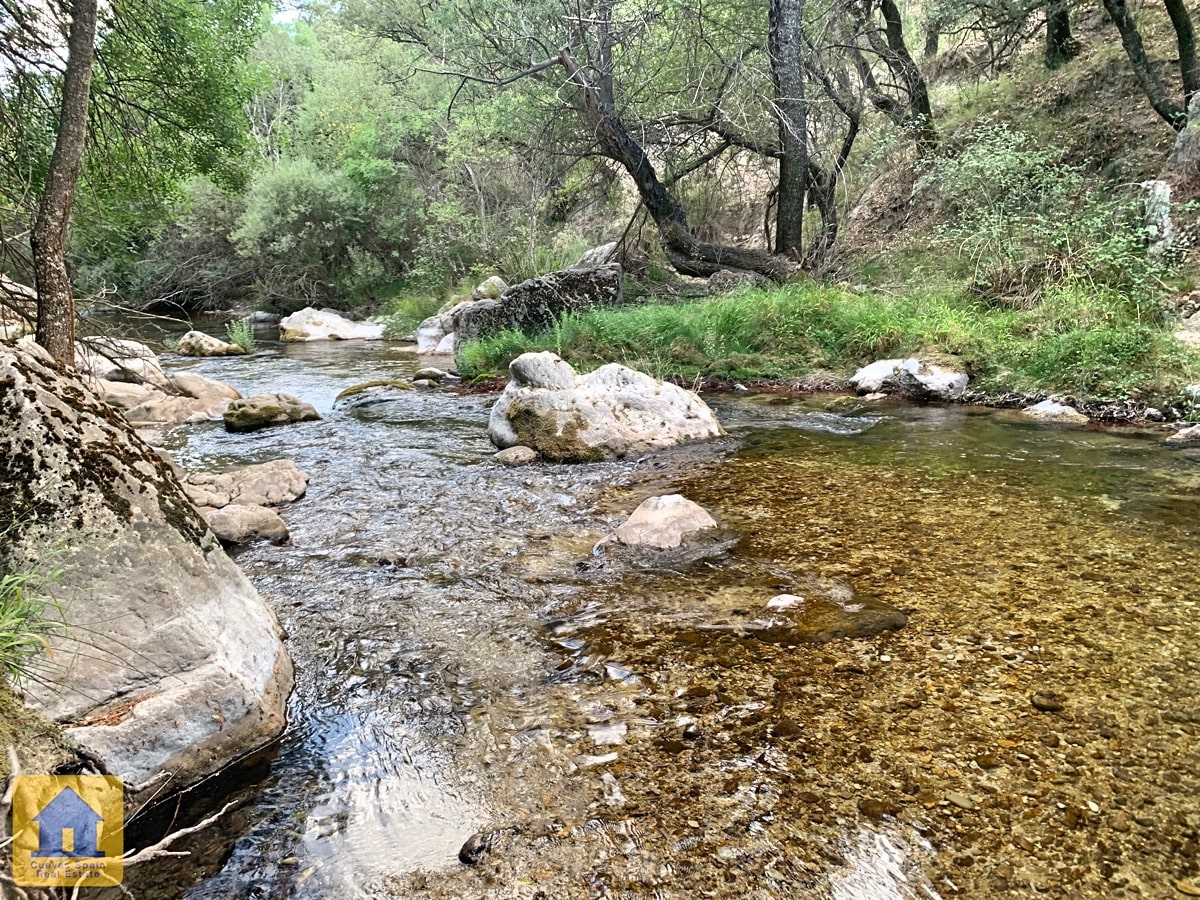 Esta villa es un hallazgo raro, ubicado en las alturas del Parque Natural de Castril. Solo hay un puñado de propiedades residenciales en el parque ya que no se puede construir ninguna nueva allí. La propiedad se encuentra en aproximadamente una media hectárea de tierra montañosa, justo al lado del camino rural, con el río que fluye debajo. Hay espacio de estacionamiento privado para varios coches en la entrada. Entras por una puerta de jardín y entras en un vasto patio-terraza con plantas, flores y hermosos objetos de decoración. Hay un invernadero con vistas a las montañas de los alrededores y mucha luz. Entras a la casa a través de la cocina, o puedes bajar a un vasto jardín con muchas variedades de árboles frutales completamente desarrollados, y escuchas el río que pasa y los pájaros. Hay una sección de jardín vegetariano, cercada para protegerla de los animales. Todo el paisaje es muy verde y puede nevar en invierno.