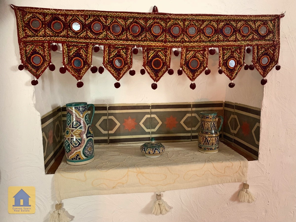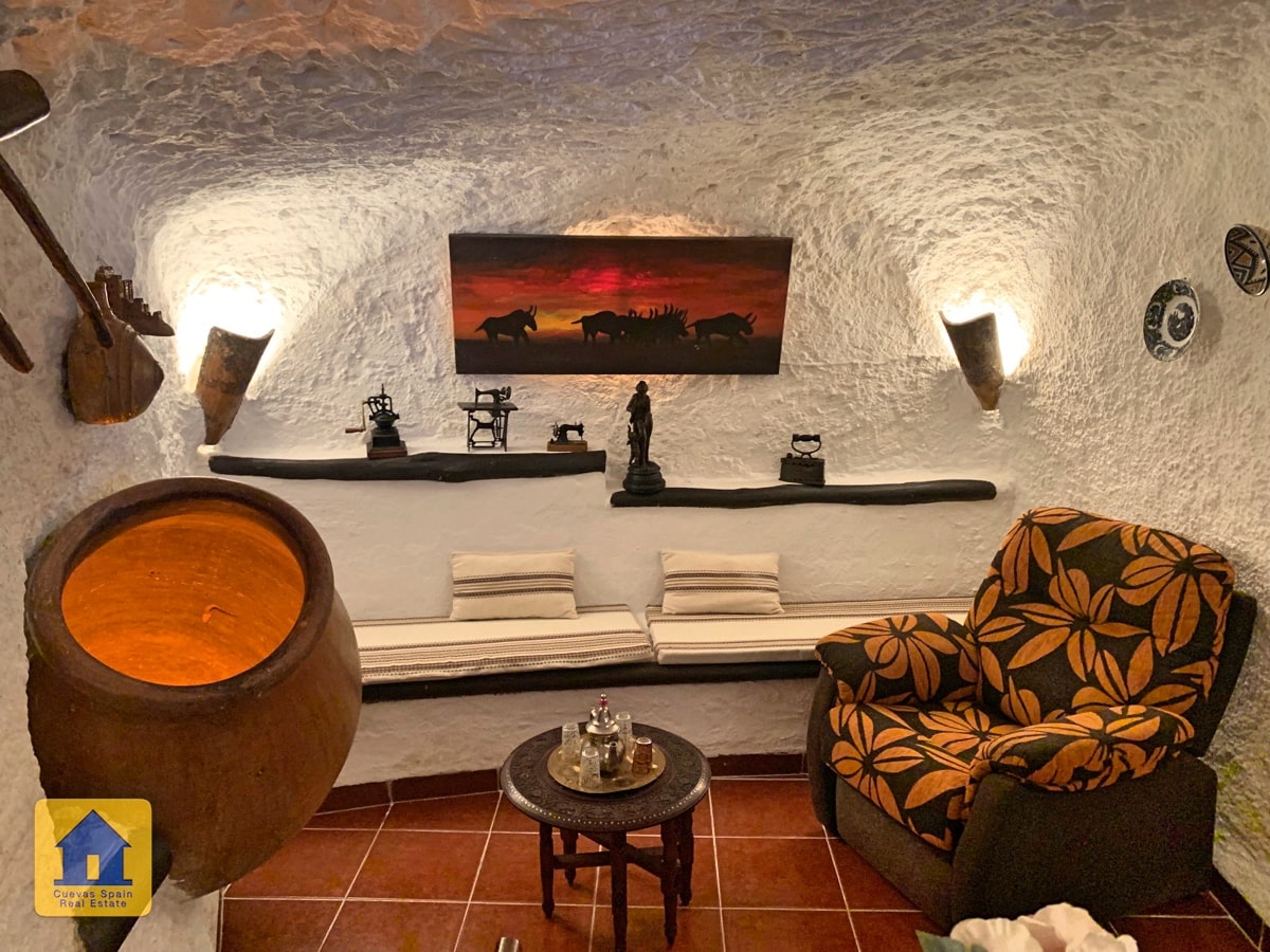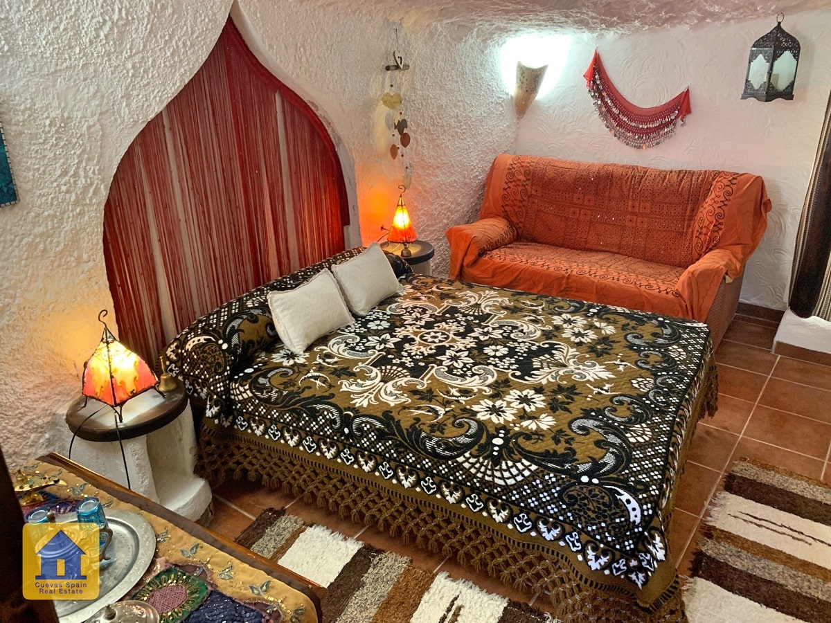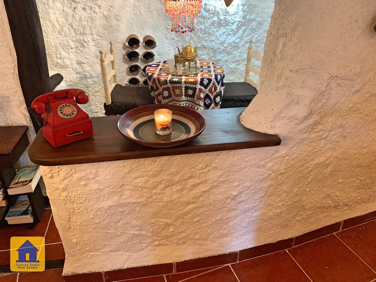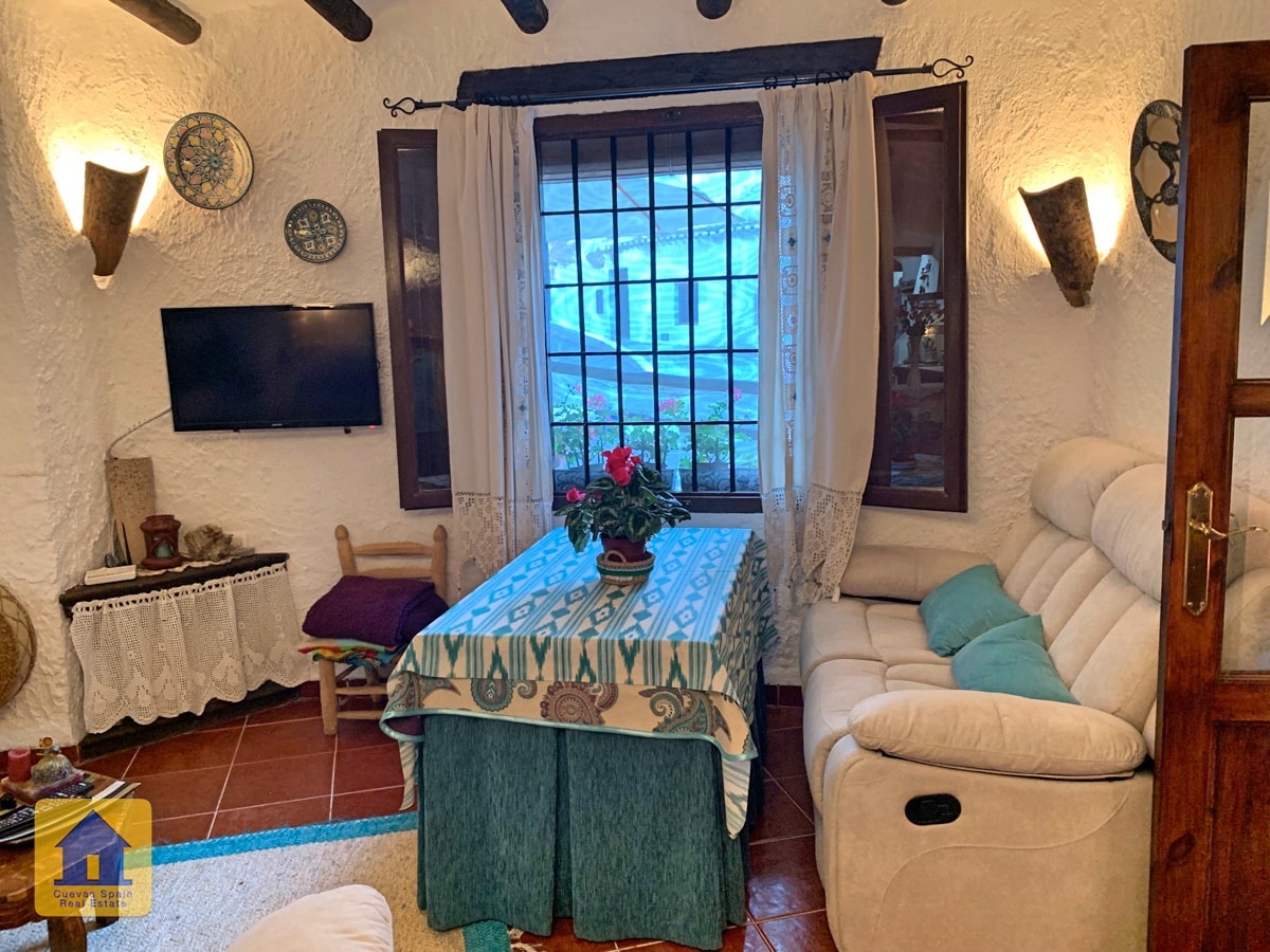 A absolute stunning cave house with 3 bedrooms, 1 bathroom, a patio and an outside terrace. Well built, well maintained and beautifully decorated. It is sold mostly fully furnished with quality furnitures. Access and parking-area either on the front or just aside in the street. located in a quiet area in Galera. All amenities in the village at 5 minutes walk.
