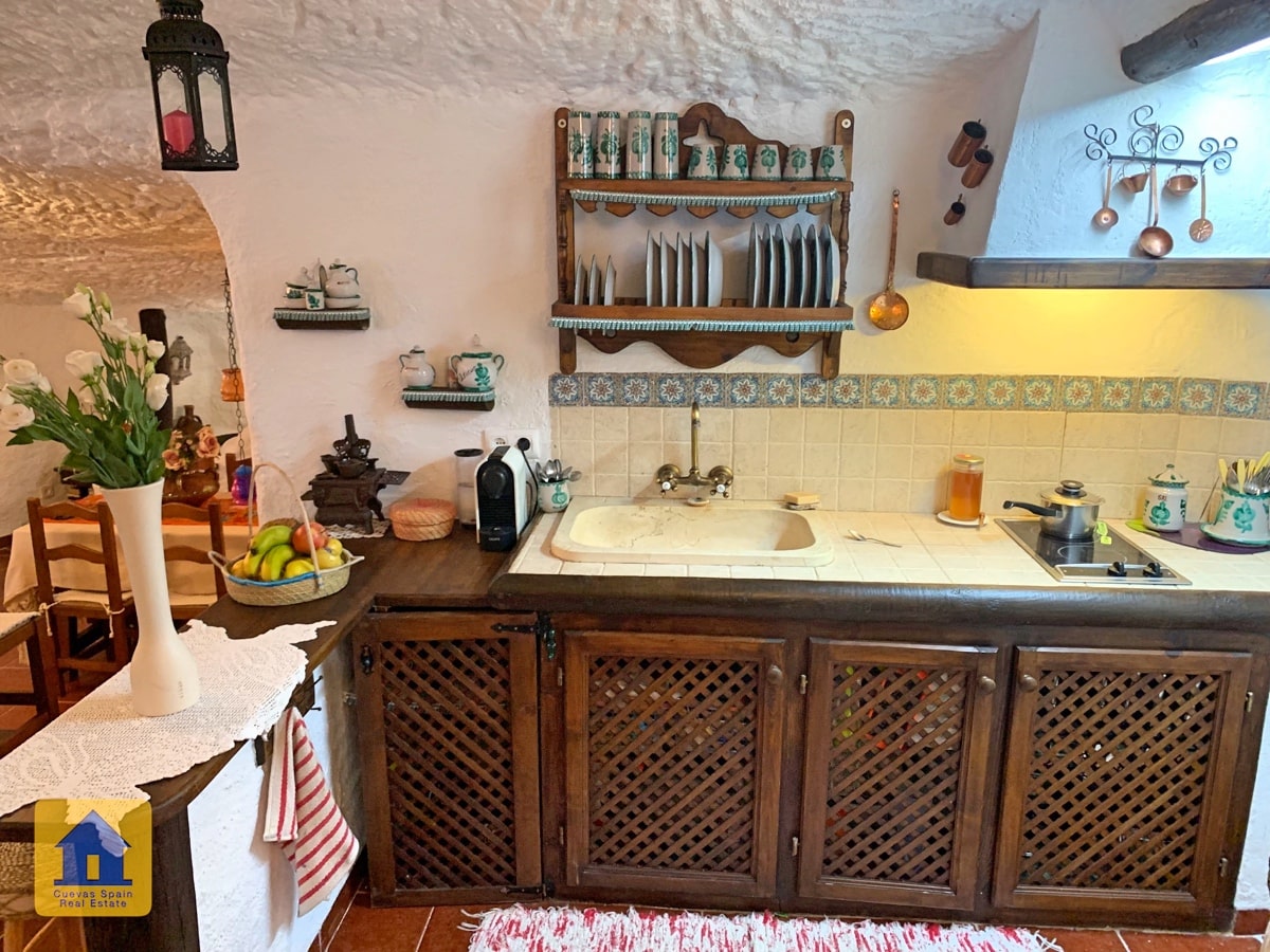 Une maison troglodyte absolument magnifique avec 3 chambres, 1 salle de bain, un patio et une terrasse extérieure. Bien construite, bien entretenue et joliment décorée. Elle est vendue pour la plupart entièrement meublée avec des meubles de qualité. Accès et parking sur le devant ou juste à côté dans la rue. située dans un quartier calme à Galera. Toutes les commodités dans le village à 5 minutes à pied.