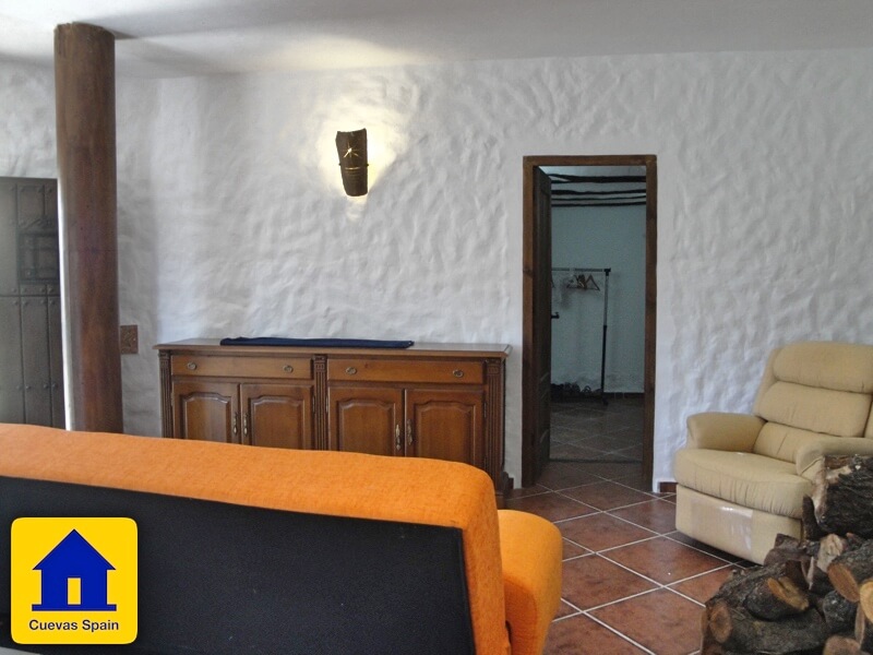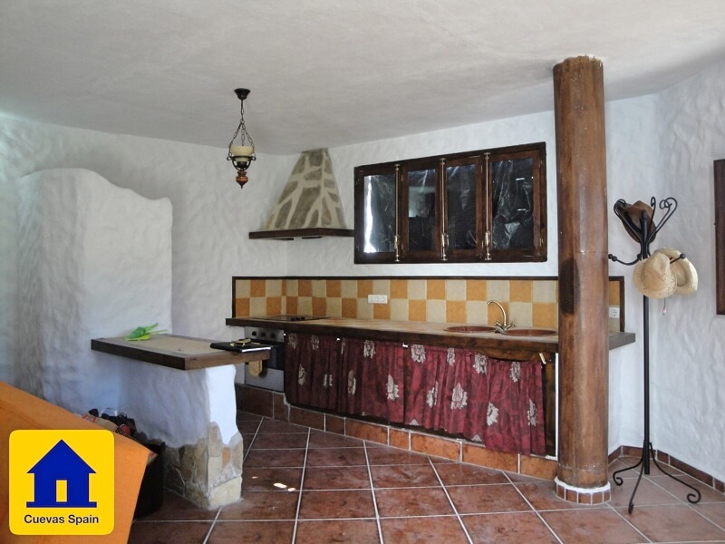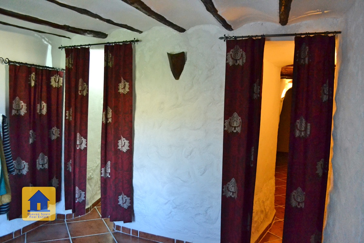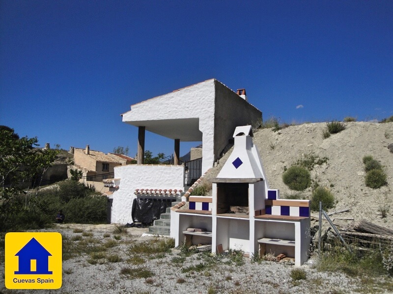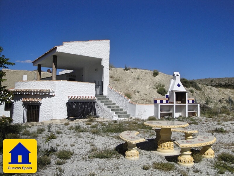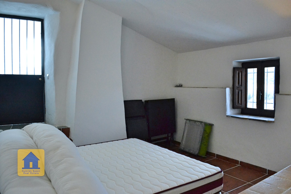 Striking cave property on the edge of San Clemente, a quiet, remote hamlet of the town of Huéscar. The cave has an open floor plan living room and kitchen, spacious hall, 3 bedrooms and 1 bathroom. Downstairs, there is a front patio. Upstairs, there is a covered terrace and a large open terrace with barbecue to the south. This cave house would make a great holiday home or year round home. The cave has not been lived in for a while and will require a few repairs to update it.