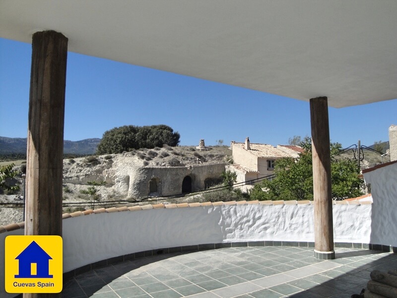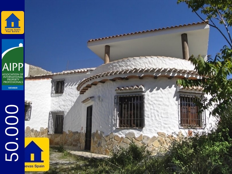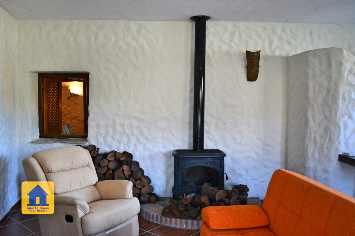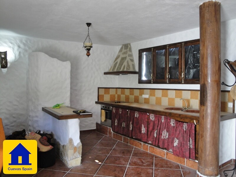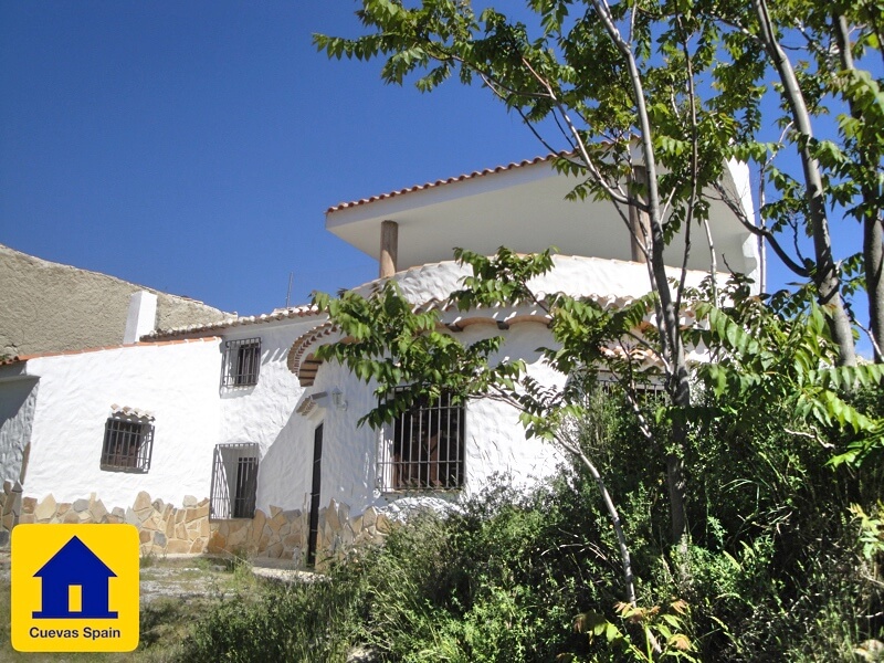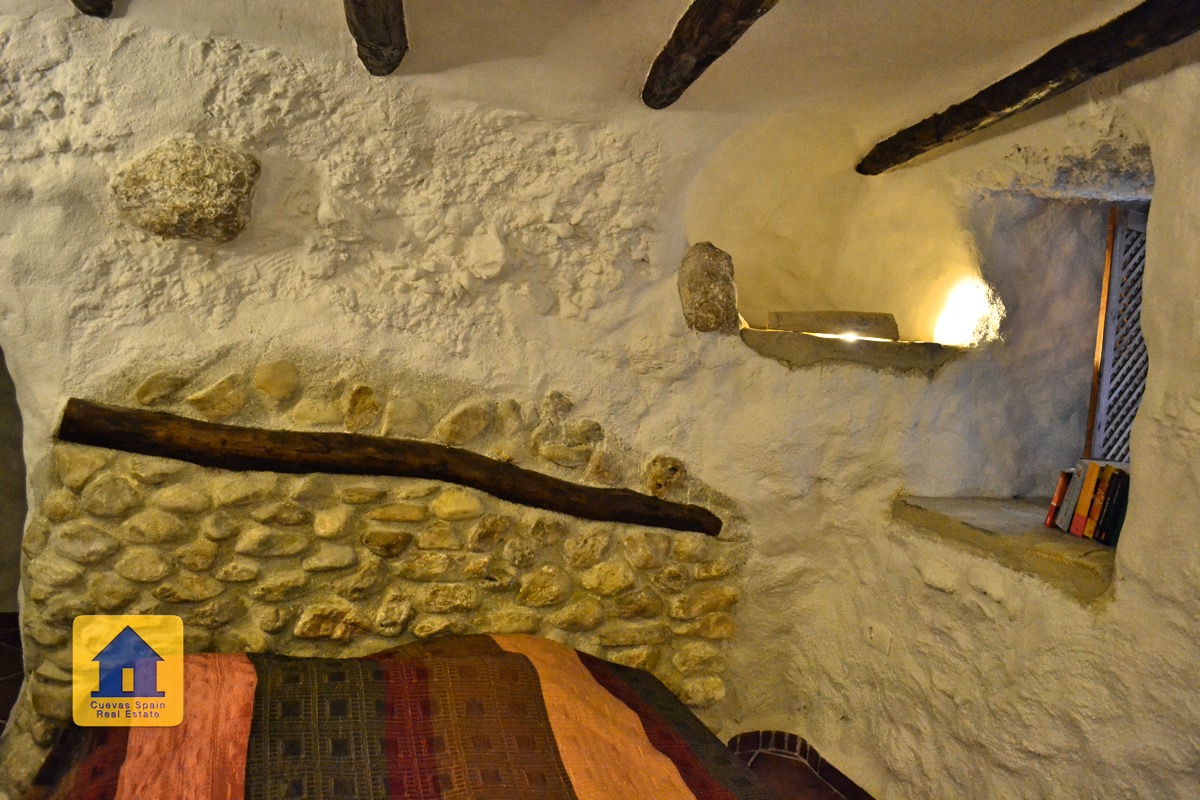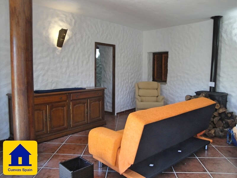 Striking cave property on the edge of San Clemente, a quiet, remote hamlet of the town of Huéscar. The cave has an open floor plan living room and kitchen, spacious hall, 3 bedrooms and 1 bathroom. Downstairs, there is a front patio. Upstairs, there is a covered terrace and a large open terrace with barbecue to the south. This cave house would make a great holiday home or year round home. The cave has not been lived in for a while and will require a few repairs to update it.