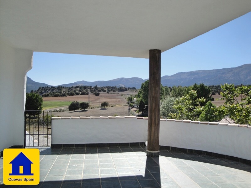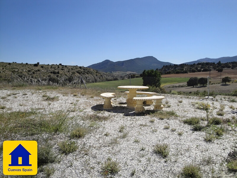 The property is built on a mound with magnificent views of the Sierra de Castril mountain range. The San Clemente hamlet has one street, lined with small houses and caves, many of them uninhabited at this time. The San Clemente reservoir is a few minutes drive via a dirt track. The reservoir is a fantastic place for fishing and summer swimming. The town of Huéscar is a 20 min drive to amenities.