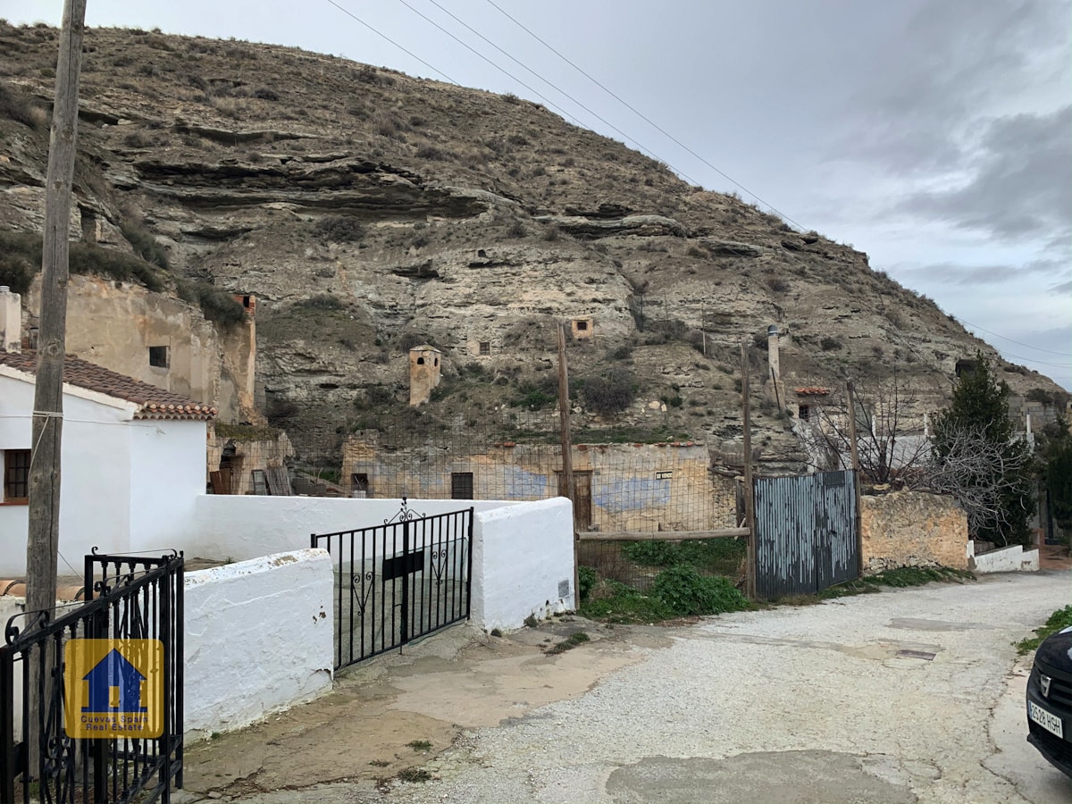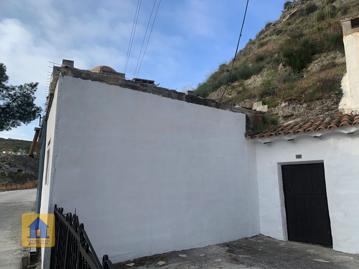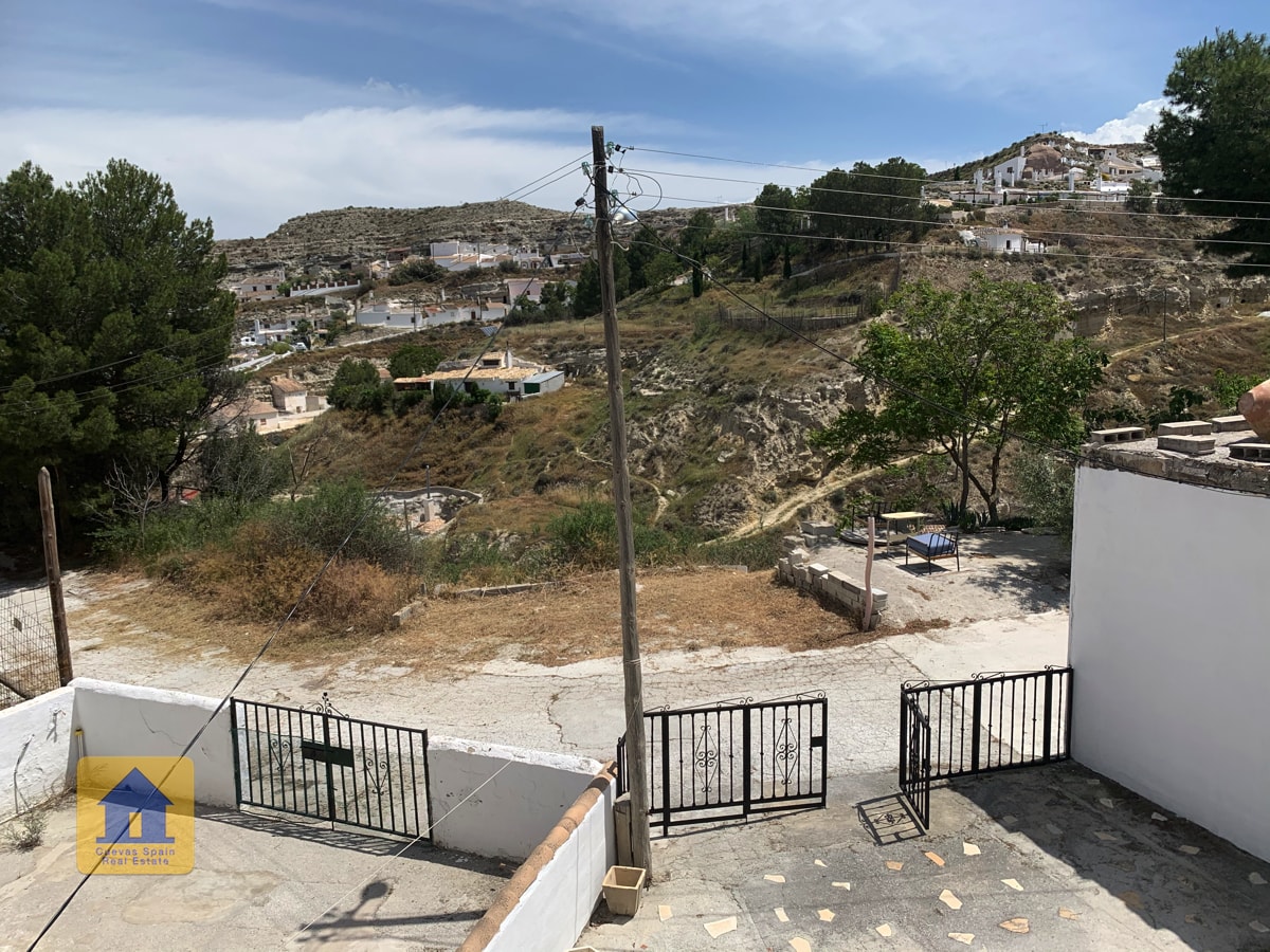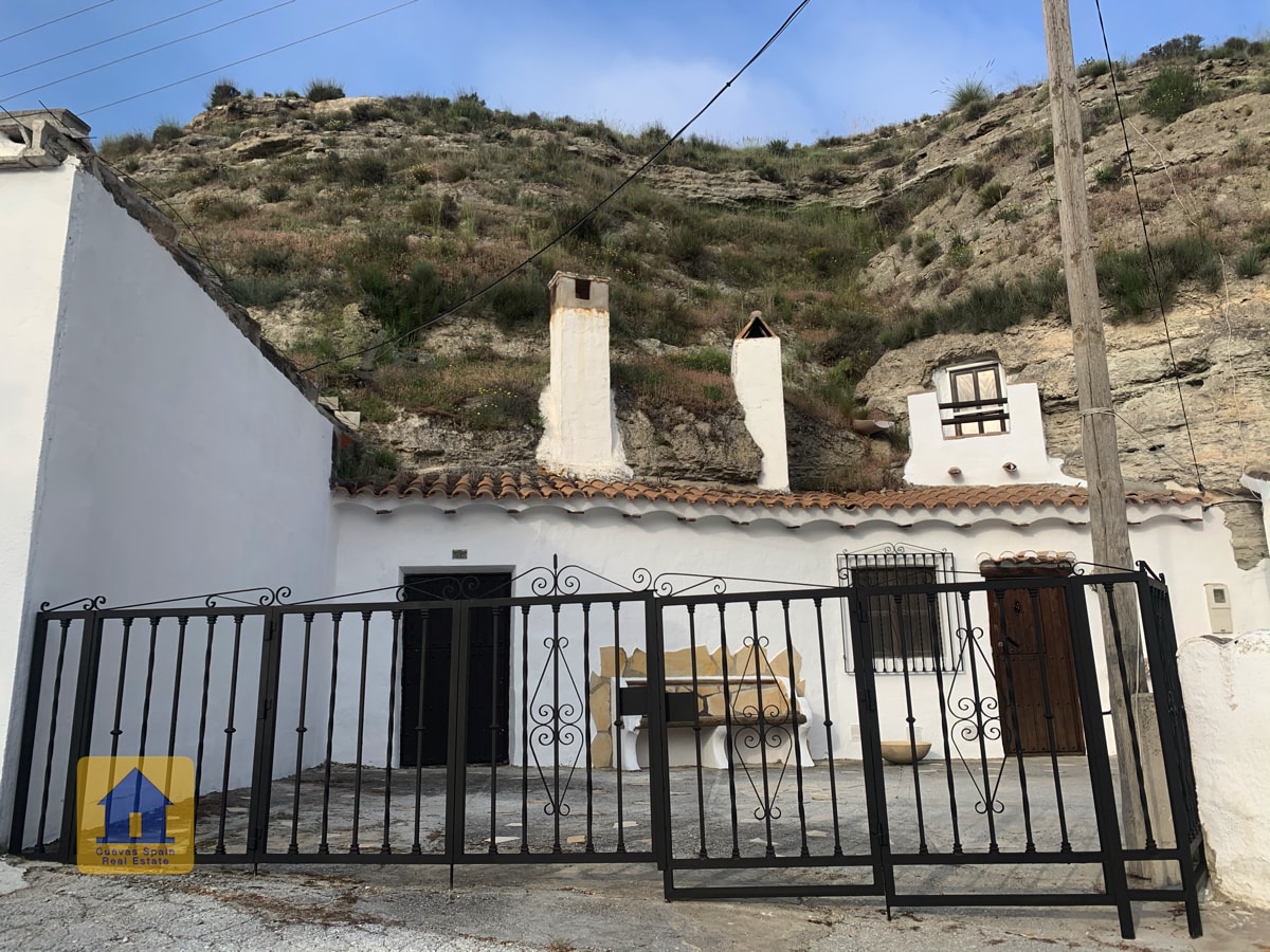 Belle grotte originale de deux étages située sur les hauteurs du village de Galera. La propriété dispose de 3-4 chambres et 2 salles de bains. Le rez-de-chaussée a un salon central avec poêle à bois qui mène dans quatre directions: à la grande cuisine; spacieuse chambre principale et salle de bain; hall d'entrée qui mène à une salle de bains et à des escaliers à l'étage supérieur; deux salles avant attenantes qui pourraient être un bureau / chambre à coucher, un stockage ou une salle de jeux. L'étage supérieur comprend 2 chambres, dont une avec balcon Juliette et vue sur les collines de Galera. La propriété a été repeinte à l'intérieur et à l'extérieur, elle est donc en excellent état et prête à emménager. Il y a un joli patio avant fermé avec vue. Le patio pourrait accueillir un barbecue et un coin salon ou pourrait être utilisé pour le stationnement. En face de la grotte est un espace supplémentaire avec de superbes vues pour une terrasse de jardin ou un parking. Cette propriété est dans un endroit calme de Galera avec très peu de passage. Le centre du village et les commodités sont à 10 min à pied.