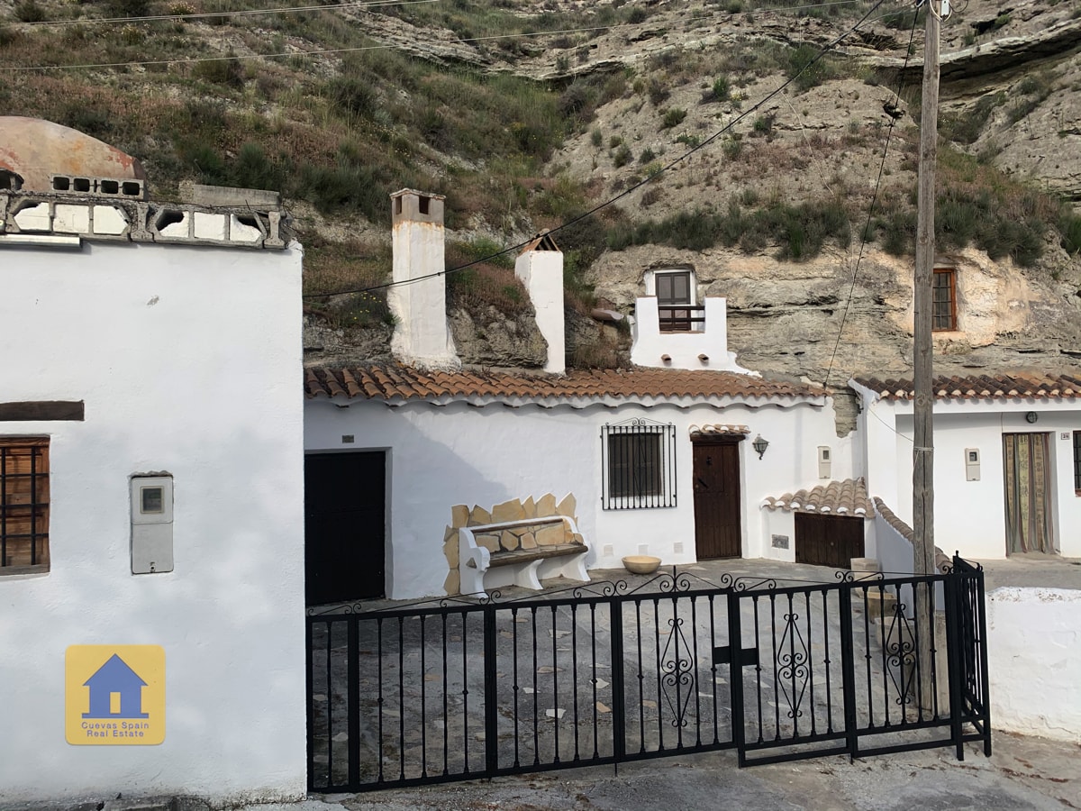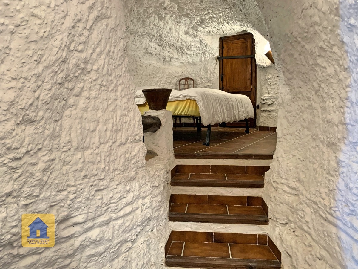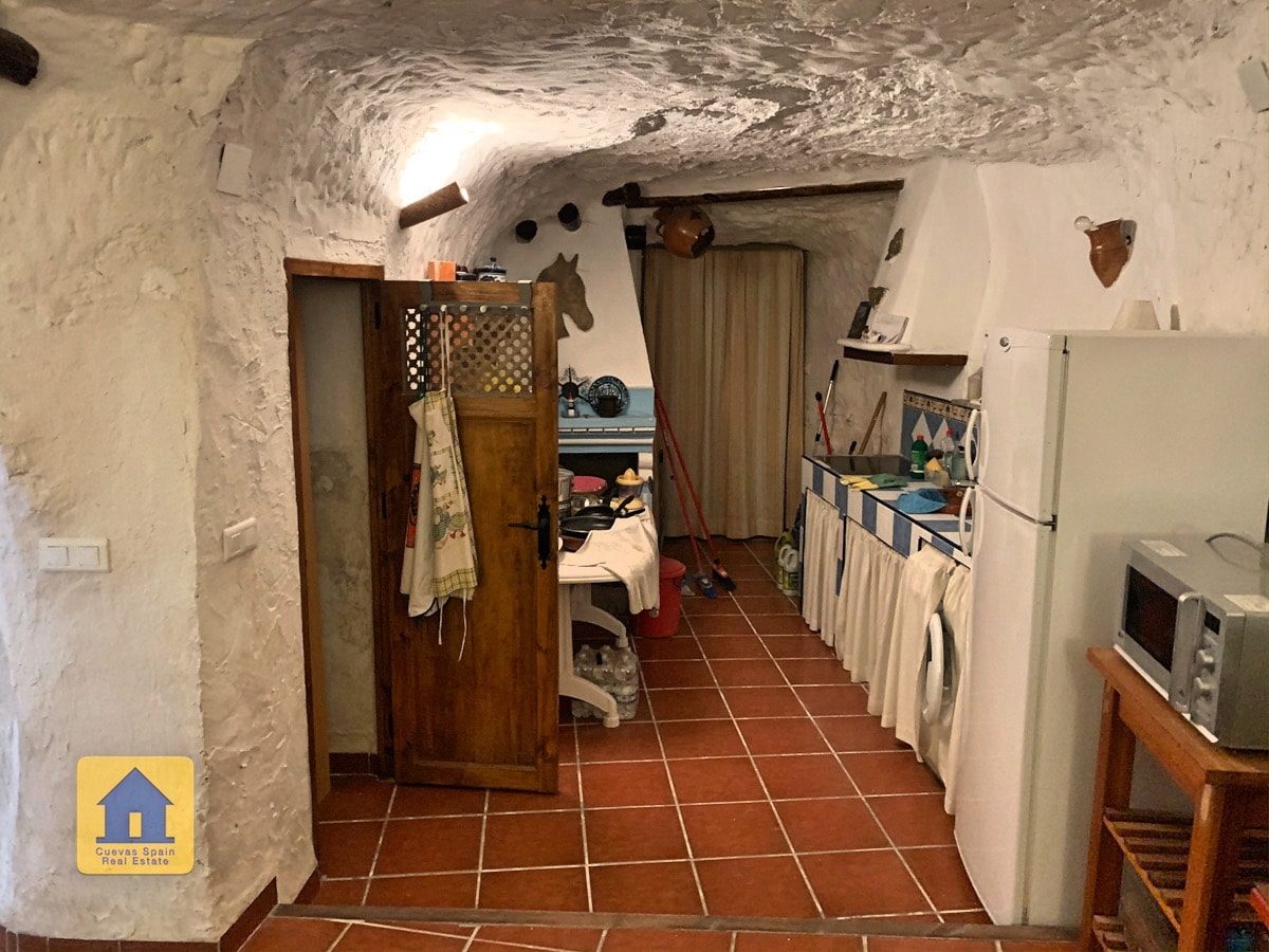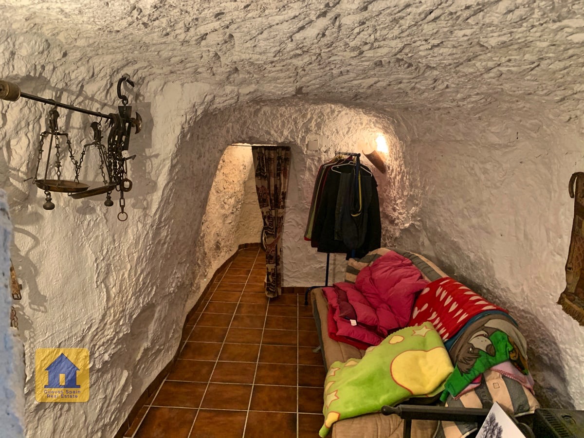 Hermosa y peculiar cueva de dos pisos situada en las alturas del pueblo de Galera. La propiedad cuenta con 3-4 dormitorios y 2 baños. El piso principal tiene una sala central con estufa de leña que se dirige en cuatro direcciones: a la gran cocina; amplio dormitorio principal y baño; área del pasillo que conduce a un baño y escaleras al piso superior; Dos habitaciones con baño privado que podrían ser una oficina / dormitorio, almacenamiento o sala de juegos. La planta superior tiene 2 dormitorios, uno con balcón Juliette y vistas a las colinas de Galera. La propiedad ha sido repintada por dentro y por fuera, por lo que está en excelentes condiciones y lista para entrar a vivir. Hay un bonito patio delantero cerrado con vistas. El patio podría acomodar una barbacoa y área de descanso o podría usarse para estacionar. Al otro lado de la cueva hay espacio adicional con excelentes vistas para una terraza con jardín o estacionamiento. Esta propiedad se encuentra en una zona tranquila de Galera con muy poco pasaje. El centro del pueblo y las comodidades están a 10 minutos a pie.