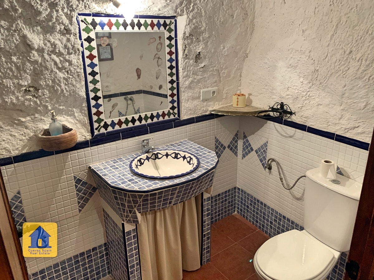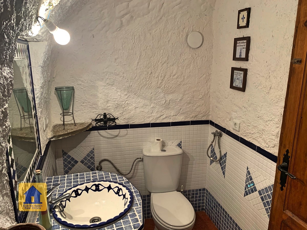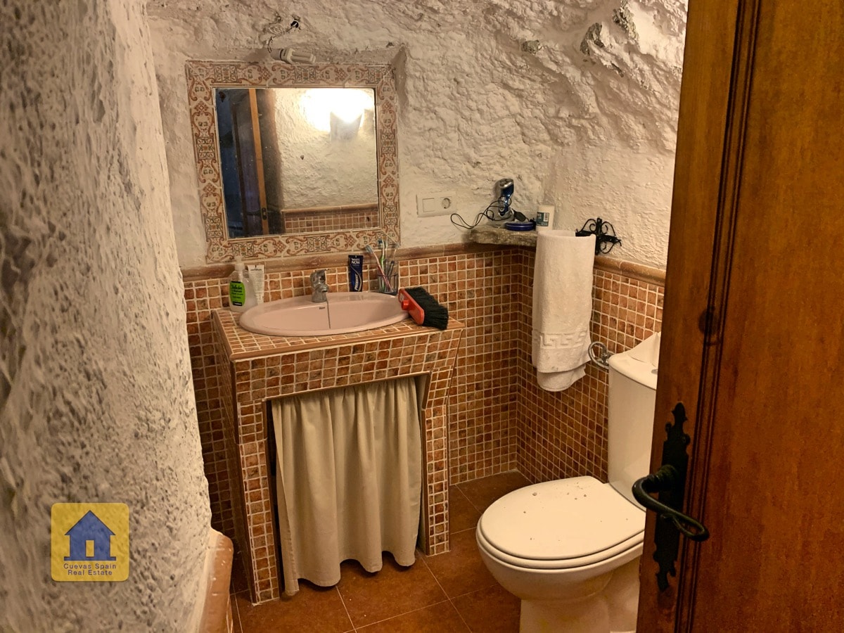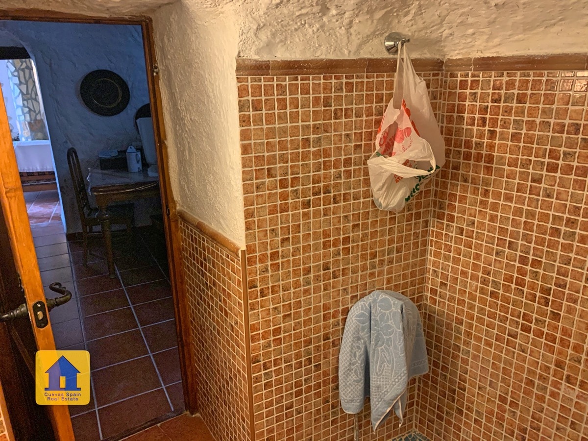 Hermosa y peculiar cueva de dos pisos situada en las alturas del pueblo de Galera. La propiedad cuenta con 3-4 dormitorios y 2 baños. El piso principal tiene una sala central con estufa de leña que se dirige en cuatro direcciones: a la gran cocina; amplio dormitorio principal y baño; área del pasillo que conduce a un baño y escaleras al piso superior; Dos habitaciones con baño privado que podrían ser una oficina / dormitorio, almacenamiento o sala de juegos. La planta superior tiene 2 dormitorios, uno con balcón Juliette y vistas a las colinas de Galera. La propiedad ha sido repintada por dentro y por fuera, por lo que está en excelentes condiciones y lista para entrar a vivir. Hay un bonito patio delantero cerrado con vistas. El patio podría acomodar una barbacoa y área de descanso o podría usarse para estacionar. Al otro lado de la cueva hay espacio adicional con excelentes vistas para una terraza con jardín o estacionamiento. Esta propiedad se encuentra en una zona tranquila de Galera con muy poco pasaje. El centro del pueblo y las comodidades están a 10 minutos a pie.