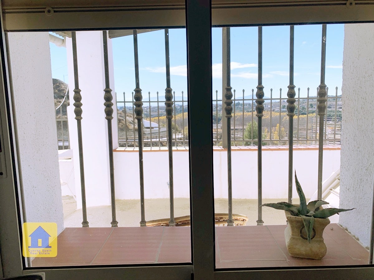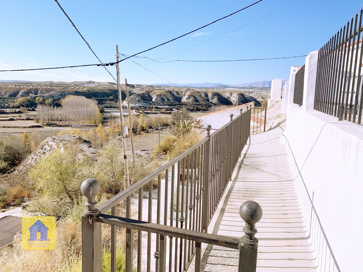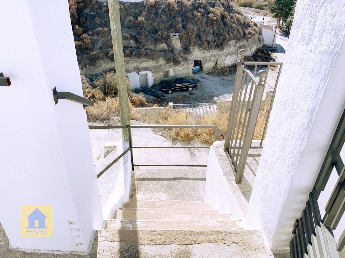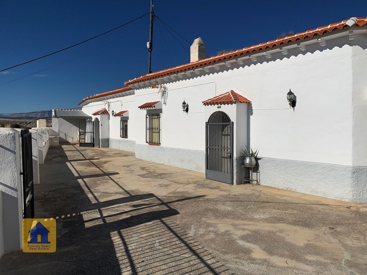 ¡Fantástica casa cueva con impresionantes vistas de los badlands al otro lado del valle! La cueva es muy grande y se puede separar en 2 unidades, cada una con su propia entrada, cocina y baño. Un camino de entrada privado conduce a la puerta y en una amplia terraza con vistas abiertas y una acogedora zona de estar cubierta en el otro extremo. A la derecha al entrar en el patio se encuentra el garaje con una puerta que conduce a la casa (el garaje se utiliza actualmente para el almacenamiento de madera.) Hay una despensa /bodega y una sala de lavandería. La propiedad también tiene un cuarto subterráneo utilizado para almacenar madera, y otra cueva con 2 habitaciones que se utilizaba para los animales en el pasado y ahora tiene almacenamiento de madera, accesible desde la carretera principal. Hay un amplio espacio para aparcar varios coches en la propiedad.