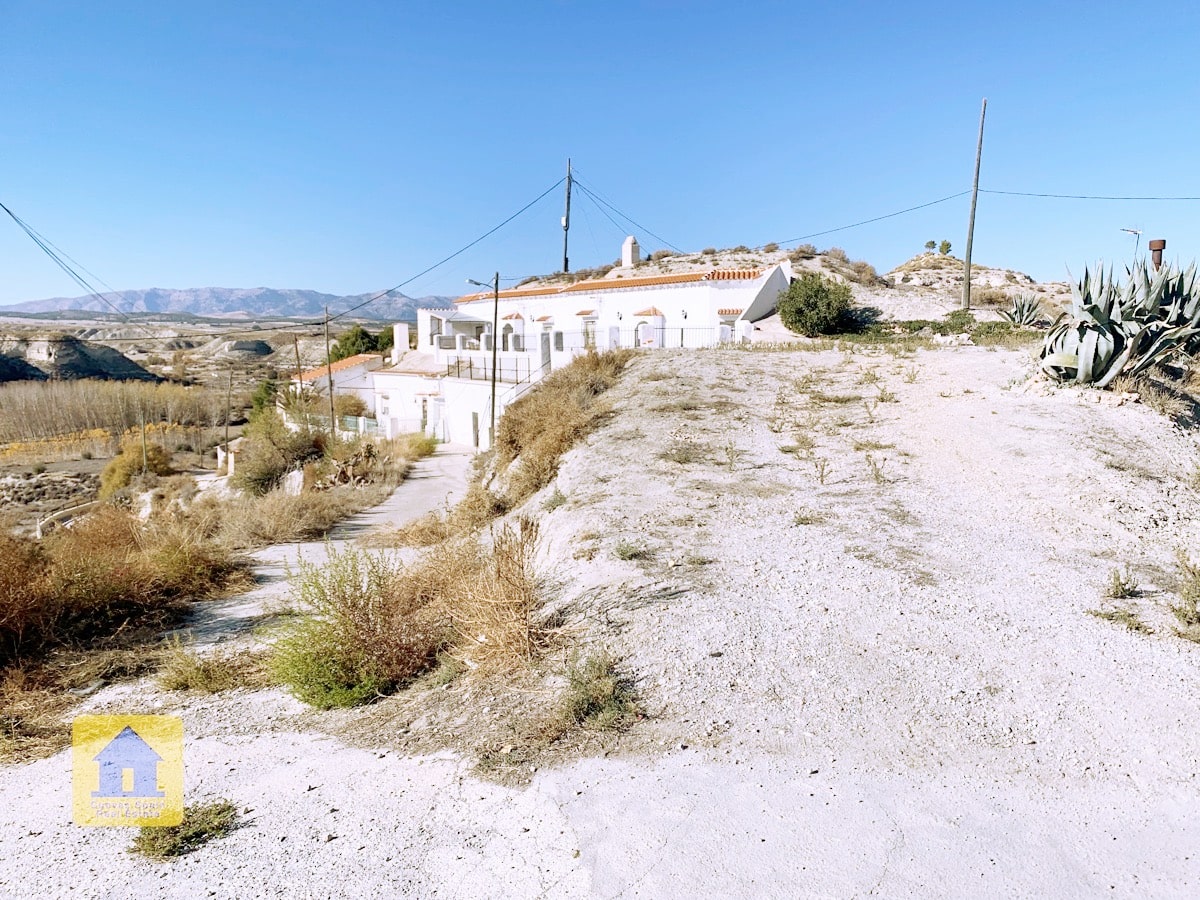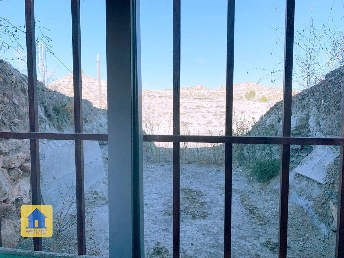 Fantastique maison troglodyte avec une vue imprenable sur les badlands de l'autre côté de la vallée ! La grotte est très grande et peut être séparée en 2 unités, chacune avec sa propre entrée, cuisine et salle de bain. Une allée privée mène au portail et à une vaste terrasse avec de larges vues ouvertes et un coin salon couvert confortable à l'extrémité. À droite en entrant dans le patio se trouve le garage avec une porte menant à la maison (Le garage est actuellement utilisé pour le stockage du bois.) Il y a un garde-manger/bodega et une buanderie. La propriété dispose également d'une pièce souterraine utilisée pour le stockage du bois, et d'une autre grotte avec 2 pièces qui était utilisée pour les animaux dans le passé et qui sert maintenant de stockage de bois, accessible depuis la route principale. Il y a suffisamment d'espace pour garer plusieurs voitures sur la propriété.