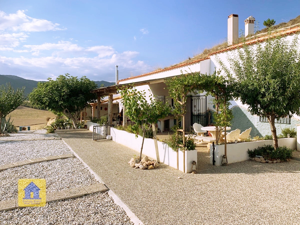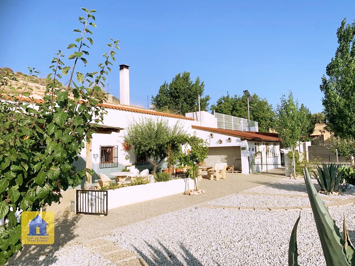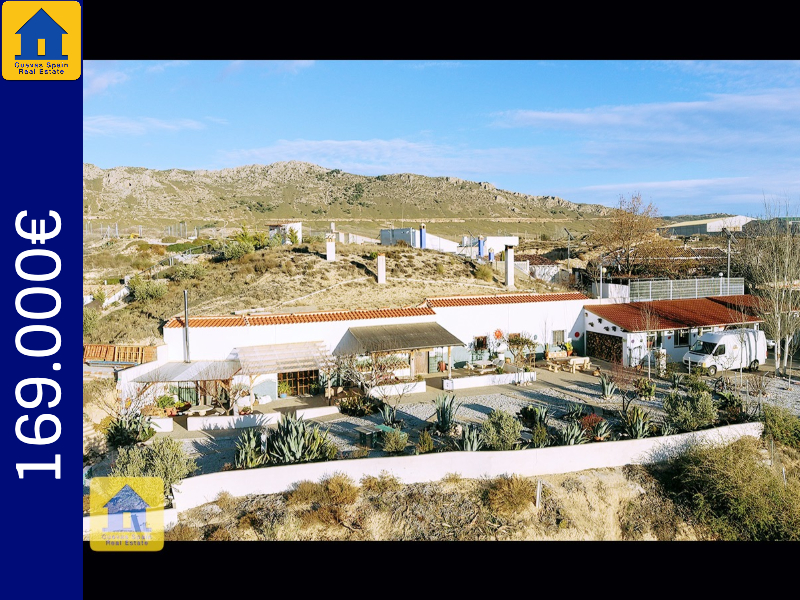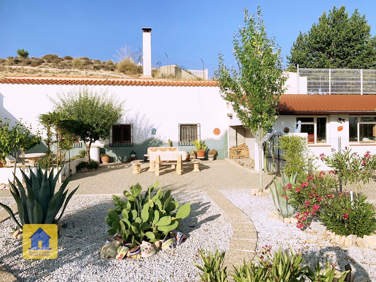 Esta magnífica propiedad se compone de una cueva principal de dos dormitorios, un piso cueva de un dormitorio, una cochera doble, dos cuevas sin reformar, así como patios ajardinados y terrazas que ofrecen amplias vistas sobre el pueblo de Huescar y el campo circundante. Toda la propiedad ha sido cuidadosamente diseñada, hábilmente construida e impecablemente mantenida por los actuales propietarios. Se ha hecho todo lo posible para crear un hogar que sea a la vez estético y práctico.