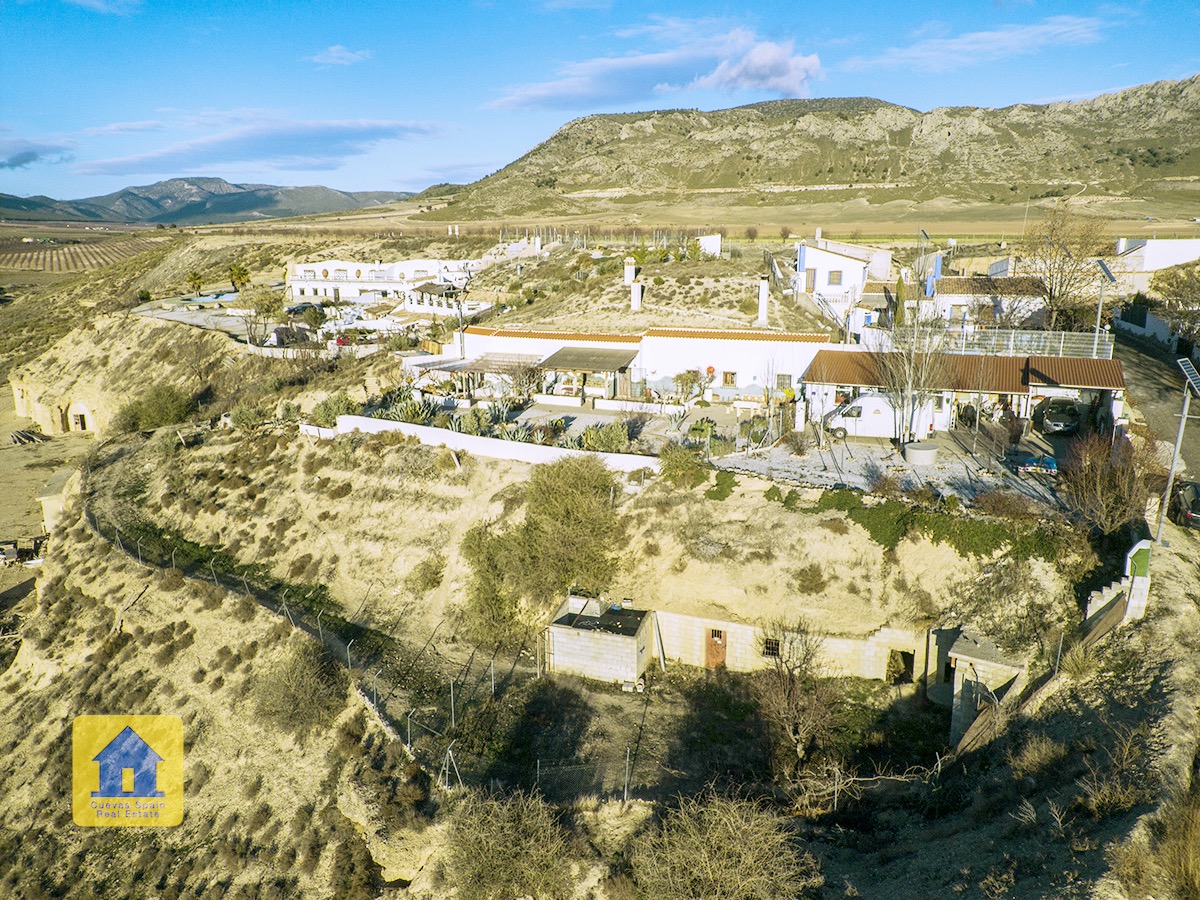 Esta propiedad está situada en un barrio de cuevas en las afueras de Huéscar, un pueblo tradicional andaluz en el Altiplano de Granada. Los barrios de cuevas son una mezcla de casas cueva renovadas y cuevas tradicionales, algunas de las cuales fueron construidas originalmente por los moros. Huéscar ofrece un buen equilibrio de vida animada y tranquila, con tiendas, restaurantes, un mercado semanal, un centro de salud de 24 horas y una hermosa piscina comunitaria que se alimenta con agua fresca de manantial. La propiedad está a 5 minutos en coche del centro de la ciudad y a 5-10 minutos a pie de los servicios básicos. Huéscar está situado cerca de varias cordilleras hermosas. La región es ideal para practicar senderismo y ciclismo de montaña. Hay lagos de color turquesa prístinos a 20-45 minutos.