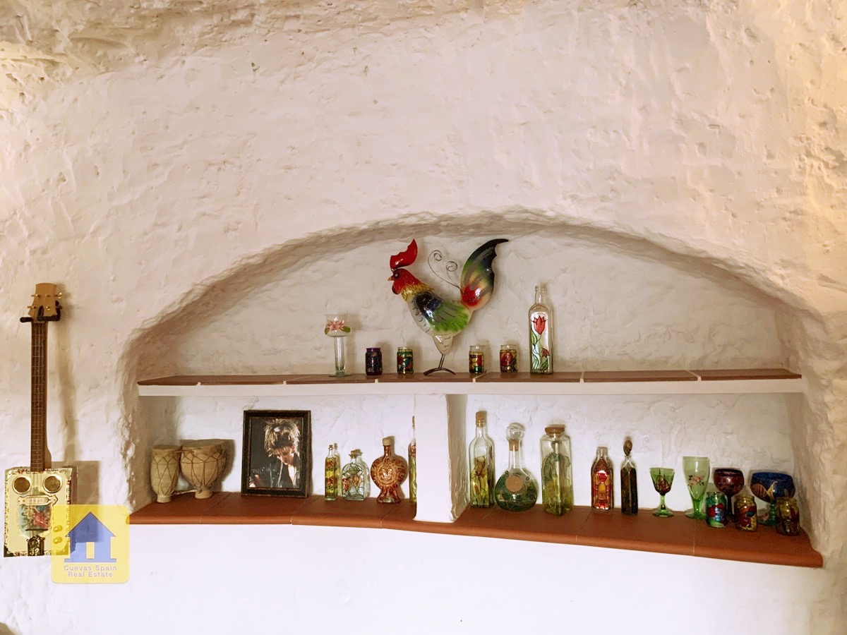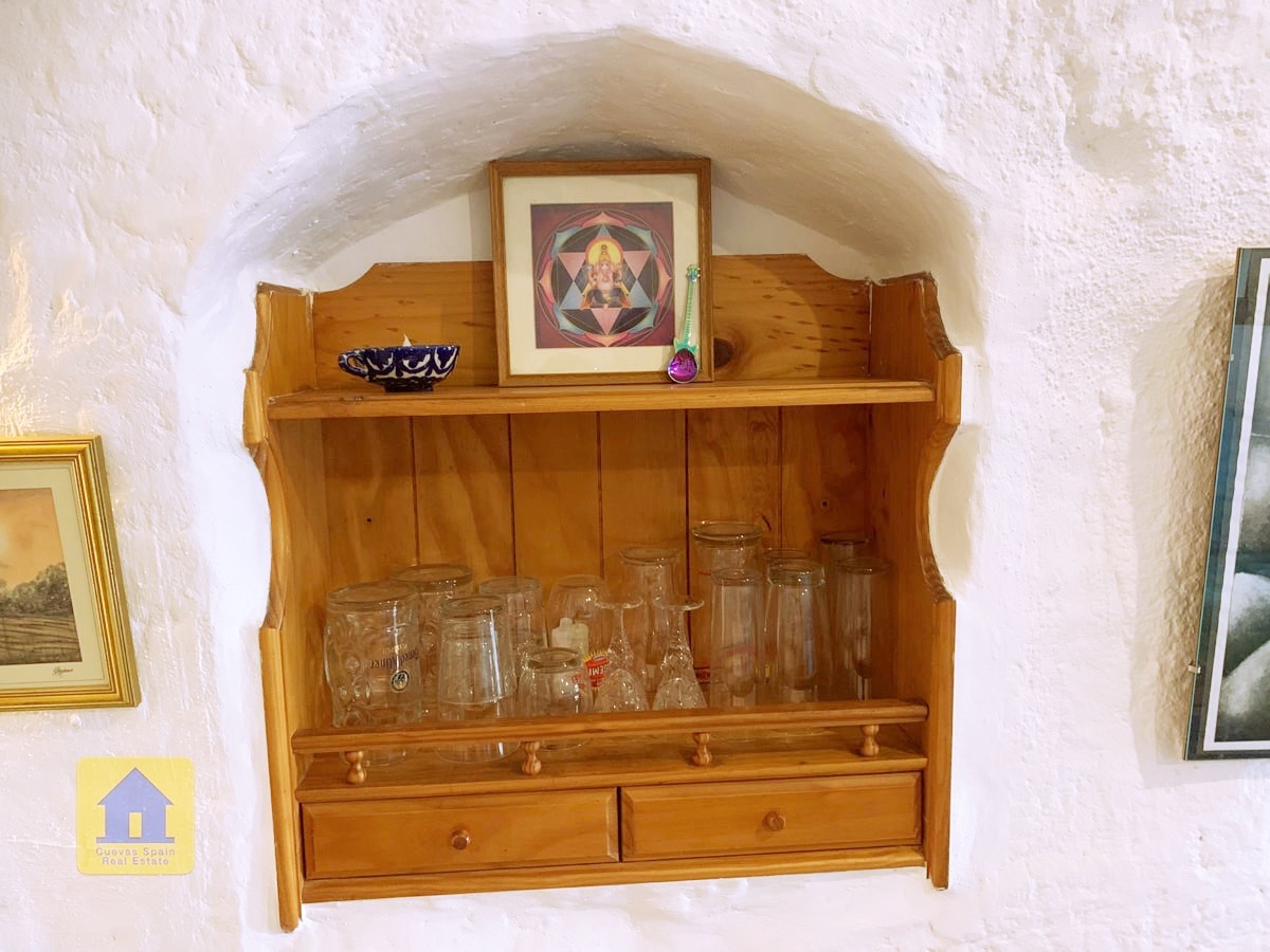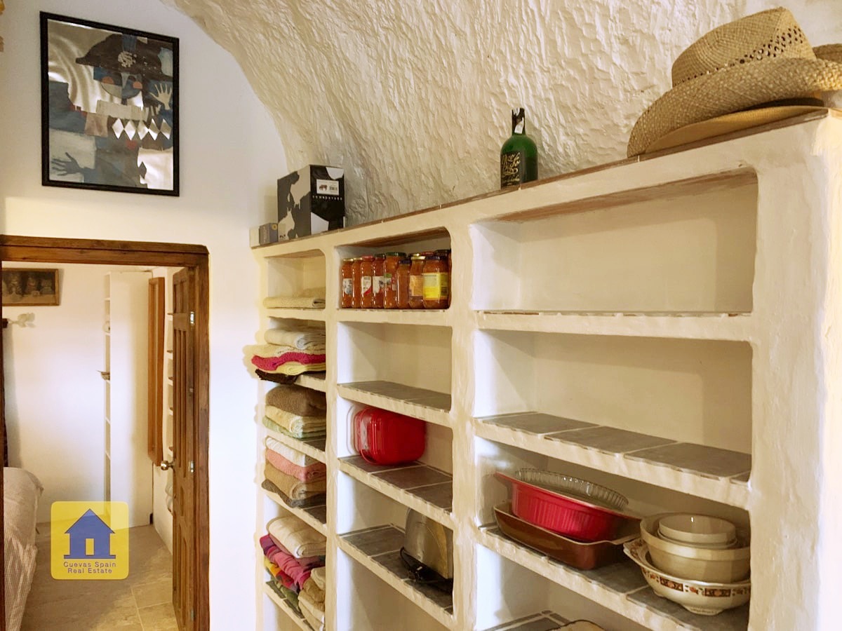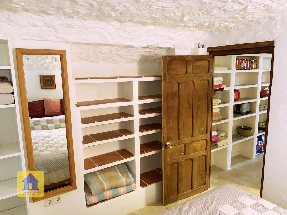 En ambas cuevas hay prácticos armarios, roperos y estanterías cuidadosamente tallados en las paredes de la cueva. La propiedad dispone de agua, electricidad e internet. Está listo para entrar a vivir.