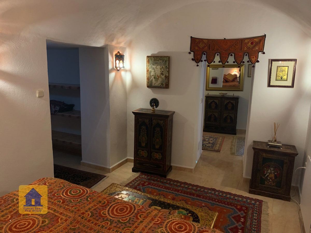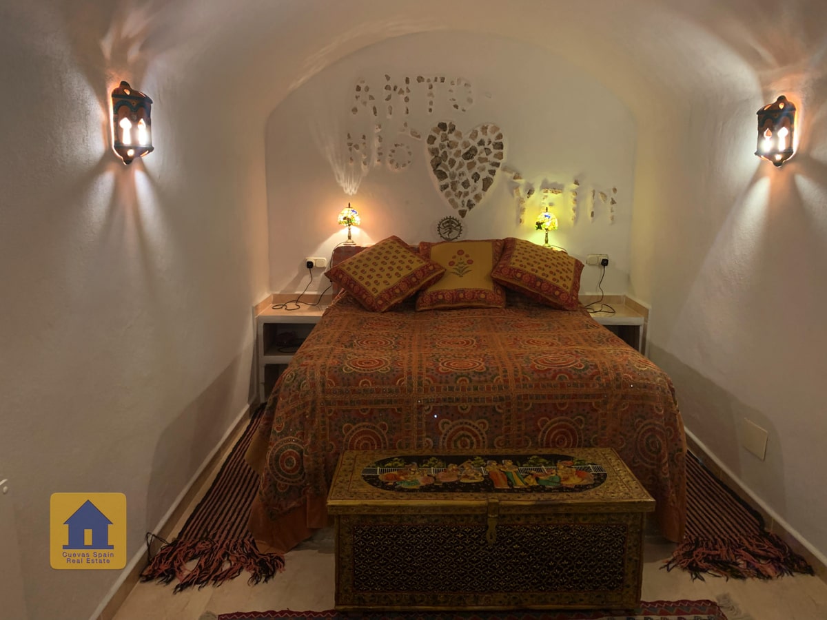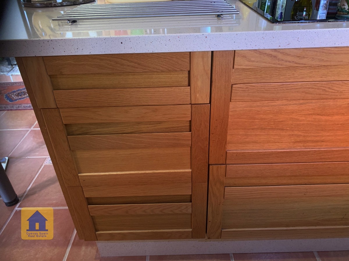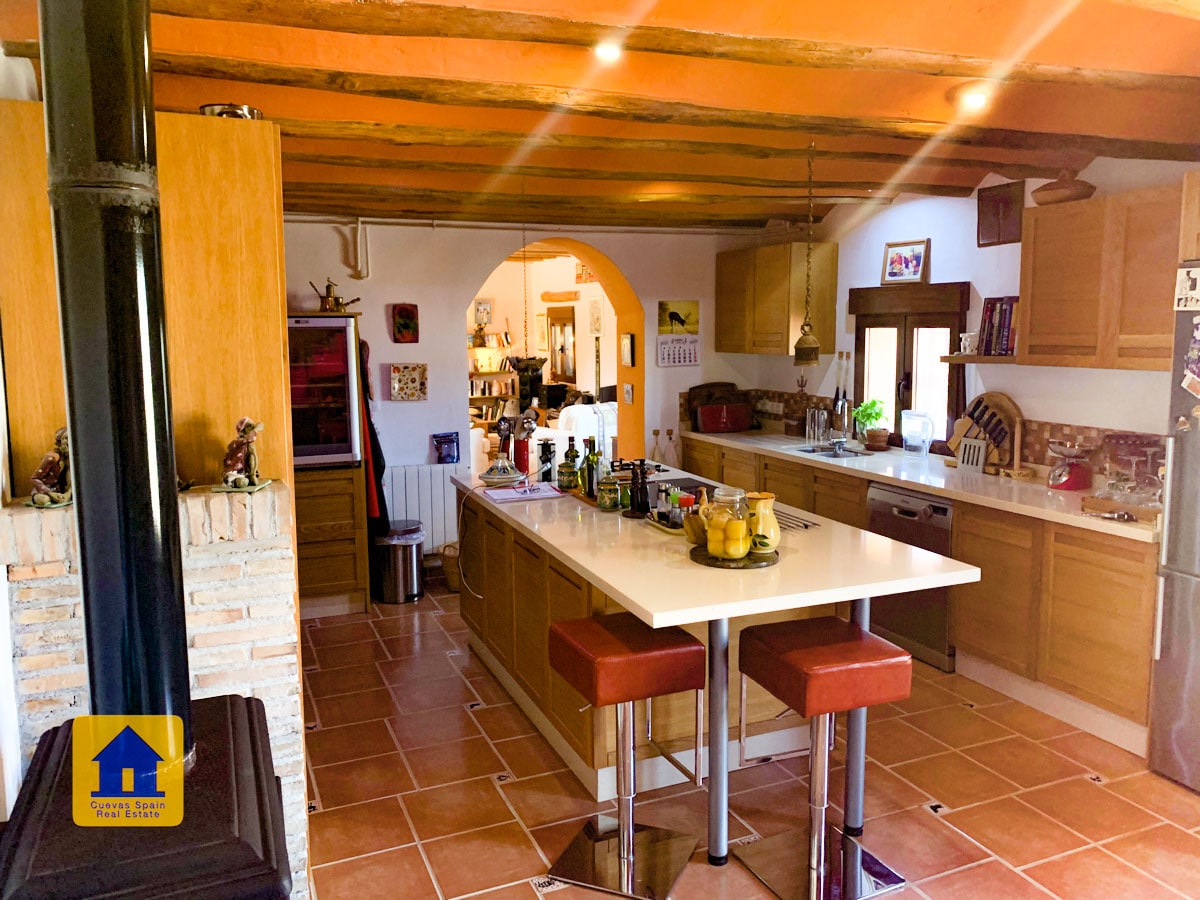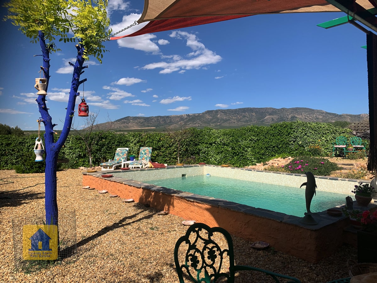 En entrant dans la maison, on arrive dans un hall d'entrée spacieux avec deux coins salon et une demi-salle de bain pour les invités. À gauche se trouve la partie de la maison en dépendance avec des poutres en bois et des plafonds en yeso. Le salon est spacieux, confortable et lumineux. Une véranda s'ouvre sur le jardin arrière par des portes coulissantes à double vitrage et comporte un bar en bois de teck personnalisé pour les réceptions. La grande cuisine moderne est équipée et finie de manière exquise. Depuis la cuisine, un couloir mène aux suites de la cave. La salle à manger intérieure s'ouvre sur un patio extérieur dans le jardin arrière. Un poêle à bois est placé entre la cuisine et la salle à manger, de sorte que son tuyau chauffe la chambre principale située au-dessus. La buanderie est entièrement équipée et comporte des armoires murales. Un escalier mène à la chambre principale avec sa superbe salle de bains attenante qui comprend une vaste douche carrelée et une baignoire brillamment positionnée pour donner sur la campagne. La porte de la chambre donne accès à une petite terrasse sur le toit, avec un coin salon ombragé et un chemin menant au cercle de battage et au banc d'observation pour admirer les couchers de soleil sur l'Altiplano. Au-delà de l'aire de battage se trouve l'oliveraie.