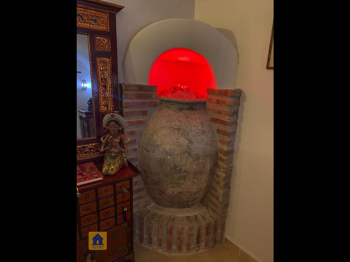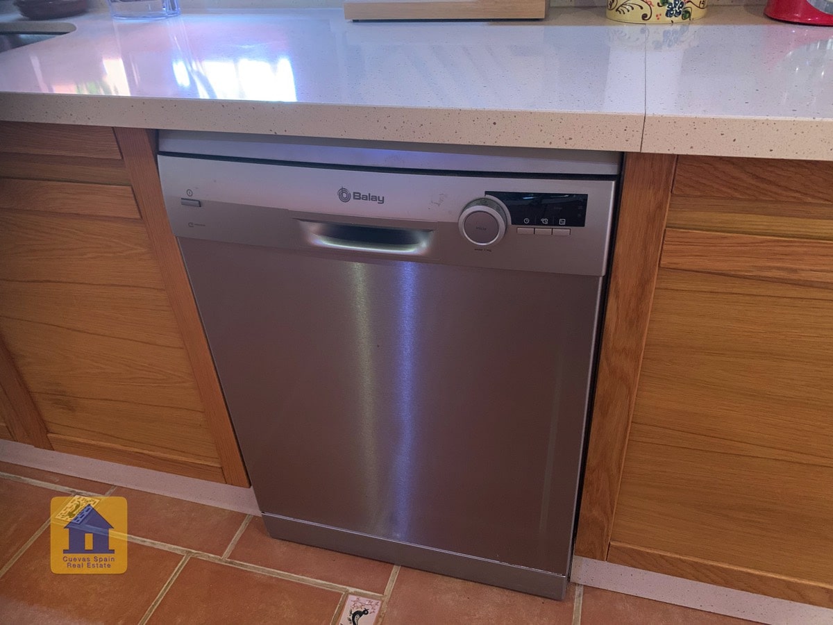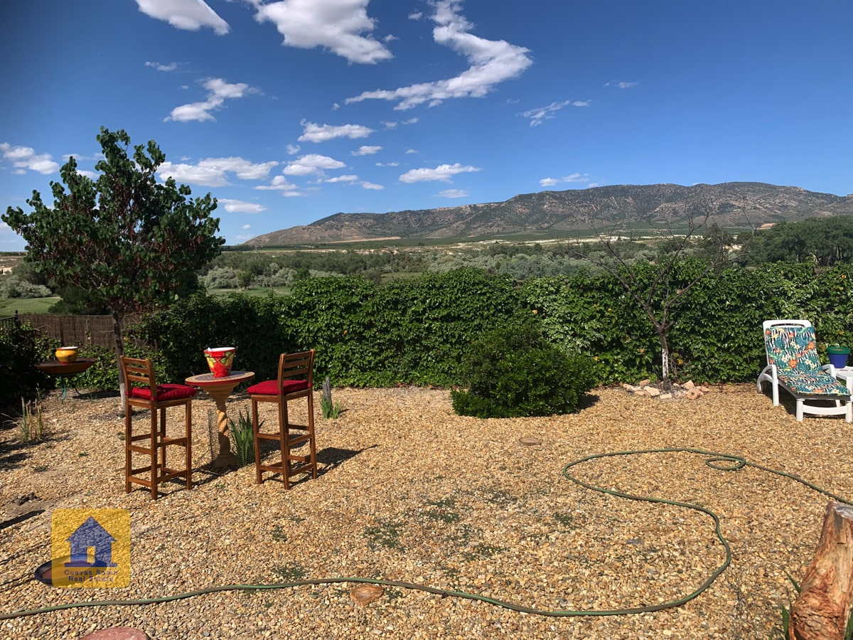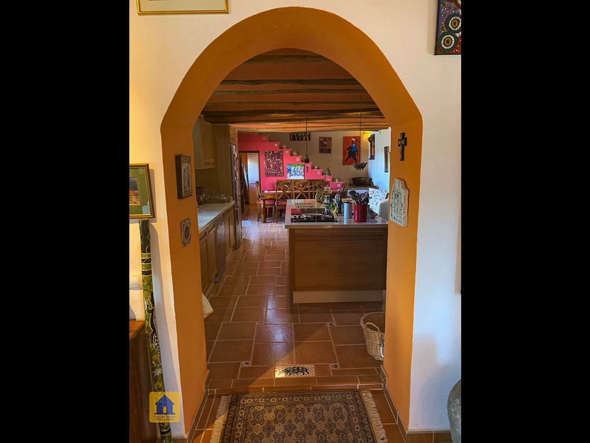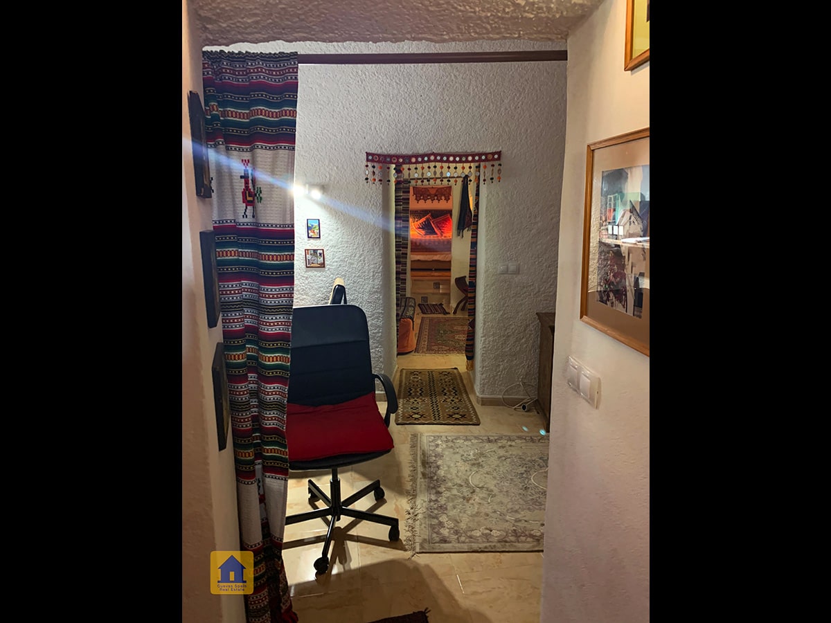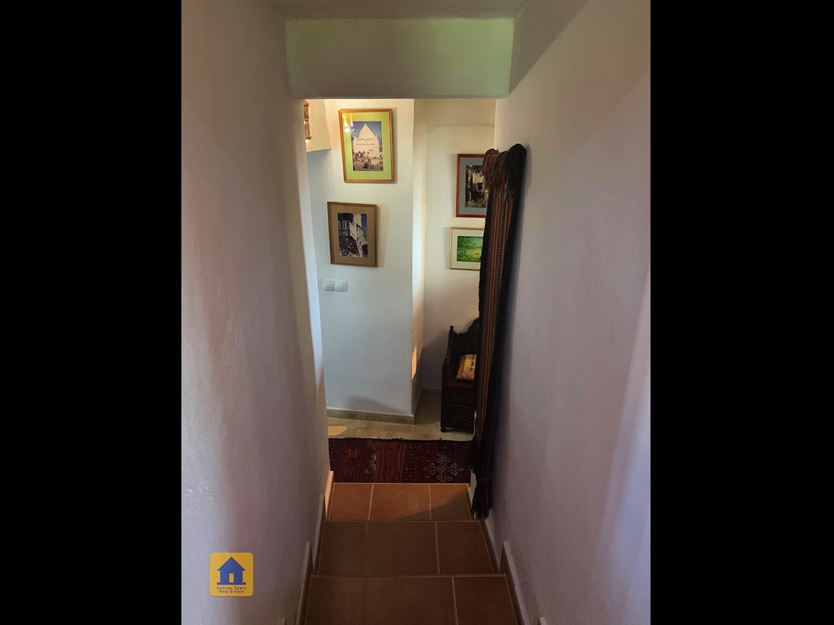 En entrant dans la maison, on arrive dans un hall d'entrée spacieux avec deux coins salon et une demi-salle de bain pour les invités. À gauche se trouve la partie de la maison en dépendance avec des poutres en bois et des plafonds en yeso. Le salon est spacieux, confortable et lumineux. Une véranda s'ouvre sur le jardin arrière par des portes coulissantes à double vitrage et comporte un bar en bois de teck personnalisé pour les réceptions. La grande cuisine moderne est équipée et finie de manière exquise. Depuis la cuisine, un couloir mène aux suites de la cave. La salle à manger intérieure s'ouvre sur un patio extérieur dans le jardin arrière. Un poêle à bois est placé entre la cuisine et la salle à manger, de sorte que son tuyau chauffe la chambre principale située au-dessus. La buanderie est entièrement équipée et comporte des armoires murales. Un escalier mène à la chambre principale avec sa superbe salle de bains attenante qui comprend une vaste douche carrelée et une baignoire brillamment positionnée pour donner sur la campagne. La porte de la chambre donne accès à une petite terrasse sur le toit, avec un coin salon ombragé et un chemin menant au cercle de battage et au banc d'observation pour admirer les couchers de soleil sur l'Altiplano. Au-delà de l'aire de battage se trouve l'oliveraie.