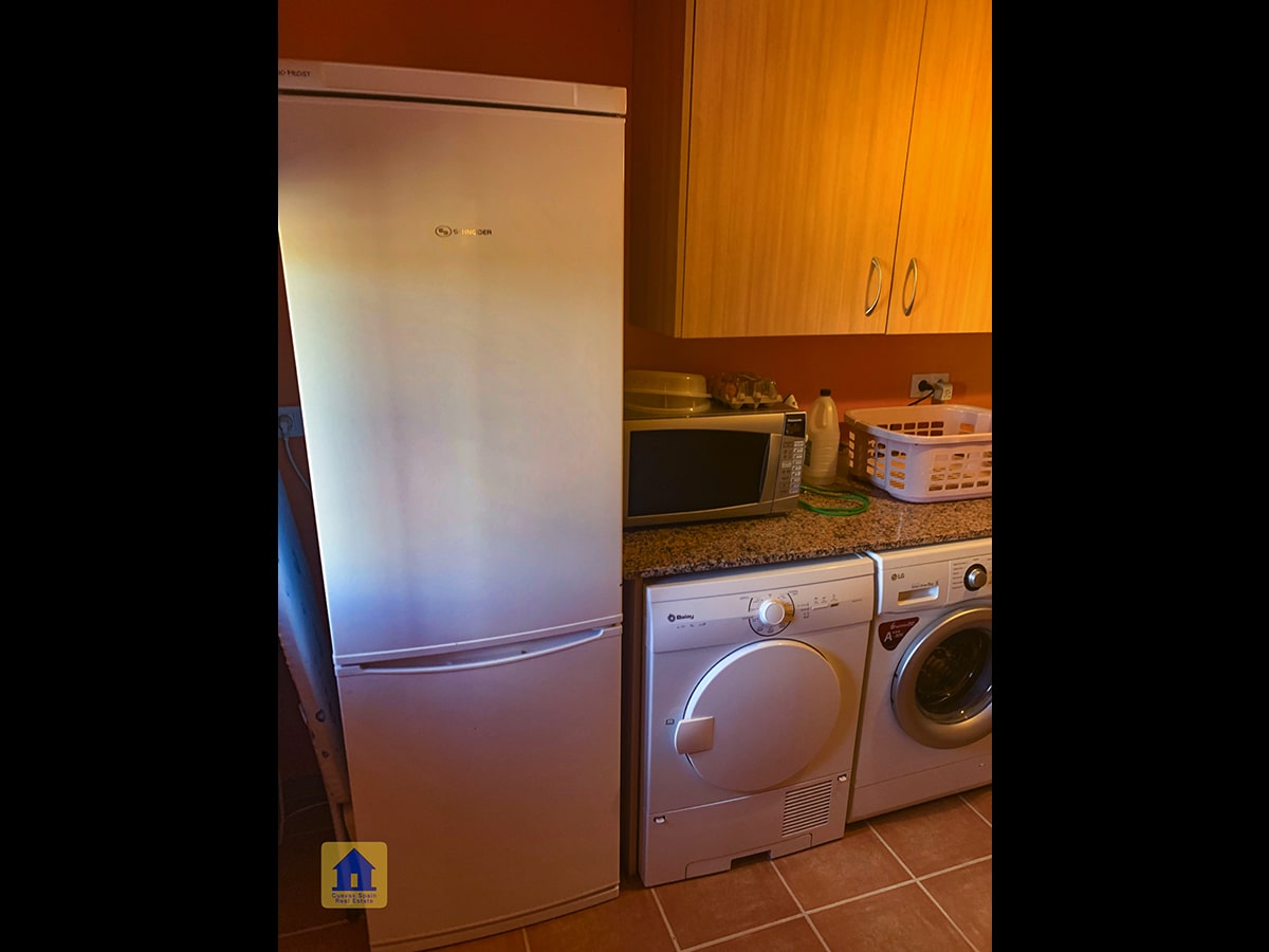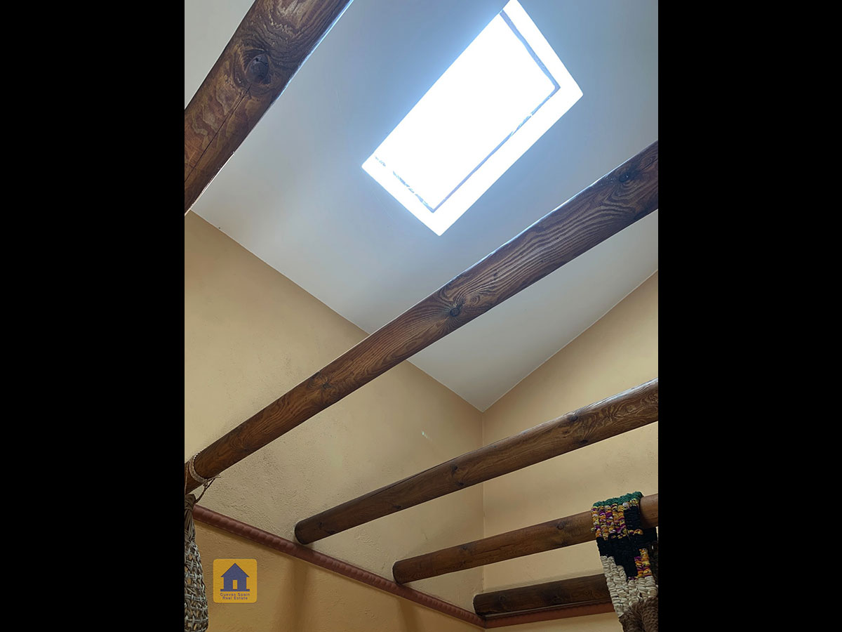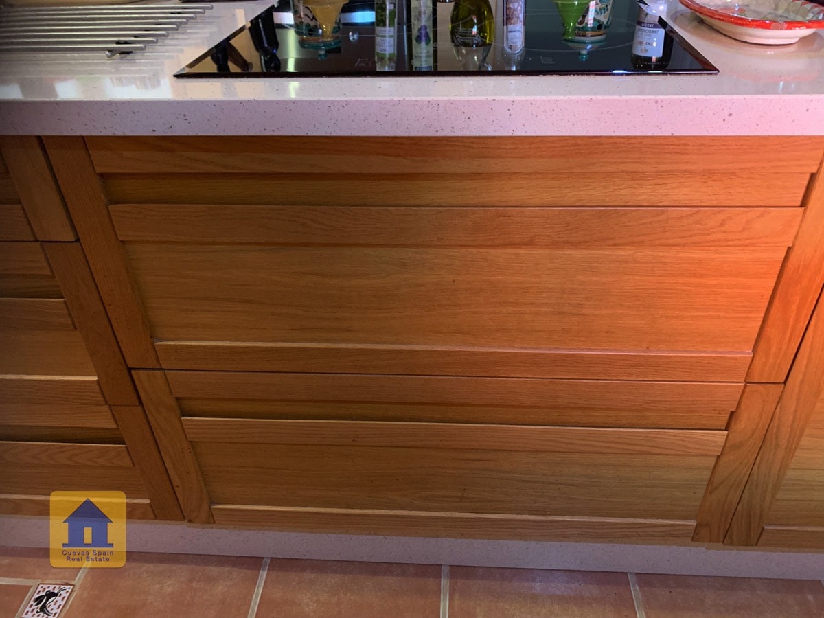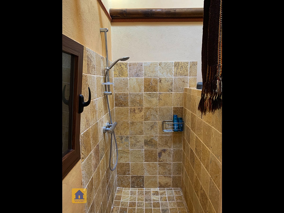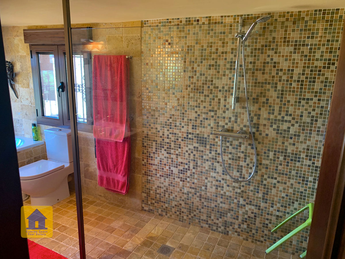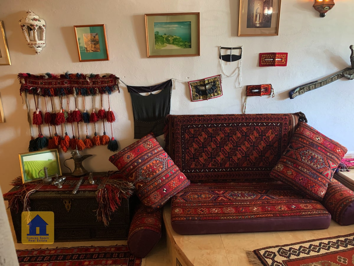 En entrant dans la maison, on arrive dans un hall d'entrée spacieux avec deux coins salon et une demi-salle de bain pour les invités. À gauche se trouve la partie de la maison en dépendance avec des poutres en bois et des plafonds en yeso. Le salon est spacieux, confortable et lumineux. Une véranda s'ouvre sur le jardin arrière par des portes coulissantes à double vitrage et comporte un bar en bois de teck personnalisé pour les réceptions. La grande cuisine moderne est équipée et finie de manière exquise. Depuis la cuisine, un couloir mène aux suites de la cave. La salle à manger intérieure s'ouvre sur un patio extérieur dans le jardin arrière. Un poêle à bois est placé entre la cuisine et la salle à manger, de sorte que son tuyau chauffe la chambre principale située au-dessus. La buanderie est entièrement équipée et comporte des armoires murales. Un escalier mène à la chambre principale avec sa superbe salle de bains attenante qui comprend une vaste douche carrelée et une baignoire brillamment positionnée pour donner sur la campagne. La porte de la chambre donne accès à une petite terrasse sur le toit, avec un coin salon ombragé et un chemin menant au cercle de battage et au banc d'observation pour admirer les couchers de soleil sur l'Altiplano. Au-delà de l'aire de battage se trouve l'oliveraie.