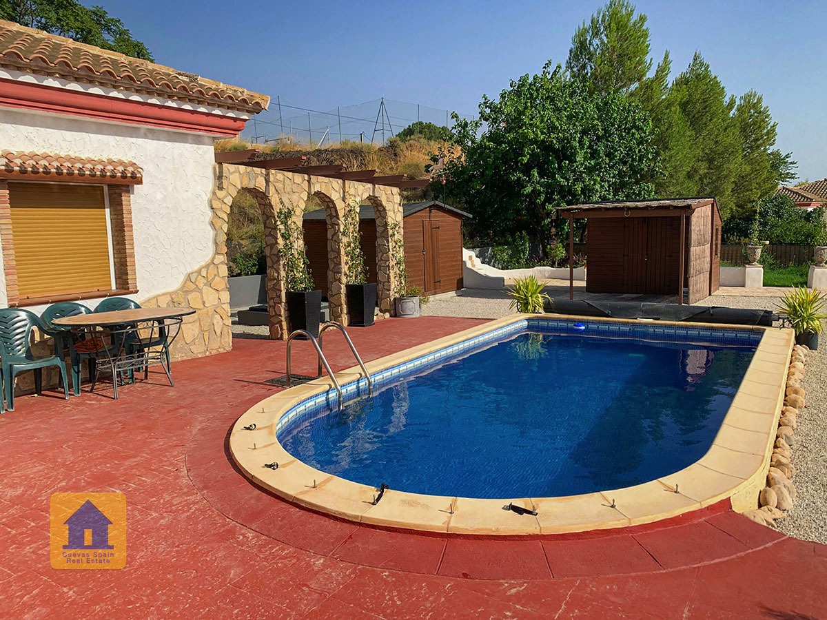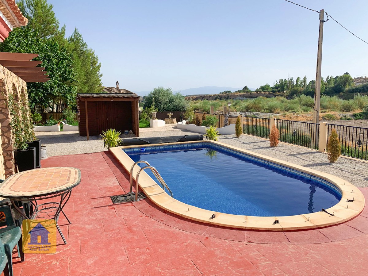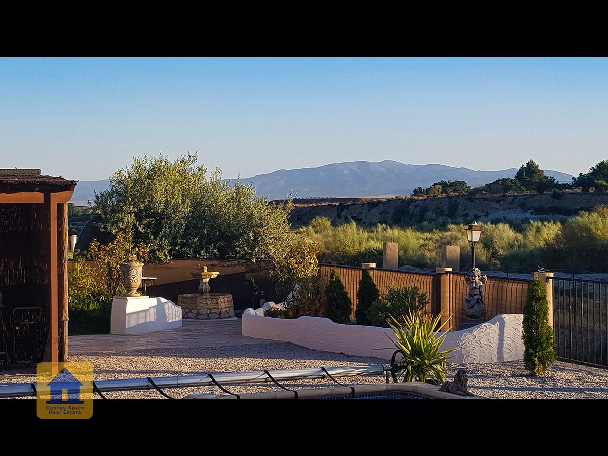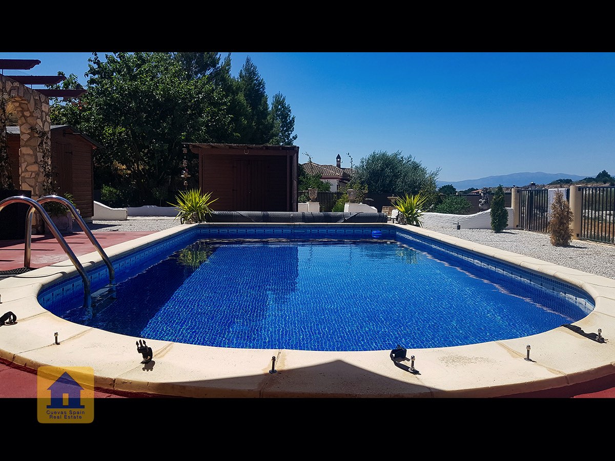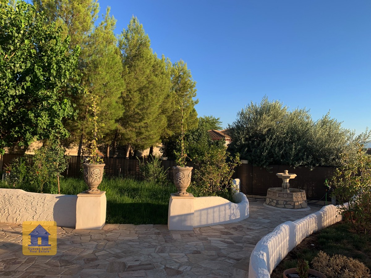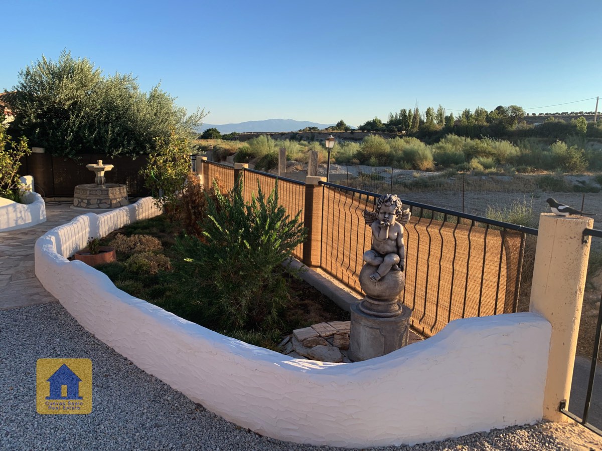 Il y a une superbe piscine derrière les portes françaises, cachée de l'entrée et entourée d'un patio ensoleillé. Autour de l'arrière et du côté de la propriété se trouve un beau jardin luxuriant avec des arbres fruitiers, irrigué. À côté du jardin se trouve un coin salon relaxant pavé de pierres avec des rosiers à l'arrière. Les meubles sont inclus dans la vente. Il y a 2 grands hangars de stockage. Une vue magnifique sur les montagnes de la Sierra Nevada peut être vue en regardant vers le sud, et en face de la propriété se trouve une terre cultivée, ce qui donne une perspective paisible.