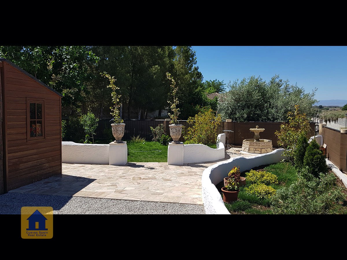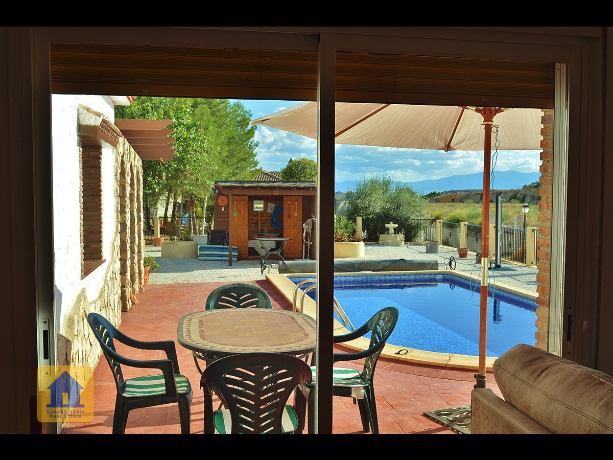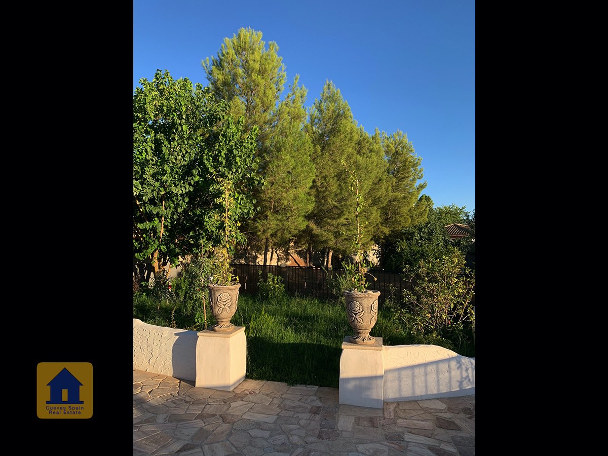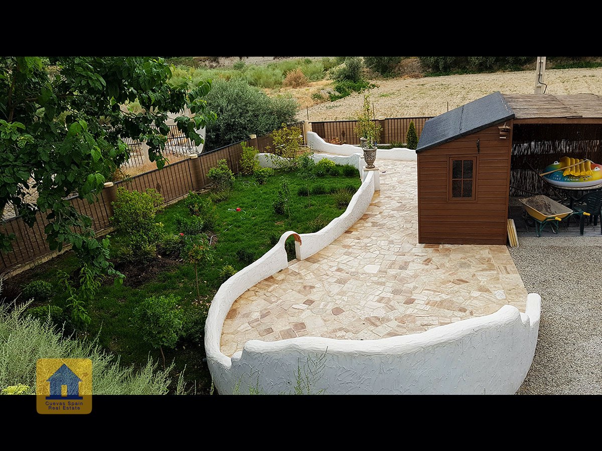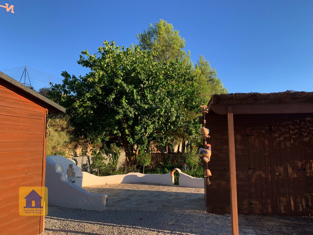 Il y a une superbe piscine derrière les portes françaises, cachée de l'entrée et entourée d'un patio ensoleillé. Autour de l'arrière et du côté de la propriété se trouve un beau jardin luxuriant avec des arbres fruitiers, irrigué. À côté du jardin se trouve un coin salon relaxant pavé de pierres avec des rosiers à l'arrière. Les meubles sont inclus dans la vente. Il y a 2 grands hangars de stockage. Une vue magnifique sur les montagnes de la Sierra Nevada peut être vue en regardant vers le sud, et en face de la propriété se trouve une terre cultivée, ce qui donne une perspective paisible.