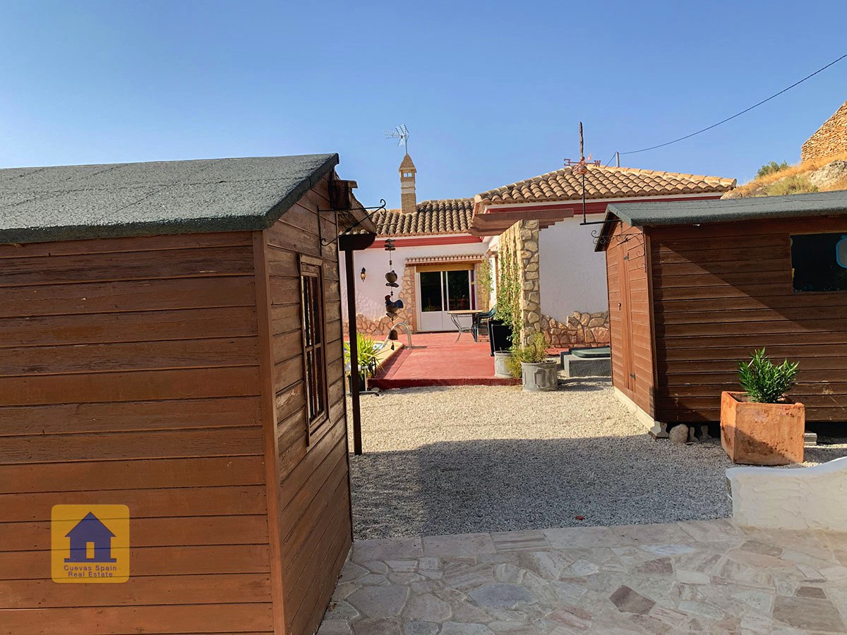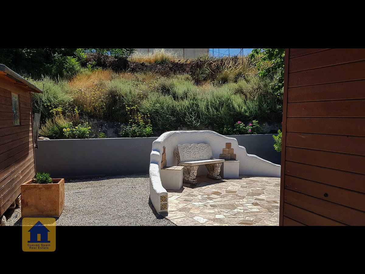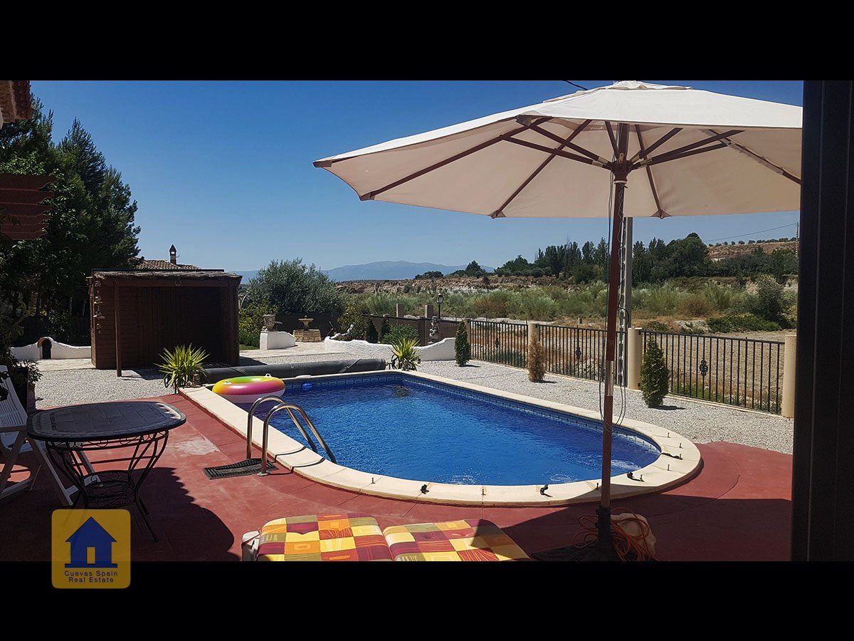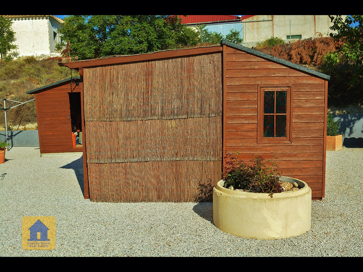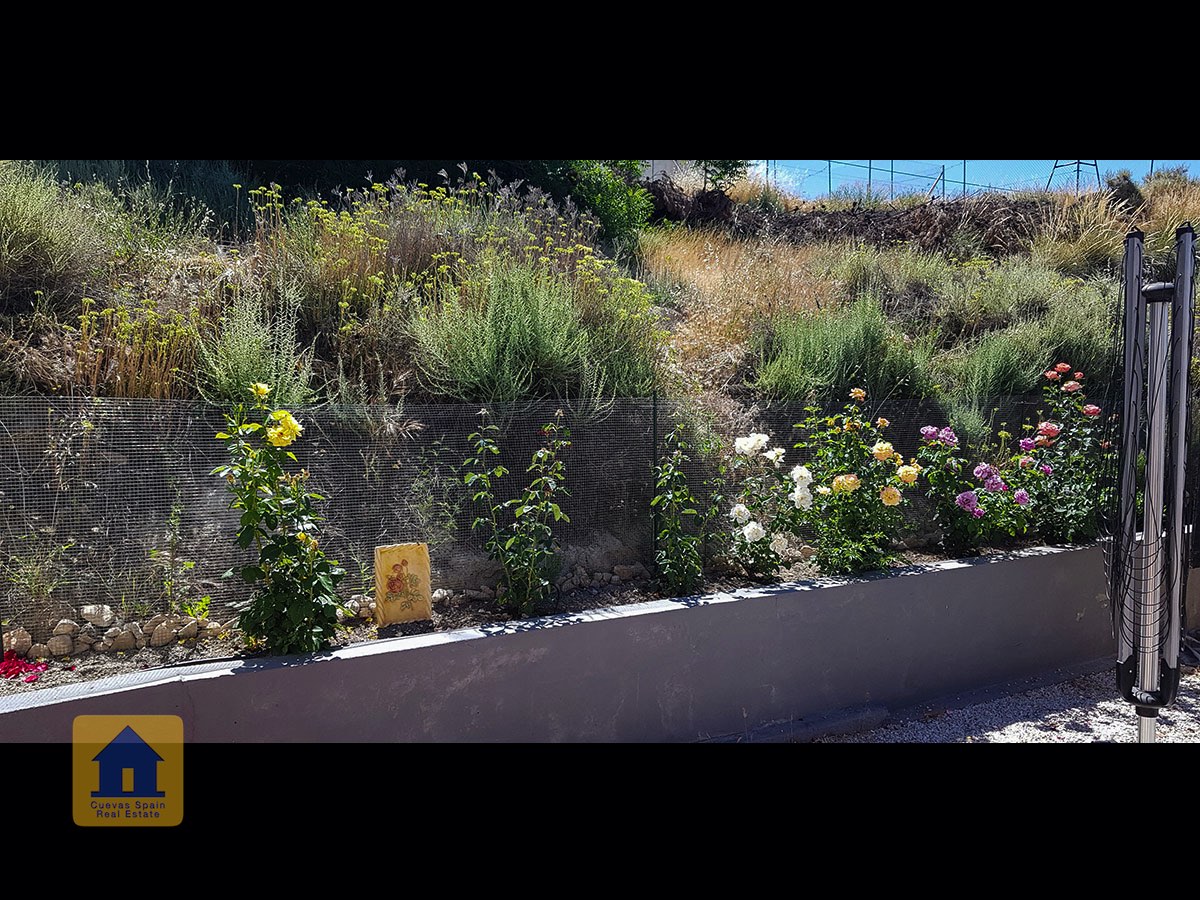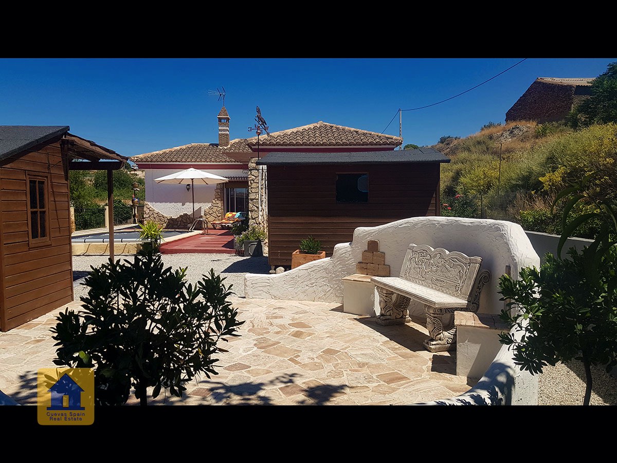 Il y a une superbe piscine derrière les portes françaises, cachée de l'entrée et entourée d'un patio ensoleillé. Autour de l'arrière et du côté de la propriété se trouve un beau jardin luxuriant avec des arbres fruitiers, irrigué. À côté du jardin se trouve un coin salon relaxant pavé de pierres avec des rosiers à l'arrière. Les meubles sont inclus dans la vente. Il y a 2 grands hangars de stockage. Une vue magnifique sur les montagnes de la Sierra Nevada peut être vue en regardant vers le sud, et en face de la propriété se trouve une terre cultivée, ce qui donne une perspective paisible.