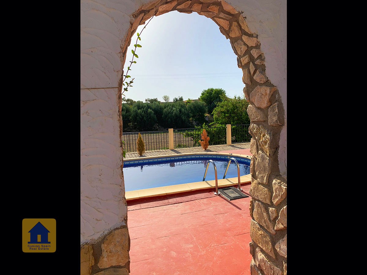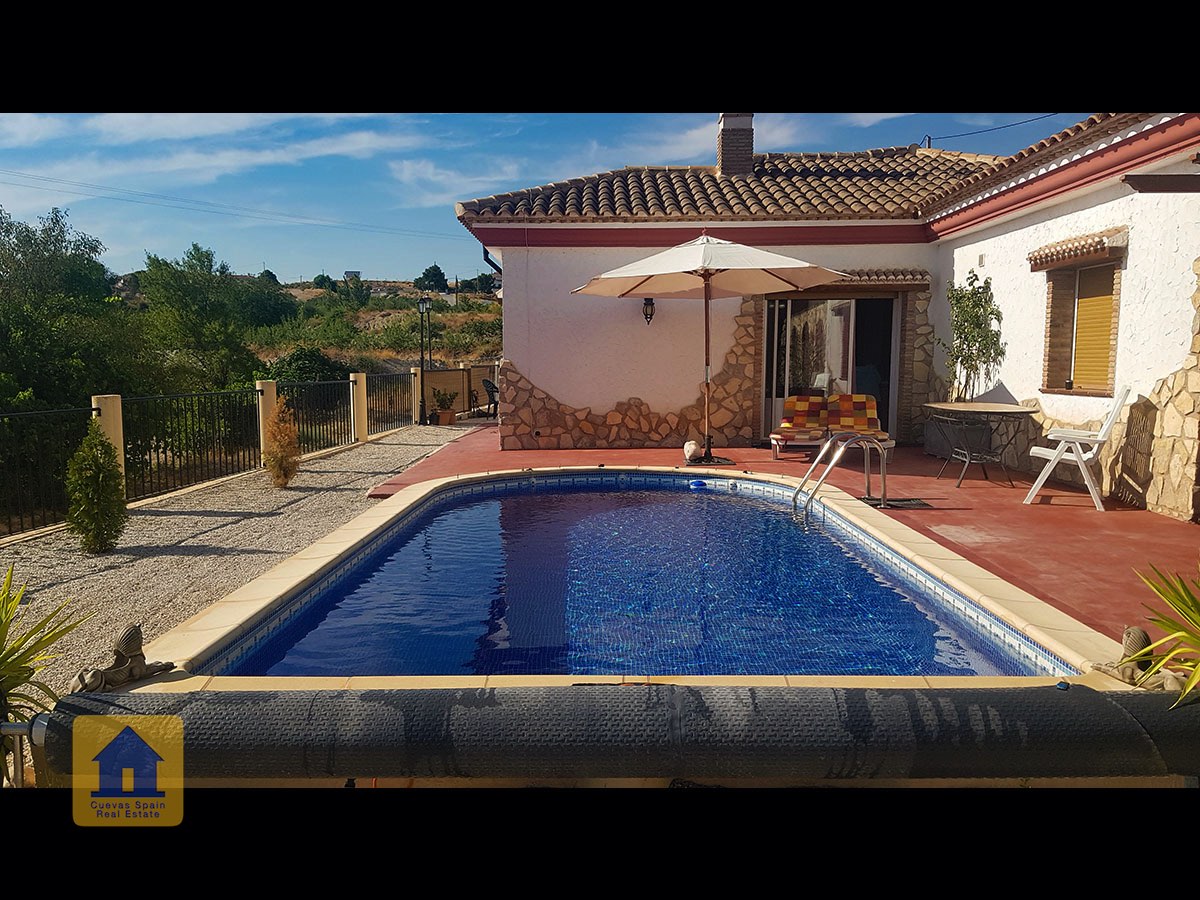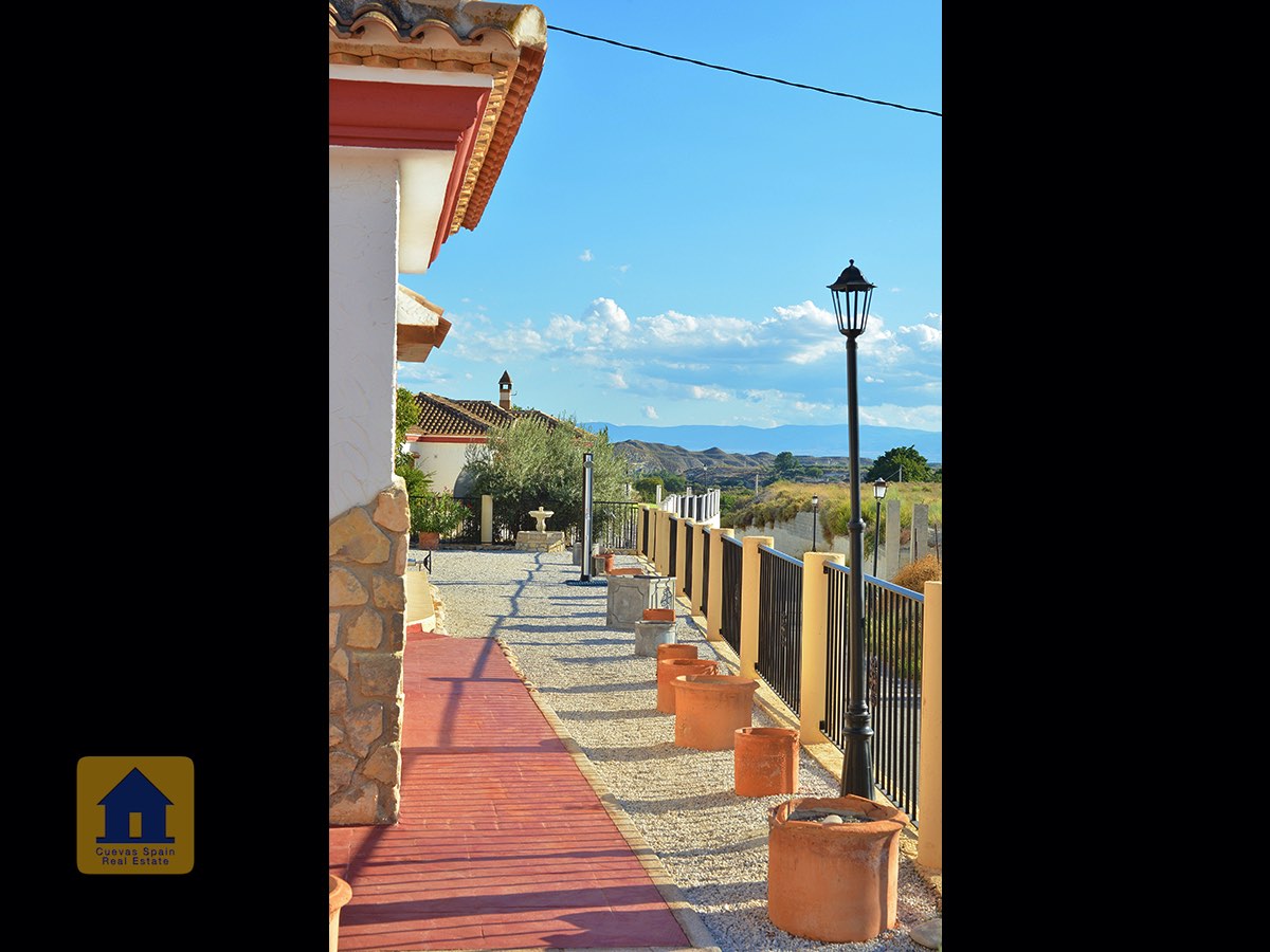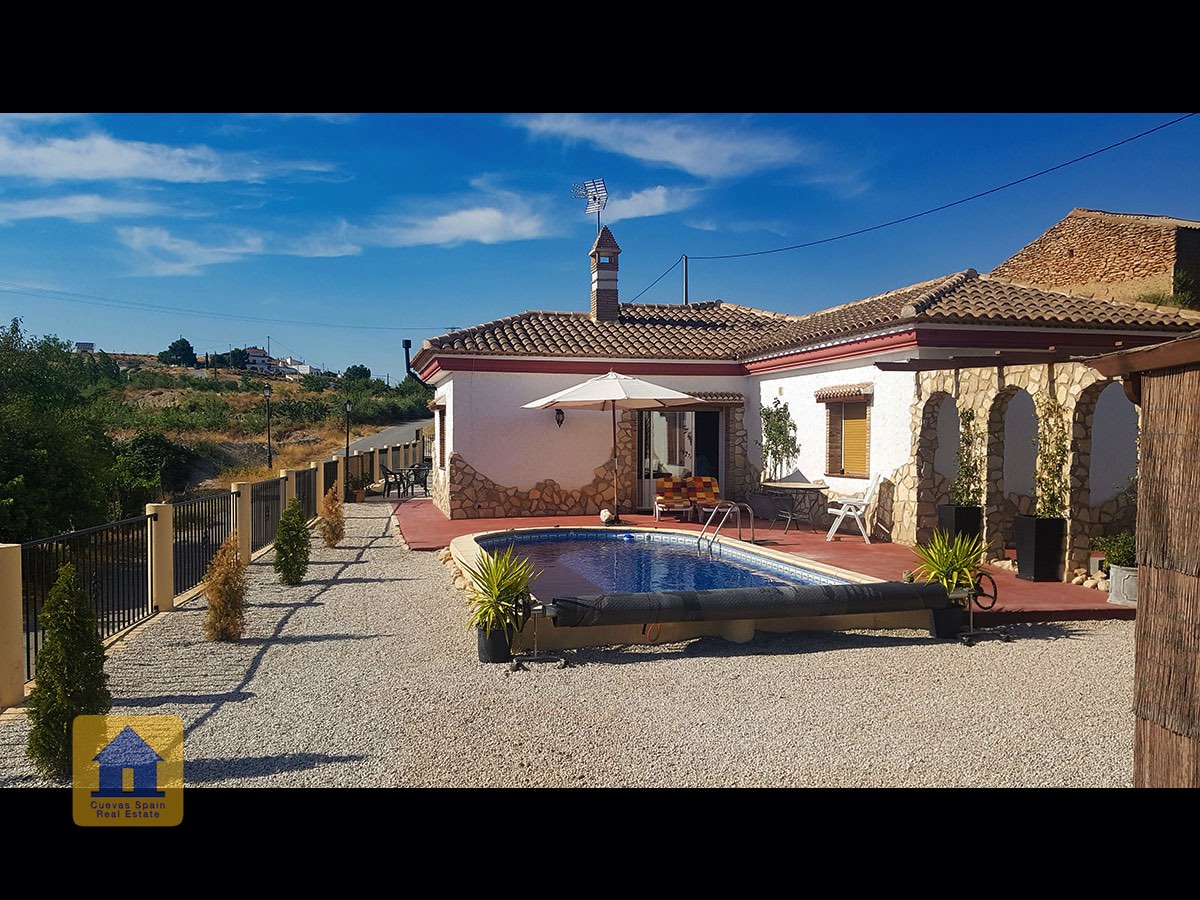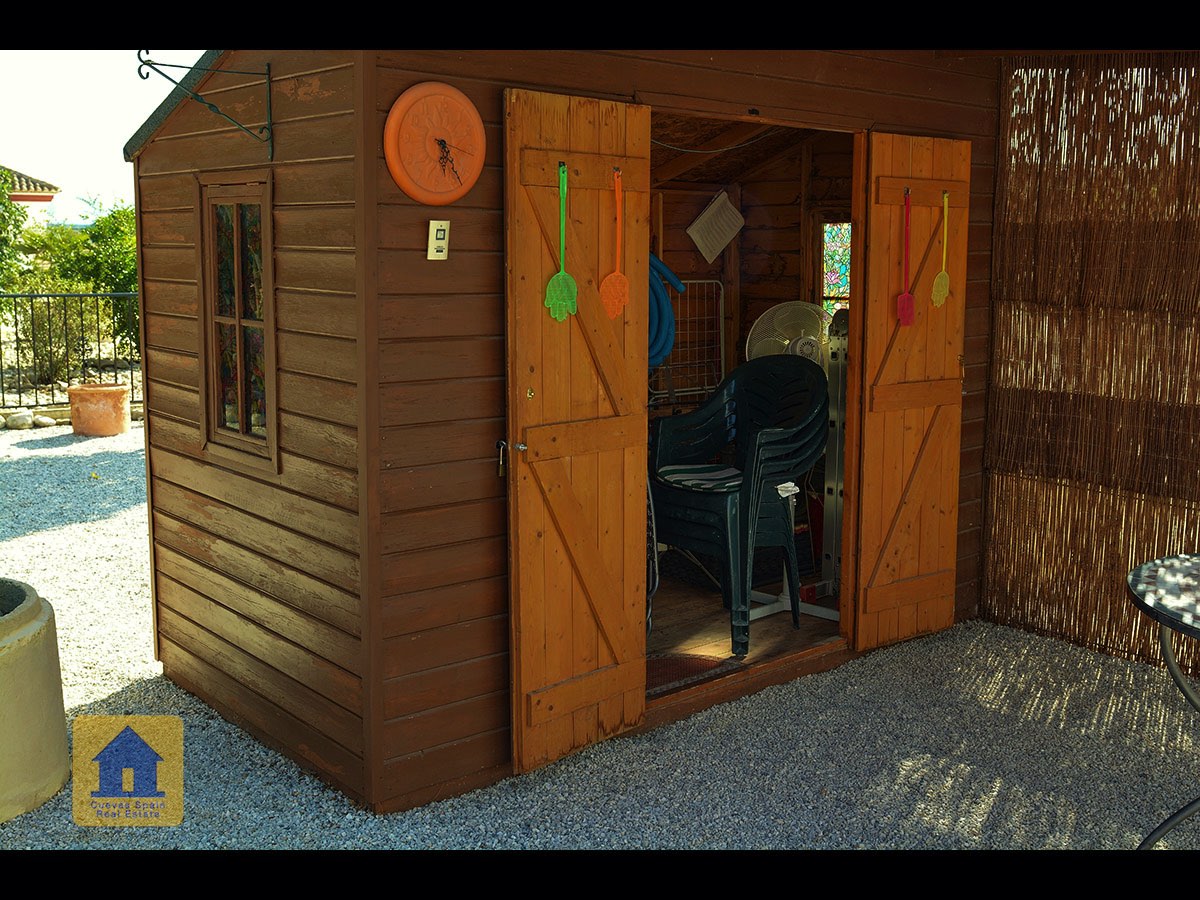 Il y a une superbe piscine derrière les portes françaises, cachée de l'entrée et entourée d'un patio ensoleillé. Autour de l'arrière et du côté de la propriété se trouve un beau jardin luxuriant avec des arbres fruitiers, irrigué. À côté du jardin se trouve un coin salon relaxant pavé de pierres avec des rosiers à l'arrière. Les meubles sont inclus dans la vente. Il y a 2 grands hangars de stockage. Une vue magnifique sur les montagnes de la Sierra Nevada peut être vue en regardant vers le sud, et en face de la propriété se trouve une terre cultivée, ce qui donne une perspective paisible.