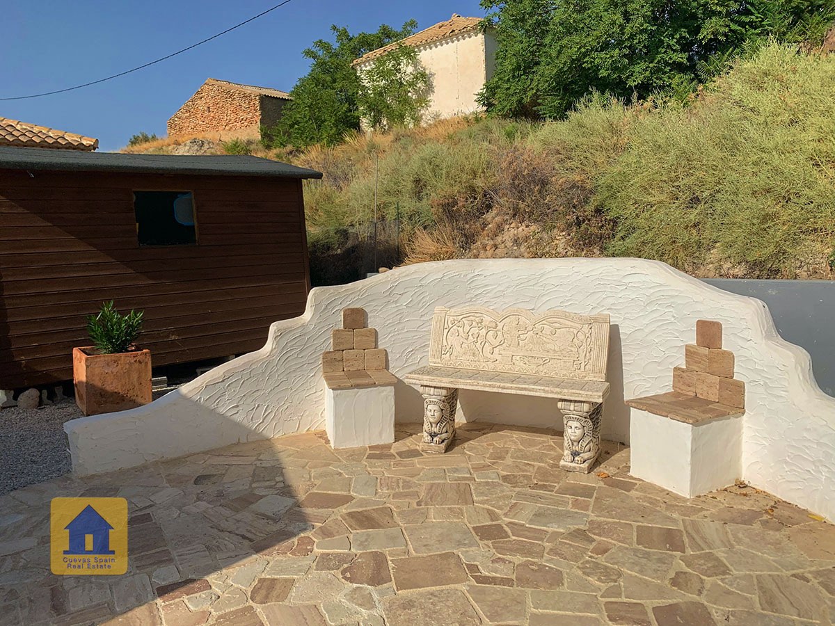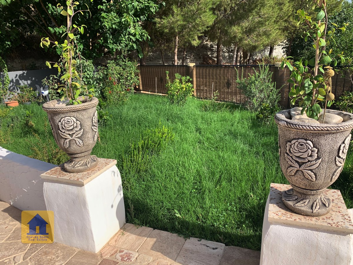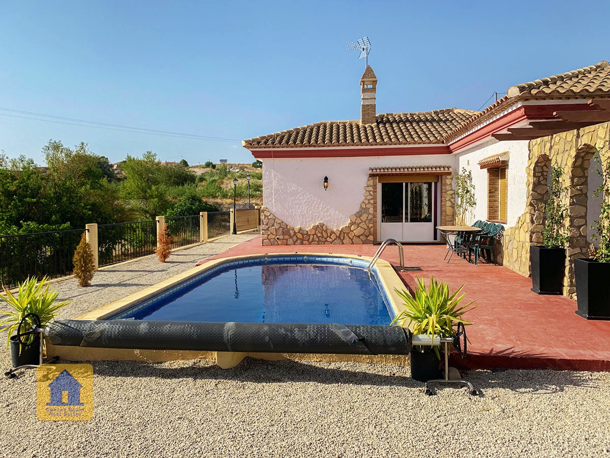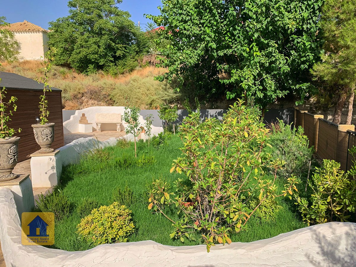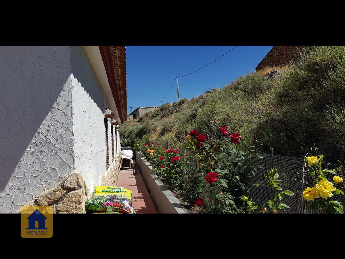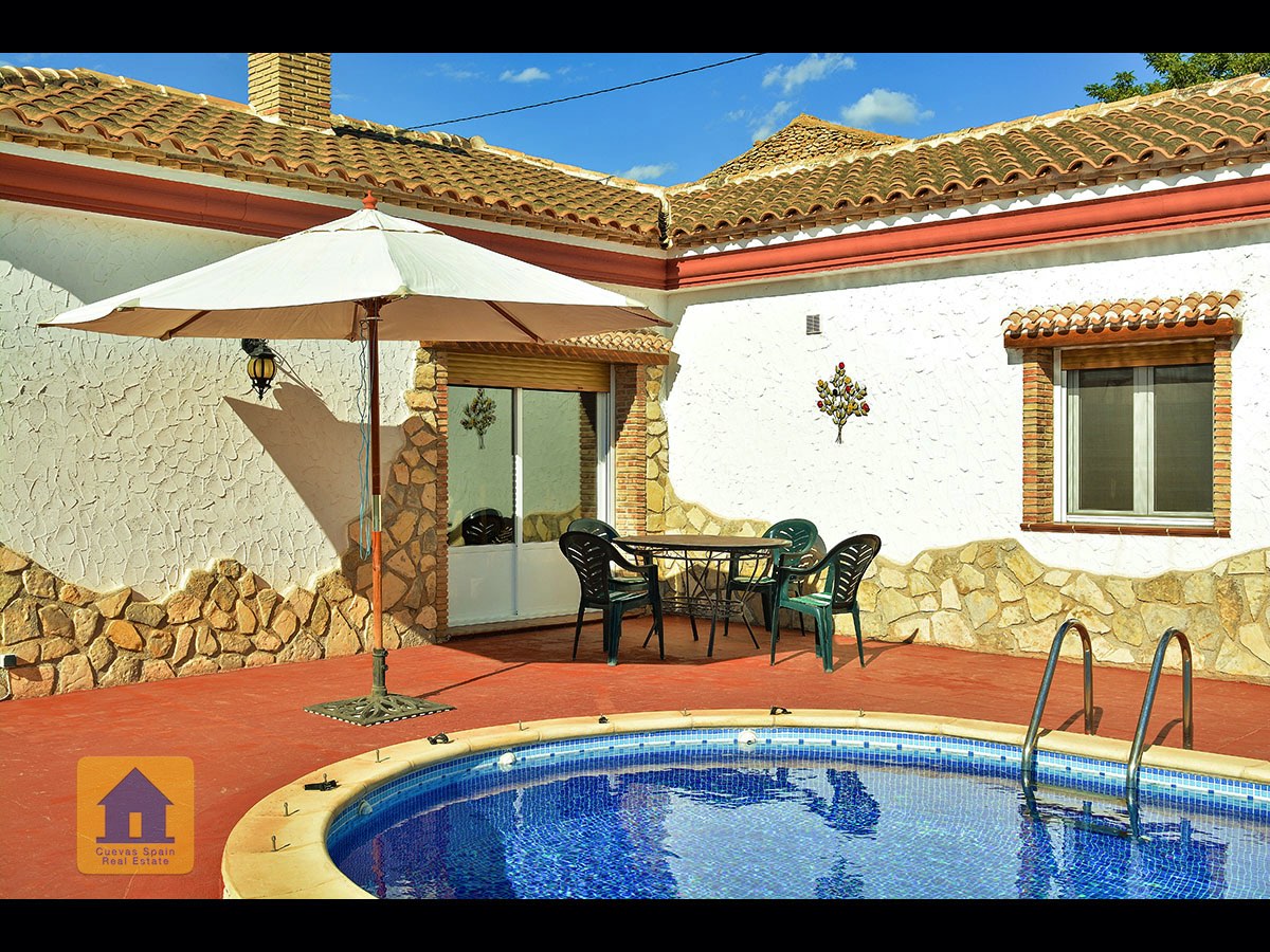 Il y a une superbe piscine derrière les portes françaises, cachée de l'entrée et entourée d'un patio ensoleillé. Autour de l'arrière et du côté de la propriété se trouve un beau jardin luxuriant avec des arbres fruitiers, irrigué. À côté du jardin se trouve un coin salon relaxant pavé de pierres avec des rosiers à l'arrière. Les meubles sont inclus dans la vente. Il y a 2 grands hangars de stockage. Une vue magnifique sur les montagnes de la Sierra Nevada peut être vue en regardant vers le sud, et en face de la propriété se trouve une terre cultivée, ce qui donne une perspective paisible.