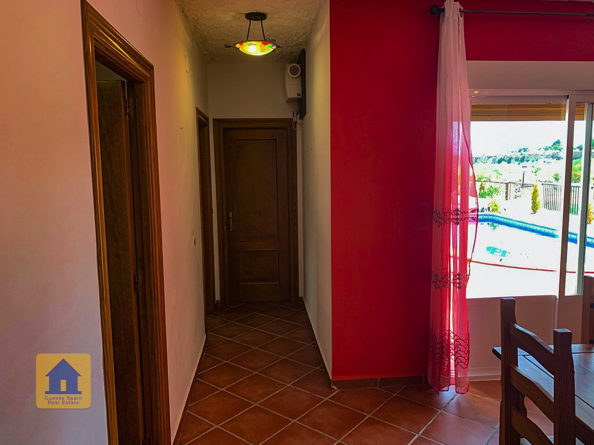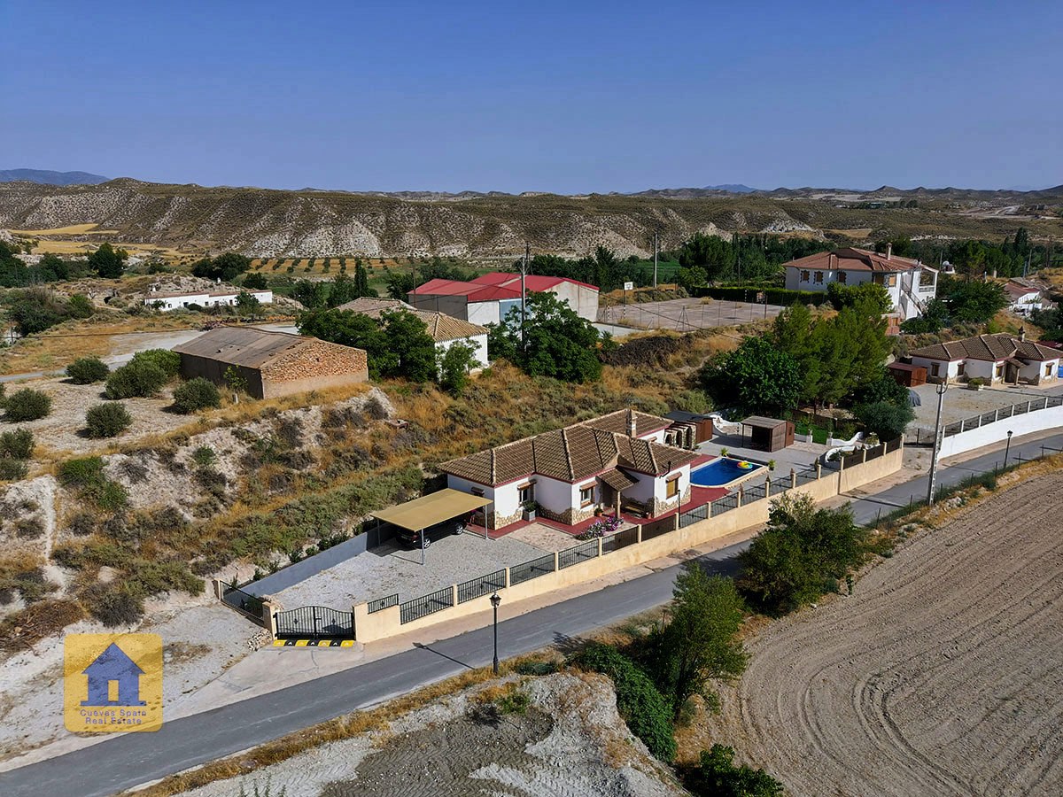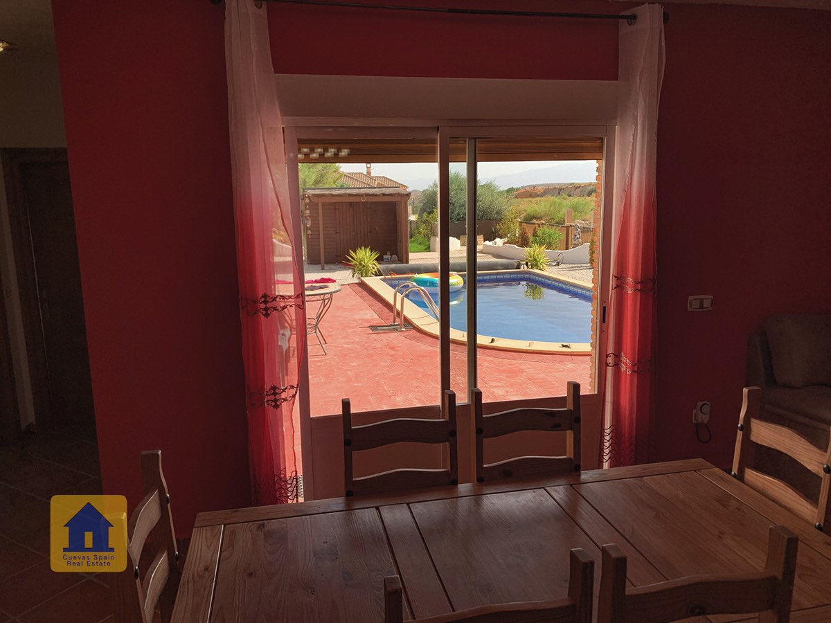 La maison se trouve à une courte distance en voiture de l'artère principale, sur une bonne voie goudronnée. Il y a un excellent bar/restaurant en haut de la route (assez proche pour une promenade très courte, mais pas si proche que cela pour vous déranger). Le village traditionnel de Castilléjar est à 5 minutes en voiture, avec des magasins de base, des restaurants, des banques et un marché hebdomadaire. La ville de Baza, à 25 minutes en voiture, dispose d'une gamme de magasins, de restaurants et de l'hôpital régional.