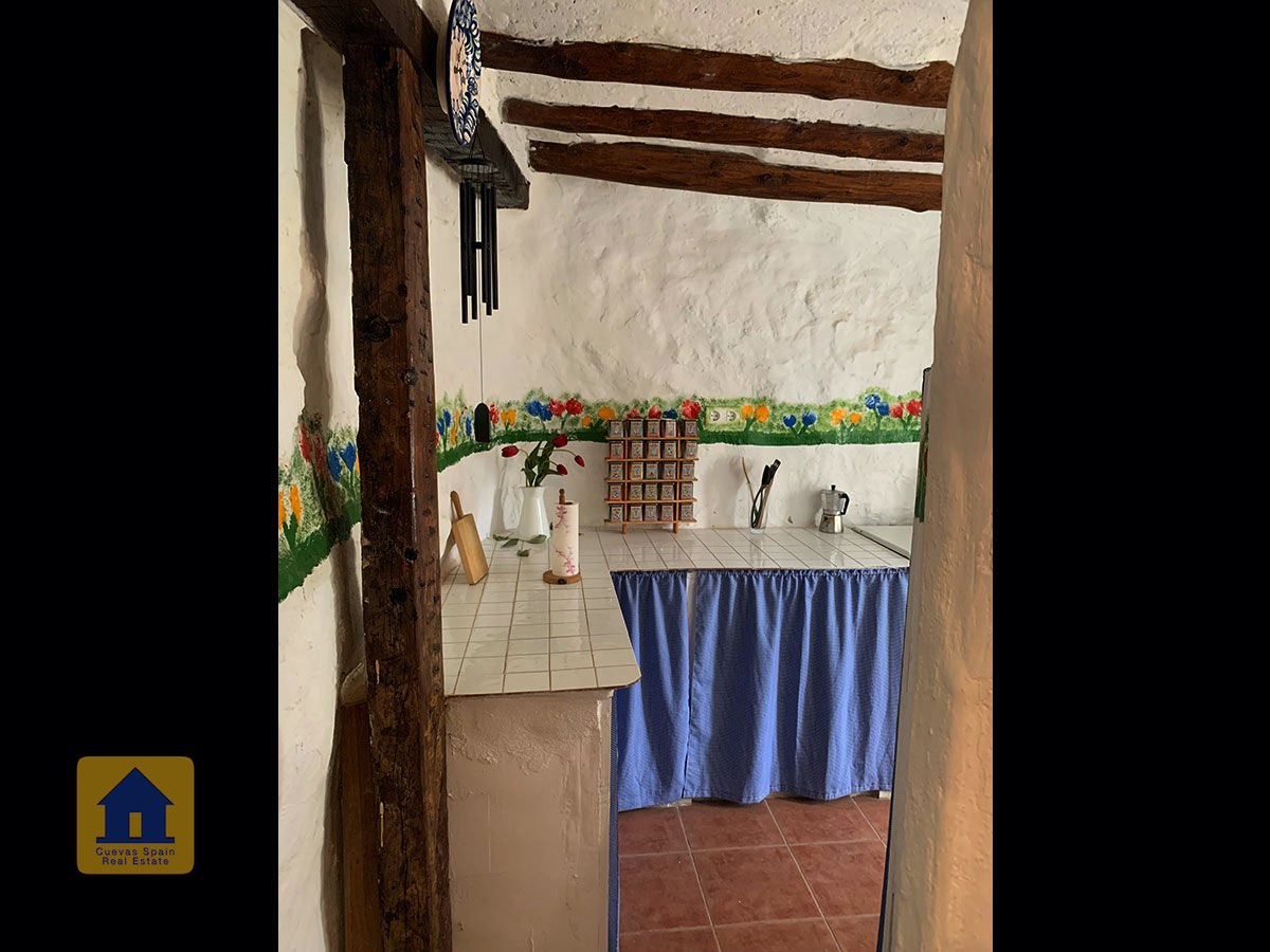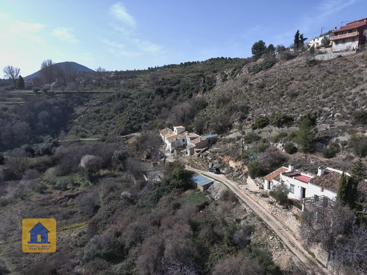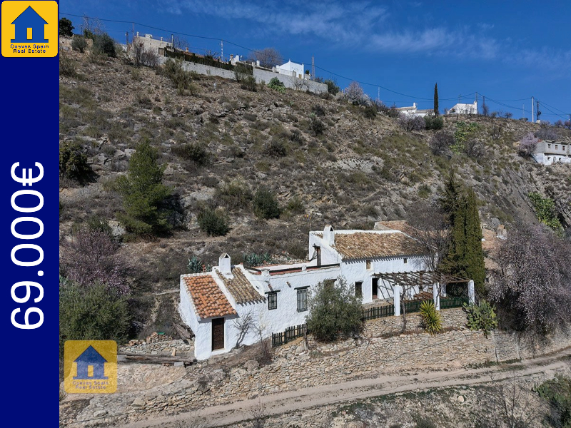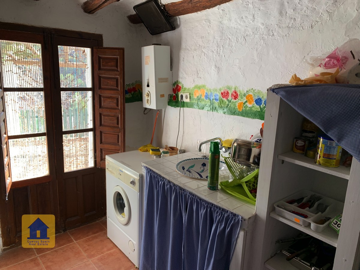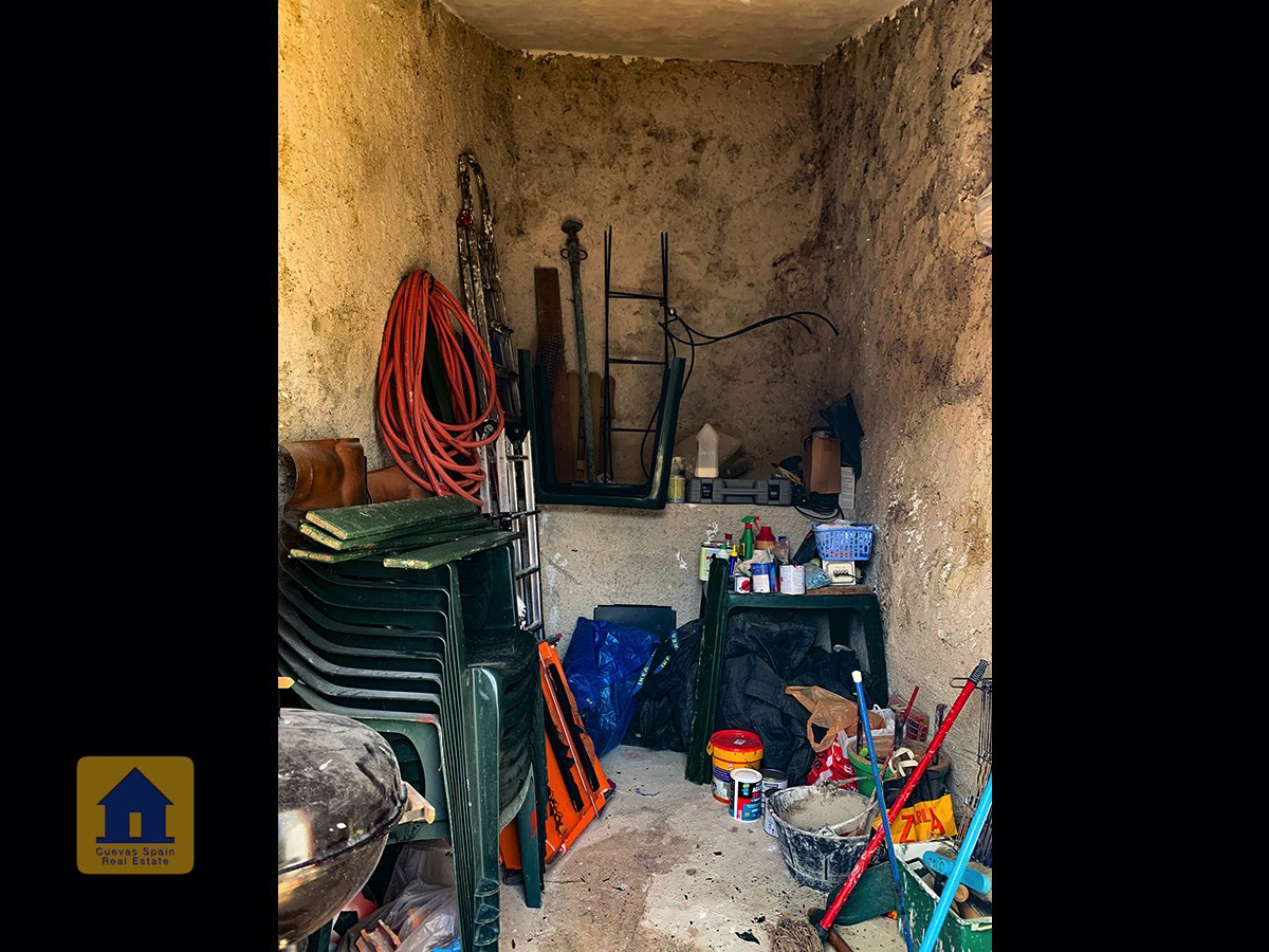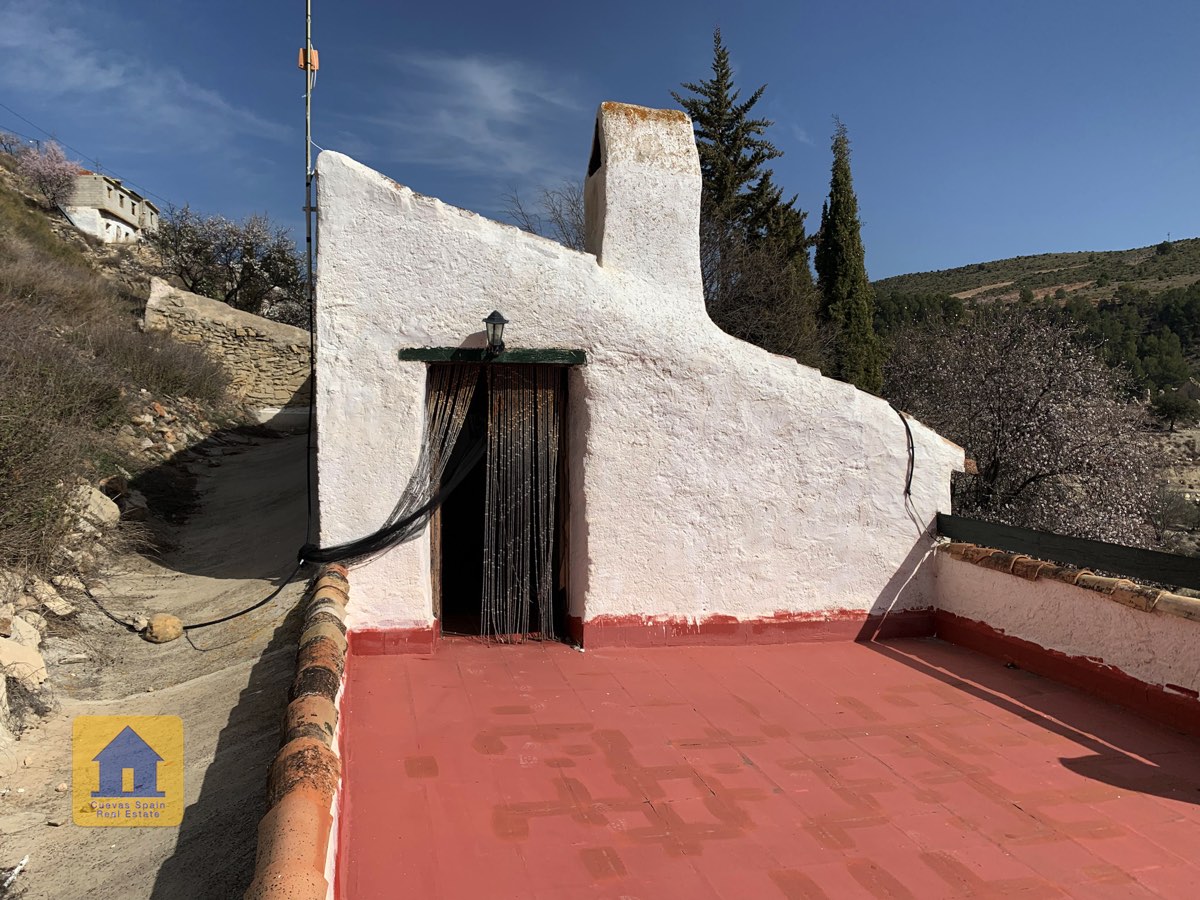 L'accès à la propriété se fait par une étroite route pavée et un chemin de terre. Le long du chemin, on trouve des figuiers et des vignes. Une allée mène au patio avant qui a une tonnelle couverte de plantes. Depuis le patio, vous pouvez entrer dans une salle de stockage, une grande salle de jeu avec des fenêtres, la maison principale ou la cuisine. L'entrée principale mène au salon, avec sa cheminée et son plafond en poutres de bois. Un couloir mène à la salle de bains, à l'étage aux chambres, et au bout se trouve la cuisine qui s'ouvre sur le patio. À l'étage, une chambre double a une fenêtre arrière, et la grande chambre principale a une grande terrasse avec de magnifiques vues à 360º. La maison a besoin d'une mise à jour mais elle est vivable en l'état. La maison est vendue en grande partie meublée, une partie est négociable.